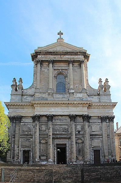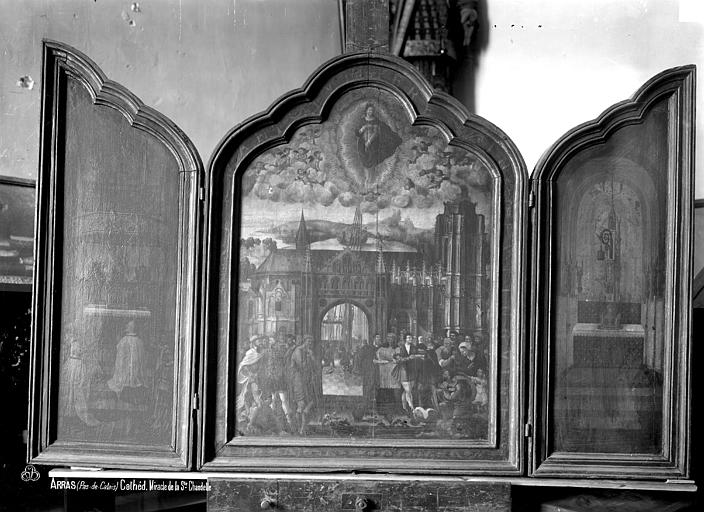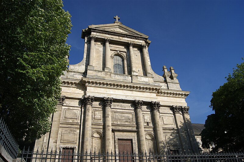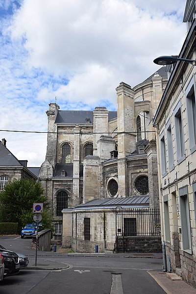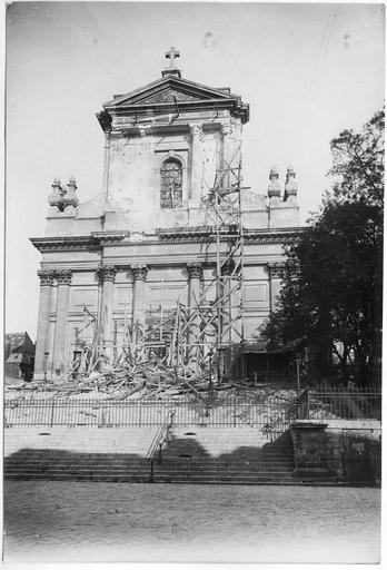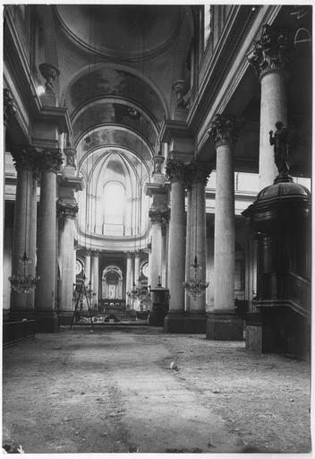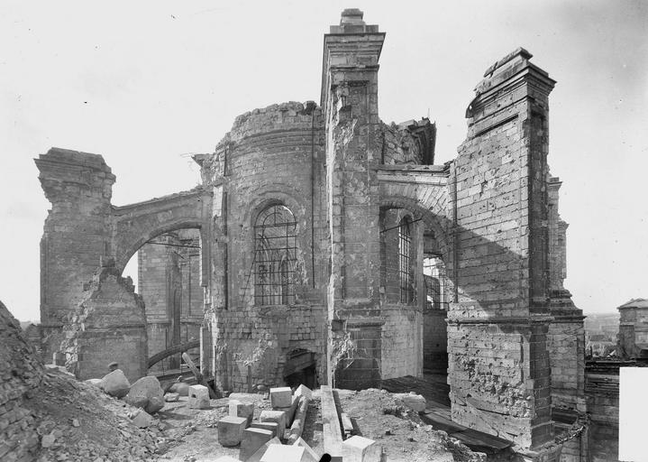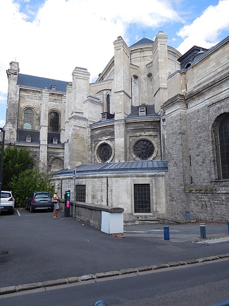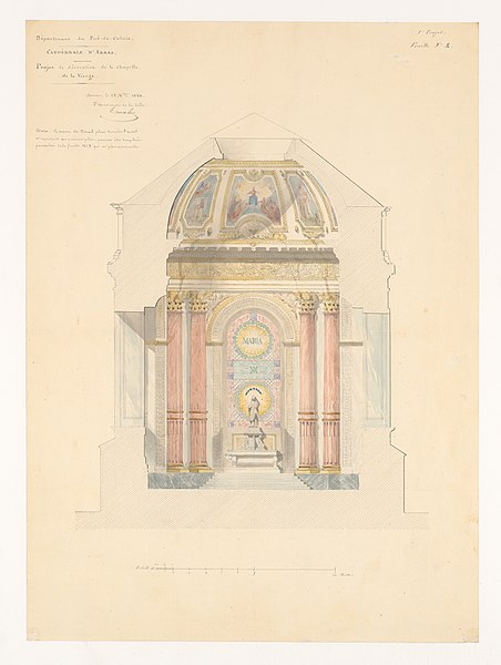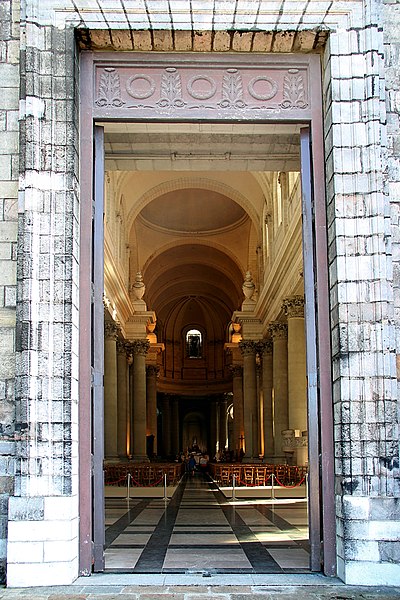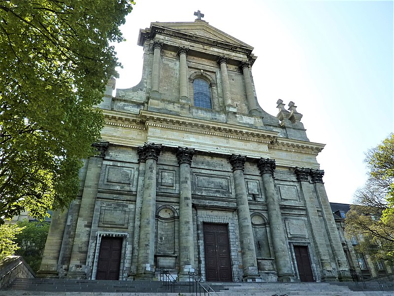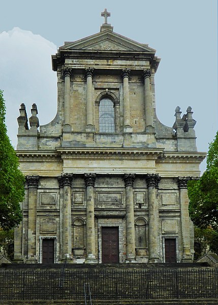 La cathédrale Notre‑Dame‑et‑Saint‑Vaast d'Arras, ancienne église abbatiale de l'abbaye Saint‑Vaast, est l'église cathédrale du diocèse d'Arras et se situe dans le Pas‑de‑Calais. Dédiée à la Vierge et à saint Vaast, elle a été édifiée à partir de 1778 selon les plans de l'architecte Pierre Contant d'Ivry et conçue dans un style classique. L'abbaye Saint‑Vaast, dont les origines remontent au VIIe siècle, fit l'objet d'une reconstruction importante au XVIIIe siècle, les travaux de l'église s'engageant réellement vers 1766 et s'interrompant en 1792. Occupée puis utilisée comme hôpital par l'armée pendant la Révolution, l'église, couverte mais partiellement non voûtée à cette époque, fut attribuée au diocèse en 1804 pour remplacer l'ancienne cathédrale Notre‑Dame‑en‑Cité, rasée après avoir été endommagée. L'achèvement de l'édifice fut confié à François Verly ; la décision ministérielle de 1812 de terminer l'ouvrage selon le plan initial provoqua la reprise des travaux en 1815, interrompus pour raisons budgétaires en 1833, seule la chapelle de la Vierge étant inaugurée en 1848. Un projet de clocher élevé à l'arrière du chevet fut envisagé mais seule la base fut construite, abritant la chapelle axiale ; les cloches furent installées dans un édicule sur le narthex de cette chapelle. La Première Guerre mondiale causa d'importants dégâts et la cathédrale fut partiellement détruite en 1915 ; la restauration conduite dès 1920 par l'architecte Pierre Paquet permit, en quatorze ans, de reconstituer voûtes et charpente en béton armé sans altérer l'aspect intérieur. La décoration intérieure fut refaite dans un néoclassicisme plus sobre, la chapelle axiale conservant son aspect originel ; la cathédrale fut rendue au culte en mai 1934. Un nouvel incident de guerre endommagea encore l'édifice en mai 1944, rapidement réparé.
