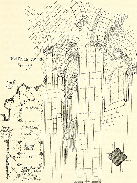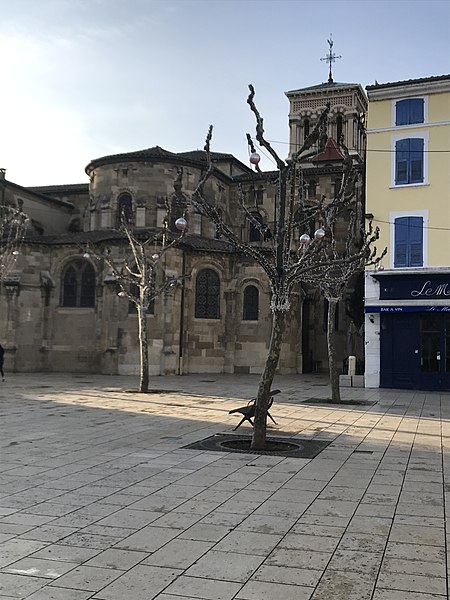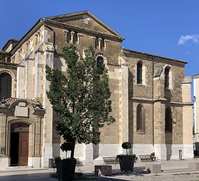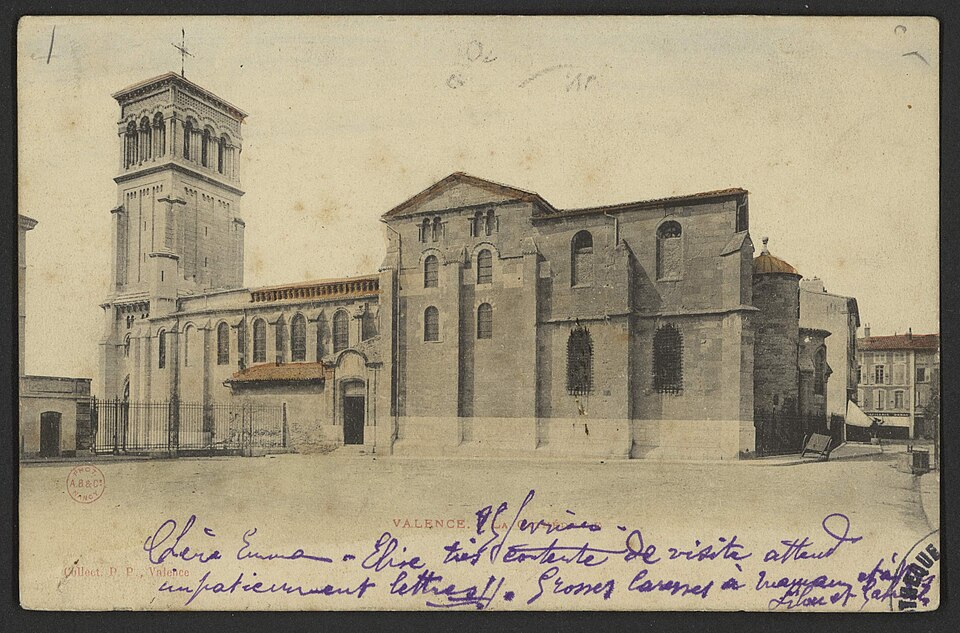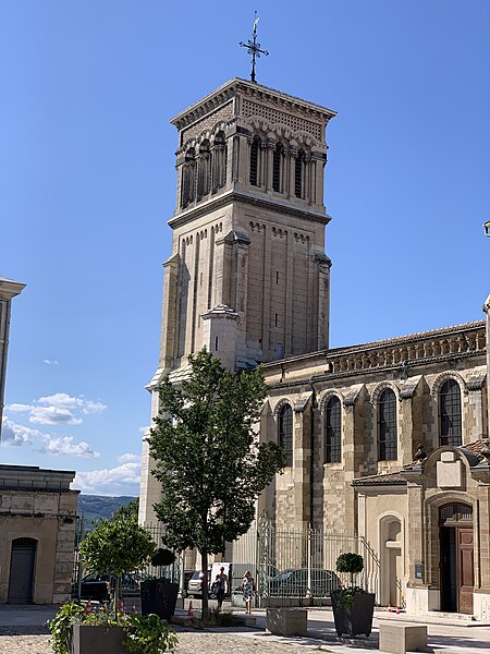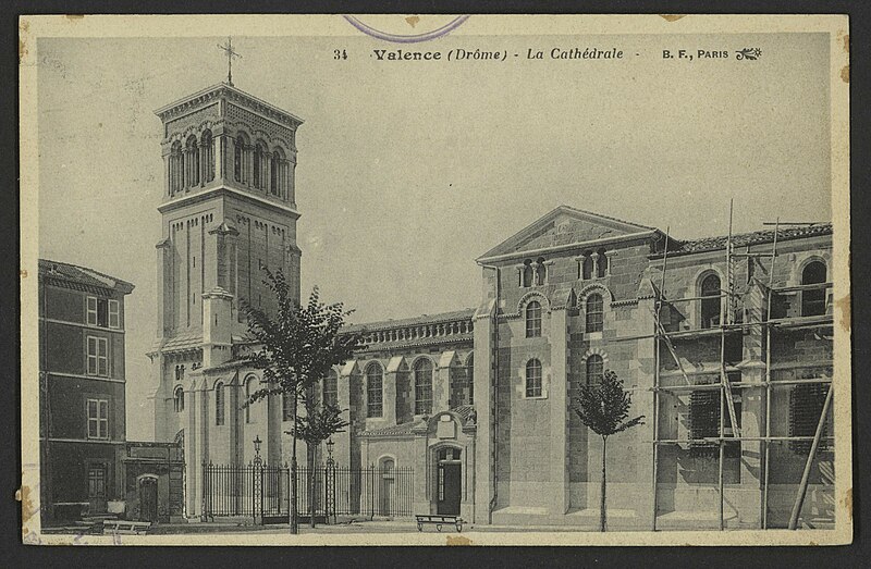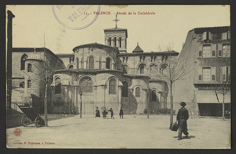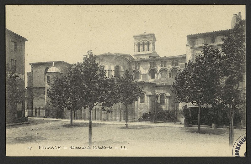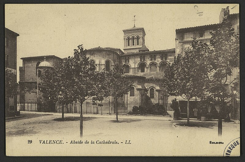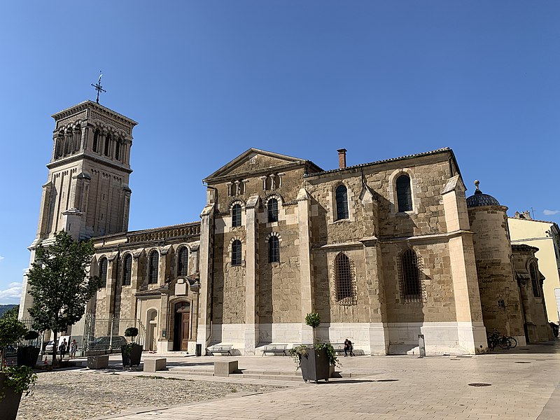 La cathédrale Saint-Apollinaire de Valence, située sur la place des Ormeaux dans le Vieux Valence, est le plus ancien monument de la ville et est classée monument historique depuis 1862. Sa construction fut impulsée par l'évêque Gontard (1063–1099) et elle a été consacrée le 5 août 1095 sous les noms de saints Cyprien, Corneille et Apollinaire par le pape Urbain II; la pierre de dédicace est encore visible dans le mur sud. L'édifice présente une architecture essentiellement romane rapprochant sa silhouette et ses décors en pierres polychromes de monuments d'Auvergne et du Velay. La cathédrale a été incendiée en 1562 et 1567 pendant les guerres de Religion et reconstruite à partir de 1604 en respectant son style roman initial. Le clocher a subi plusieurs coups de foudre et reconstructions: il fut endommagé en 1281, remplacé par une flèche en charpente, puis à nouveau reconstruit au XIXe siècle après des sinistres et des travaux menés notamment entre 1824 et 1826; des problèmes structurels et de nouvelles détériorations ont été signalés dans la décennie suivante. En 1799 le pape Pie VI, exilé et très affaibli, mourut à Valence le 29 août; son corps fut ensuite ramené à Rome mais son cœur et ses entrailles furent réclamés par les habitants et sont toujours conservés dans la cathédrale. Le passage du pape et de ses gardes suisses inspira localement la création d'un biscuit sablé appelé le Suisse, qui reste une spécialité de Valence. Un incendie intérieur survenu le 27 septembre 2021 fut rapidement maîtrisé; il résulterait vraisemblablement d'un accident lors d'un traitement du bois contre les insectes xylophages. Implantée en partie haute de la vieille ville, la cathédrale domine les anciens remparts et s'ouvre sur une petite terrasse devant le clocher-porche; l'entrée principale n'est plus utilisée et on pénètre aujourd'hui par une porte latérale sur la place des Ormeaux ou par une porte nord donnant sur la place du Pendentif. L'ensemble, malgré d'importantes reconstructions aux XVIIe et XIXe siècles, conserve les caractères de la première cathédrale romane, notamment une nef longue et haute de sept travées voûtée en berceau sur arcs-doubleaux reposant sur des demi-colonnes adossées à des piliers carrés. Une tribune ouest supporte l'orgue et s'ouvre sur la nef par une grande arcade en plein cintre; de chaque côté, des collatéraux voûtés en berceaux croisés communiquent avec la nef sans comporter de chapelles, et l'éclairage provient principalement des baies en plein cintre des collatéraux. Le transept abrite plusieurs bustes et autels, parmi lesquels figurent des monuments à des évêques dont Emmanuel-Marie-Joseph-Anthelme Martin de Gibergues; la nef et le transept prolongent directement le chœur en demi-cercle. Le chœur est entouré de colonnes cylindriques portant par des chapiteaux de petits arcs surhaussés; au-dessus, trois baies l'éclairent et une voûte en cul-de-four coiffe l'ensemble. L'abside polygonale s'ouvre sur des absidioles semi-circulaires abritant chacune une chapelle éclairée par une baie en plein cintre. Un déambulatoire entoure le chœur, rappelant le rôle de la cathédrale comme étape sur le chemin de Saint-Jacques-de-Compostelle; il contient des bustes et des sépultures, ainsi que des remploi de pierres antiques. Parmi ces remplois figure une borne milliaire de la via Agrippa, exposée dans le déambulatoire au deuxième pilier de droite et datée de 274 ou 275 apr. J.-C. Les orgues de Saint-Apollinaire ont une longue histoire documentée depuis 1392; un instrument fut commandé en 1751 à Samson Scherrer, restauré au XIXe siècle par les Callinet et remplacé par un nouvel orgue installé par les ateliers Cavaillé-Coll sous la direction de Charles Mutin en 1898. L'orgue principal a été restauré en 1985 par Yves Kœnig puis rénové à nouveau et inauguré en mai 2014; Dominique Joubert en est l'organiste titulaire depuis le 7 juin 1992. La cathédrale possède par ailleurs un orgue de chœur de Joseph Merklin, à un clavier et six jeux, installé en 1867 et complété par un bourdon de 16 en 1871, placé dans le transept sud. Des plaques et épigraphes rappellent le rôle de bienfaiteurs et d'évêques successifs, tandis que la porte de la Miséricorde, établie à l'occasion du Jubilé de la Miséricorde voulu par le pape François, a été ouverte localement pour accompagner cet événement.