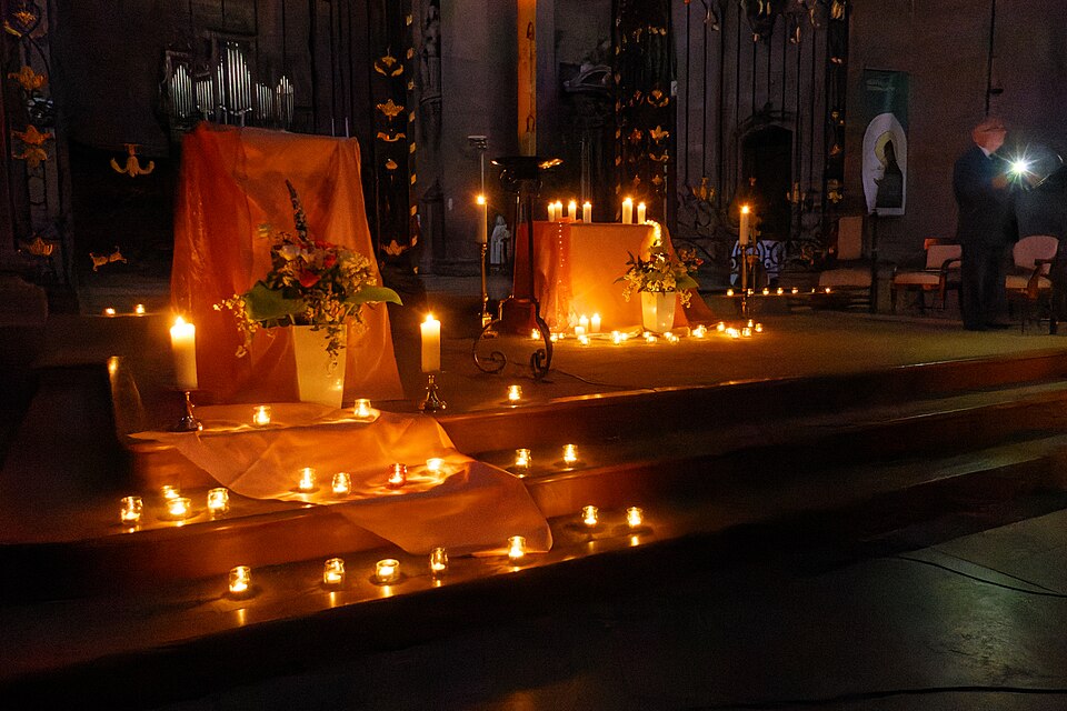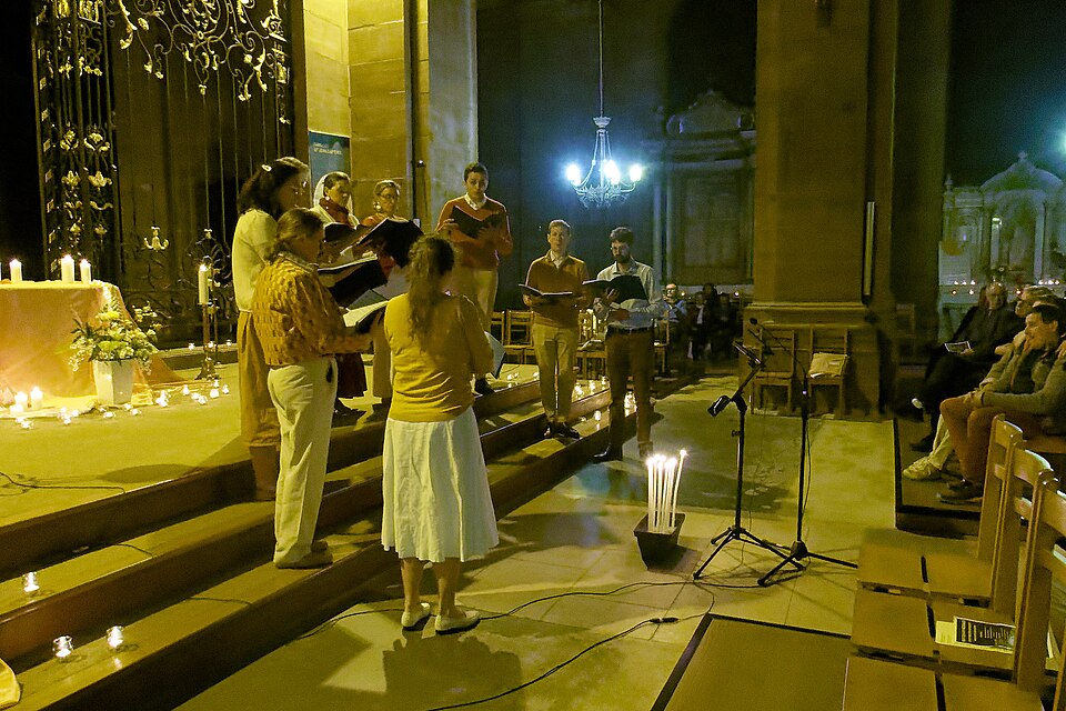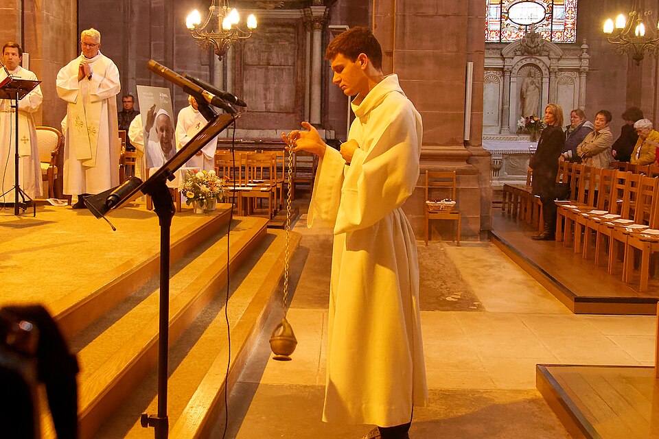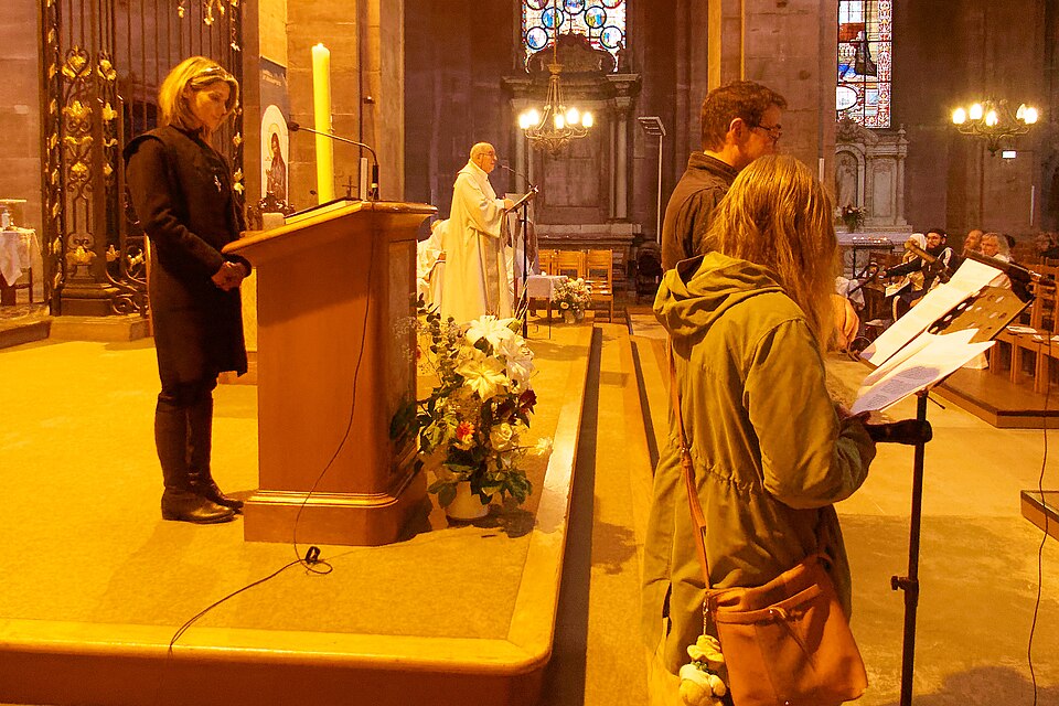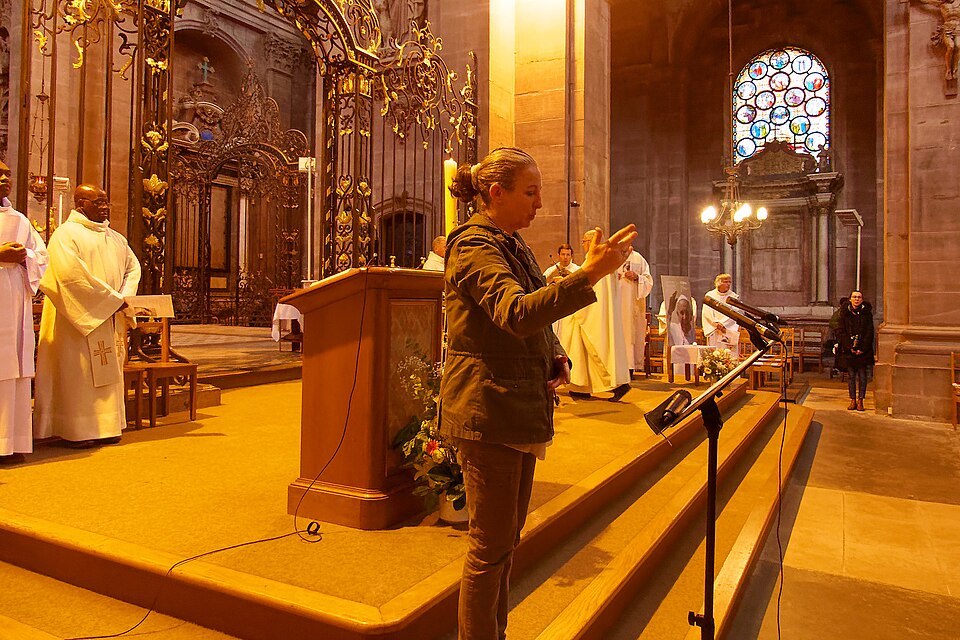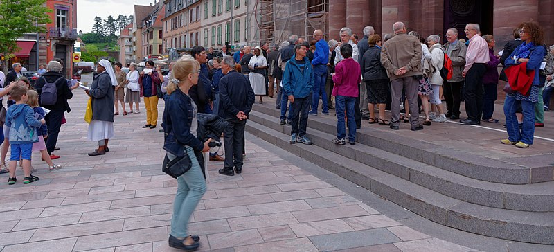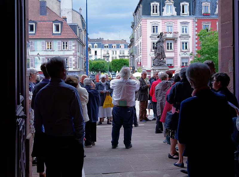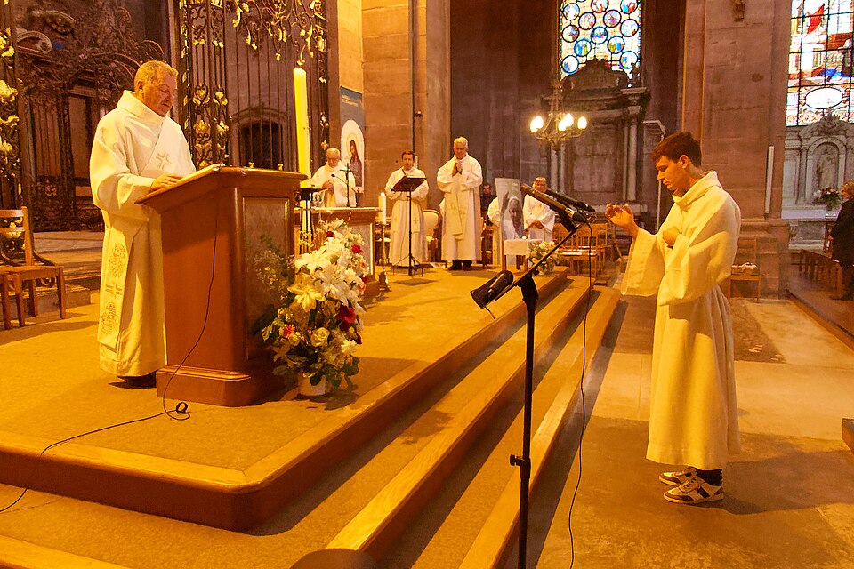 La cathédrale Saint‑Christophe, située à Belfort, est le siège du diocèse de Belfort‑Montbéliard. Elle a été construite comme église abbatiale de 1727 à 1750 par l'entrepreneur Henri Schuller d'après des plans de Jacques Philippe Mareschal, ingénieur ordinaire du roi à Strasbourg, qui ne put assurer lui‑même l'exécution. Le devis s'élevait à 146 334 livres. La pierre provient de la carrière de grès rose d'Offemont, à trois kilomètres de Belfort. L'adjudication des fondations eut lieu le 12 octobre 1727 et la bénédiction du terrain et de la première pierre fut célébrée le 16 octobre par le prévôt de la collégiale Jean‑Claude Noblat, délégué de son altesse de Grimaldi. Les fondations furent rapidement exécutées et Mareschal établit plusieurs plans au cours du chantier. L'abbatiale fut ouverte au culte en 1750, mais les travaux ne furent réellement achevés qu'en 1845, date de la construction de la tour sud. Le fils d'Henri Schuller fut abbé de cette église abbatiale. Le bâtiment a été classé au titre des monuments historiques en 1930. L'église a été érigée en cathédrale en 1979 lors de la création du diocèse de Belfort‑Montbéliard. Des travaux de restauration de la façade, des terrasses de la tour nord et de l'horloge ont été menés de 2016 à 2018. En septembre 2020, une restauration de la toiture a remplacé les ardoises par des tuiles et rénové gouttières et corniches. Après une défaillance grave du système de chauffage en 2023, des travaux ont été effectués et achevés le 15 mars 2024 ; pendant leur durée, les offices ont été assurés à l'église Saint‑Joseph de Belfort. La cathédrale est desservie par la paroisse Saint‑Jean‑Baptiste au sein du diocèse ; deux messes dominicales sont célébrées chaque semaine — une messe solennelle le matin et une messe en soirée destinée aux étudiants et jeunes professionnels — ainsi qu'une messe le premier vendredi du mois. Baptêmes, mariages et funérailles y sont également célébrés, et la cathédrale accueille occasionnellement des cérémonies diocésaines telles que ordinations, jubilés de prêtres ou messes chrismales. La façade principale se compose de trois parties verticales : un porche formant l'avant‑corps donnant accès à la grande nef, flanqué de deux tours. Le mobilier de l'édifice, protégé au titre des monuments historiques, rassemble des œuvres d'art d'artistes franc‑comtois. Les sculptures sont signées Antoine Cupillard et les tableaux sont dus au Belfortain Gustave Dauphin. La cathédrale possède deux orgues : l'orgue de tribune, réalisé par Jean‑Baptiste Waltrin et installé en 1752, a été rénové à plusieurs reprises et est classé monument historique, tandis que l'orgue de chœur est l'œuvre du facteur Henri Didier. Une restauration complète des orgues a été effectuée en 2012 : le relevage par Peter Meier, le nettoyage de la tuyauterie par Marco Venegoni et l'harmonisation par Jean‑Marie Tricoteaux. Les jeux des instruments comprennent de nombreux registres — bourdons, montres, flûtes, nazards, mixtures, jeux de fonds et jeux de cuivres — attestant de leur riche facture. Les titulaires de ces instruments sont Jean‑Charles Ablitzer (titulaire) et Emmanuel Georges (co‑titulaire). La cathédrale abrite huit cloches, fondues par Ferdinand Farnier à Robécourt en 1903, qui portent les noms Anne‑Charlotte, Élisabeth, Josepha‑Maria‑Paula, Julie, Eugénie, Marie‑Louise, Marie‑Thérèse et Bernadette. Ces cloches, réparties entre les tours nord et sud, vont de 220 kg à 4 425 kg et de 71,2 cm à 1,92 m de diamètre, avec des notes réparties sur plusieurs registres.