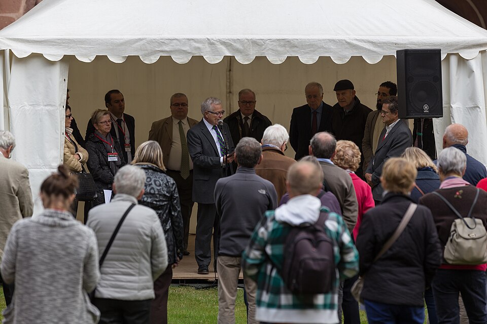 La place devant la cathédrale, agrandie lors de la reconstruction d’après‑guerre et rebaptisée place du Général‑de‑Gaulle à partir de 1970, a été réaménagée en 2000 autour d’un bassin en grès et de jets d’eau. Elle porte aussi une signalétique commémorant la localisation présumée de la « Maison du baptême de l’Amérique », lieu lié à l’impression en 1507 d’ouvrages et cartes de Martin Waldseemüller ; l’édifice d’origine et la plaque ancienne ayant disparu, une carte stylisée du Nouveau Monde en laiton et grès a été intégrée au sol.