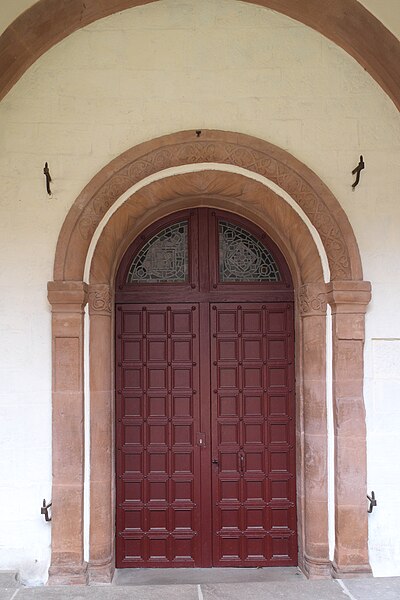 Un tilleul du parvis, célébré par des écrivains locaux et labellisé arbre remarquable en 2017, complète le paysage patrimonial de la place. La nef romane, élevée après l’un des grands incendies médiévaux, présente des frises sculptées et des chapiteaux de la seconde moitié du XIIe siècle remarquablement préservés après 1944. Ces chapiteaux, au programme iconographique riche, mêlent couronnes, monstres ailés, végétaux et figures paradisiaques ; plusieurs motifs — dont la sirène allaitante — s’inscrivent dans un réseau comparatif d’images régionales et ont été interprétés comme évoquant le passage de la mort à la vie éternelle. La nef est couverte de voûtes gothiques à croisées d’ogives éclairées par de petites baies en plein cintre, tandis que les bas‑côtés sont voûtés d’arêtes ; si les voûtes se sont effondrées lors des destructions, certains chapiteaux ont été restitués à partir d’originaux conservés dans une aile du cloître.