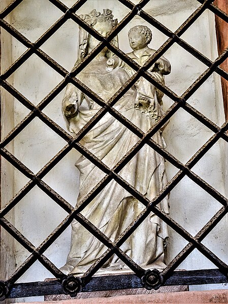 Le chœur, l’abside à pans et le transept, d’un gothique plus tardif inspiré du gothique champenois, forment un ensemble sobre où les chapiteaux sont traités en corbeille nue. La façade classique, élevée par l’Italien Giovan Betto au début du XVIIIe siècle, affiche des proportions palladiennes avec un avant‑corps soutenu par quatre colonnes doubles, un fronton triangulaire et deux tours surmontées de bulbes ; une inscription latine surmonte le portail et un disque de fonte entre les escaliers indique l’altitude de 339,6 m.