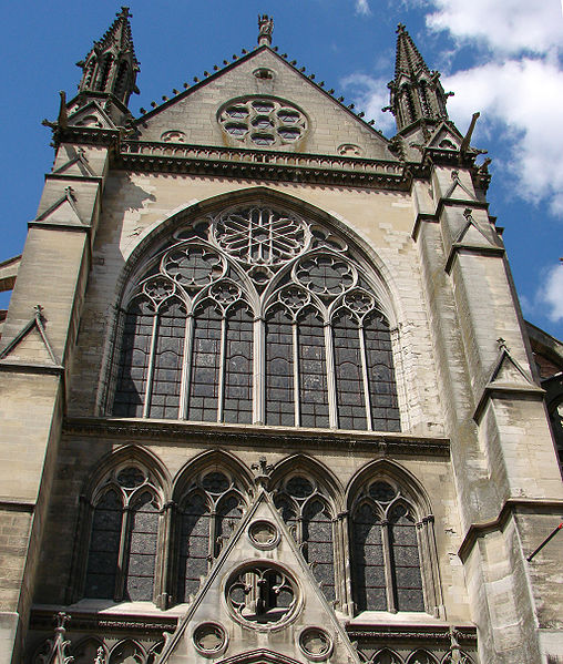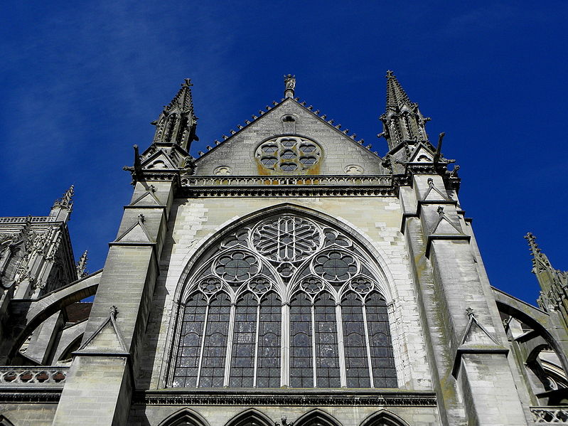 La construction de la cathédrale gothique débuta par le chœur entre 1175 et 1180 ; avant 1200 le déambulatoire, trois chapelles rayonnantes, les doubles bas-côtés du chœur et l'étage des tribunes étaient en place. Entre 1215 et 1220 furent élevées les piles de la croisée du transept et les niveaux supérieurs du chœur, qui fut couvert de voûtes d'ogives, comme l'atteste un dessin de Villard de Honnecourt vers 1220. Un autre architecte édifia le transept et les deux dernières travées de la nef de 1220 à 1235, et en 1235 fut créée la chapelle du bas-côté droit à la dernière travée. En raison de fondations insuffisantes et d'un affaissement du chœur primitif, ce dernier dut être reconstruit : le chœur actuel, de style rayonnant, fut élevé entre 1253 et 1278 par Gautier de Varinfroy, qui employa la solution déjà utilisée à Rouen en supprimant le niveau des tribunes tout en conservant les baies correspondantes ; les chapelles absidiales furent surélevées pour correspondre à la nouvelle hauteur du déambulatoire. À partir de 1266 une nouvelle campagne de travaux, financée par Jeanne Ire de Navarre, modifia les façades des croisillons ; la façade nord, réalisée par Pierre de Varinfroy, s'inspira de Notre-Dame de Paris et remonta des sculptures du début du XIIIe siècle.