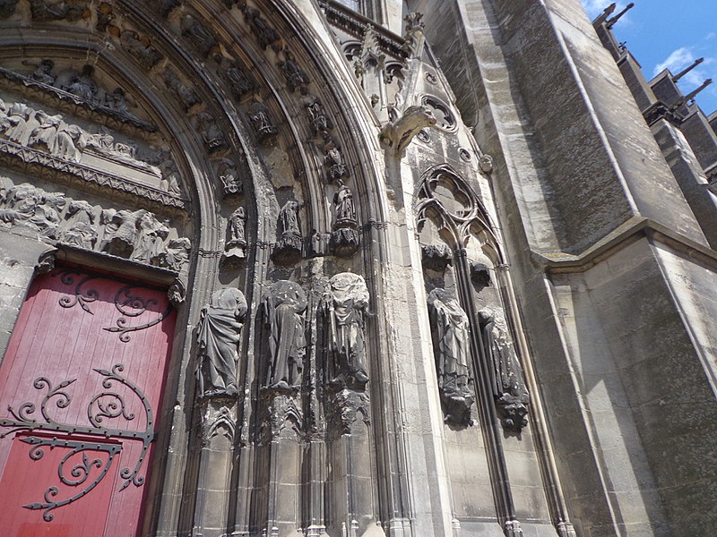 L'édifice, long de 85 mètres, présente une façade occidentale profondément dissymétrique et ne fut jamais entièrement achevé, ce qui se traduit par un clocher provisoire devenu définitif. Construite en pierre de Varreddes, la cathédrale réunit, du XIIIe au XVIe siècle, une diversité de phases du gothique tout en conservant une grande harmonie d'ensemble. Elle se compose d'une église à cinq vaisseaux avec transept non saillant, d'une courte nef de cinq travées dont les deux premières forment un narthex, d'un chœur plus long entouré d'un double déambulatoire dans sa partie rectangulaire et se terminant par une abside à cinq pans ouvrant sur cinq chapelles rayonnantes.
