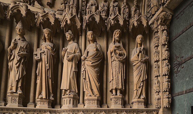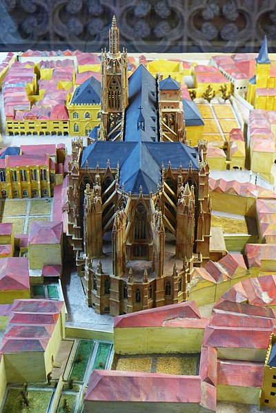 Les premières campagnes médiévales portent les parties basses de la nef, les supports d'arcades et le fenestrage rayonnant, le voûtement de la nef étant achevé entre 1360 et 1380 ; la grande rose occidentale est confiée en 1381 au maître-verrier Hermann de Münster. Une seconde campagne, du XVe au début du XVIe siècle, reconstruit les bras du transept et le chœur, enrichit la verrière du transept par Théobald de Lixheim et Valentin Bousch, et conduit à la consécration de l'édifice le 11 avril 1552.