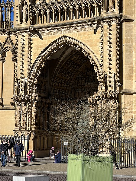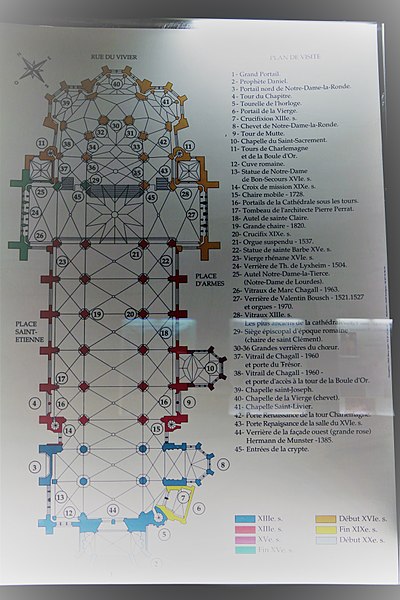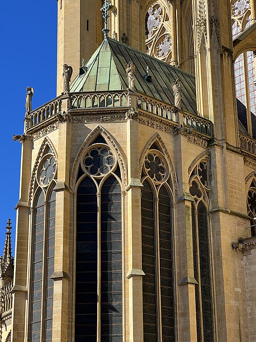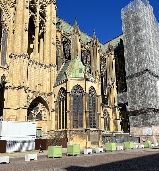 Les restaurations d'après‑guerre ont aussi ouvert la cathédrale à la création contemporaine : des verrières modernes signées Jacques Villon, Roger Bissière et Marc Chagall sont installées entre les années 1950 et 1970, et l'artiste Kimsooja a réalisé de 2020 à 2022 seize baies du transept sud en s'inspirant d'une palette traditionnelle et en utilisant des verres soufflés et des verres dichroïques.