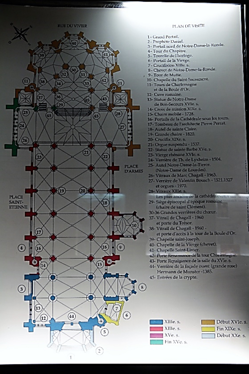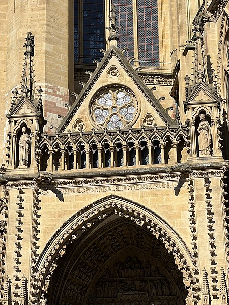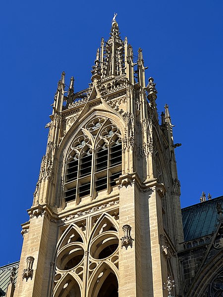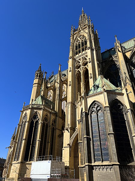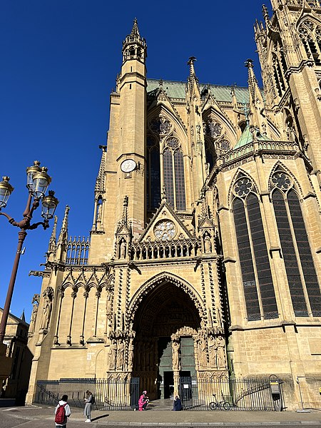 La cathédrale Saint-Étienne de Metz, siège du diocèse de Metz en Moselle (région Grand Est), est classée monument historique depuis le 16 février 1930 et candidate à un classement UNESCO ; elle figure parmi les dix cathédrales les plus fréquentées de France. Sa construction s'étend sur trois siècles à partir du XIIIe siècle, ce qui n'empêche pas une grande homogénéité stylistique, les critères gothiques ayant été respectés lors des différentes campagnes. L'édifice, bâti en pierre de Jaumont, possède la plus grande surface de vitraux de France (environ 6 500 m²) et accueille certaines des plus grandes verrières gothiques d'Europe ; la hauteur de ses voûtes (41,41 m) n'est dépassée en France que par celles de Beauvais et d'Amiens. Surnommée par Joseph Bard la « lanterne de Dieu », la cathédrale a été reconnue pour la qualité et l'importance de son ensemble vitré.