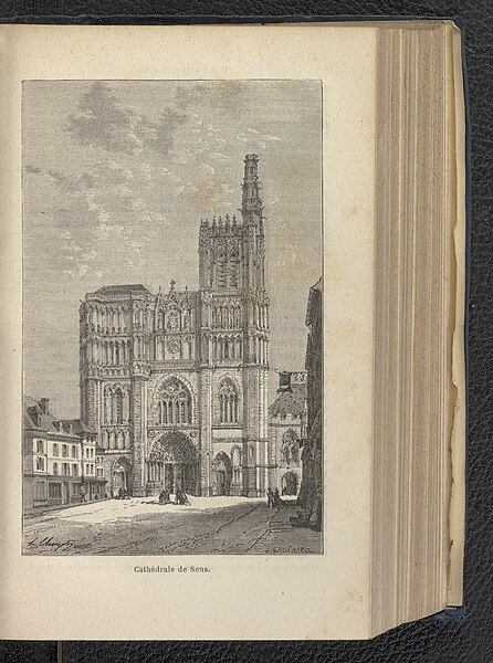 La cathédrale succède à un premier édifice consacré par l'archevêque Seguin en 982, lui‑même composé de trois églises accolées, et c'est l'archevêque Henri Sanglier qui, au XIIe siècle, entreprend la construction d'un monument novateur. Un « maître de Sens » anonyme met alors en œuvre une conception nouvelle du voûtement avec croisées d'ogives et arcs‑boutants, associée à une nef centrale et deux bas‑côtés prolongés par un déambulatoire autour du chœur. Si des éléments gothiques existaient déjà ailleurs, la mise en œuvre à Sens reste remarquable et la datation de la conception est placée par plusieurs spécialistes dans la décennie 1130. Le sanctuaire reçoit la consécration du pape Alexandre III en 1164, mais le chantier occidental ne s'achève qu'à la fin du XIIe siècle.