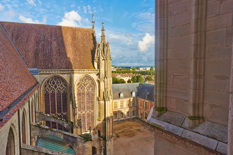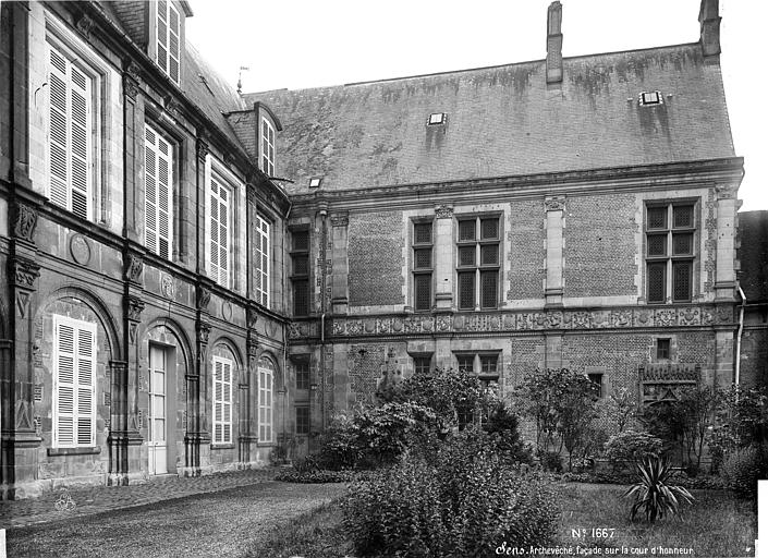 Le palais archiépiscopal, accolé au sud du chœur et converti aujourd'hui en musée archéologique, abrite la chapelle et le trésor de la cathédrale, tandis que le palais synodal du XIIIe siècle, restauré au XIXe siècle, conserve son rôle historique d'espace de l'officialité et des synodes et présente des éléments décoratifs tels que gargouilles et statues évoquant saints et archevêques. Enfin, la cathédrale fut le décor du mariage de Saint Louis et de Marguerite de Provence en 1234, cérémonie solennelle qui réunit la cour et la noblesse du royaume.