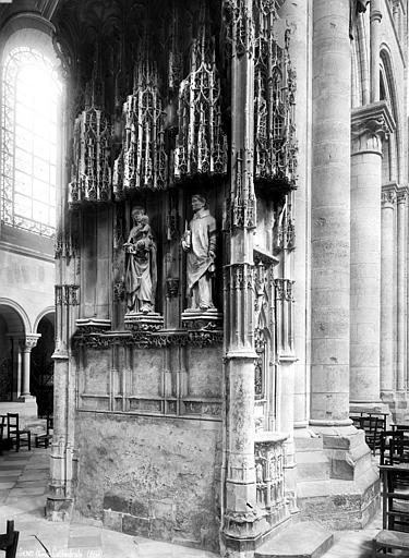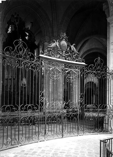 Le transept, œuvre de Martin Chambiges, se caractérise par une élévation réduite à deux étages, des voûtes surélevées (27 à 27,5 mètres) et d'immenses verrières qui transforment cet espace en un véritable vaisseau de lumière. Le chœur conserve l'élévation à trois niveaux et s'ouvre sur un déambulatoire flanqué de chapelles, dont un baptistère roman au nord et, au sud, la chapelle axiale du XIIIe siècle dédiée à saint Savinien ; la chapelle axiale contemporaine accueille également le tombeau du Dauphin et de la Dauphine, œuvre de Guillaume Coustou, déplacée au XVIIIe siècle, démontée à la Révolution, restaurée et finalement installée dans la chapelle Sainte‑Colombe en 1852.