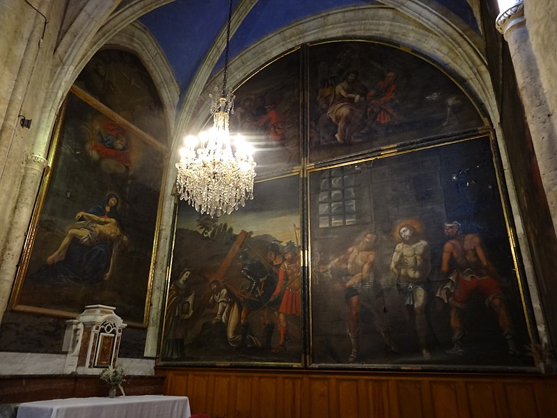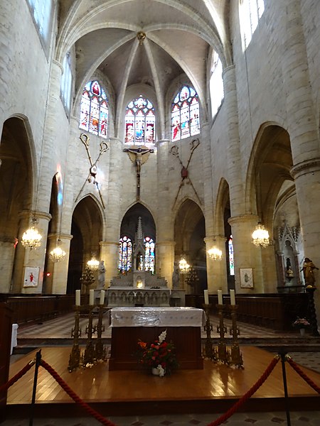 L’église Saint‑Gervais, ancienne cathédrale Saint‑Gervais-et‑Saint‑Protais de Lectoure (Gers), est le principal édifice religieux de la commune ; siège du diocèse de Lectoure jusqu’en 1801, elle est depuis la Révolution devenue église paroissiale et a été classée monument historique (dès 1897, arrêté de 1912). Implantée sur la partie la plus élevée du plateau lectourois, la parcelle a été un lieu de culte dès l’Antiquité : des temples romains y furent édifiés et de nombreux autels tauroboliques ont été mis au jour lors de la reconstruction du chœur en 1540. L’édifice actuel succède à plusieurs constructions antérieures ; la première église attestée sur ce site était dédiée à saint Thomas, puis une cathédrale romane s’y est développée avant d’être profondément transformée. La nef et le chœur traduisent deux grandes phases de construction : la nef, composée de deux larges travées carrées, offre des dimensions remarquables — près de 21 mètres de largeur et des voûtes d’une hauteur comparable — et chaque travée est subdivisée entre contreforts en deux chapelles surmontées de tribunes. Le chœur et le sanctuaire, plus tardifs (XVe‑XVIIe siècle), présentent une élévation différente : un espace central élevé porté par colonnes isolées est entouré d’un déambulatoire flanqué de neuf chapelles, et l’abside est semi‑octogonale ; on y note des chapiteaux de style Renaissance. La cathédrale romane, dont subsistent des éléments de l’ancienne nef et de puissants piliers quadrangulaires, a été fortement endommagée lors du siège de Lectoure en 1473, suscitant une vaste campagne de reconstruction à la fin du XVe siècle. Le clocher‑donjon, attribué au maître d’œuvre Mathieu Regueneau et daté de 1488, ouvrit ce chantier ; il fut à l’origine surmonté d’une flèche très élevée aujourd’hui disparue, et sa partie bâtie mesure actuellement 45 mètres. Les réparations et reconstructions des chapelles du nord et du sud de la nef se sont étalées entre la fin du XVe siècle et le milieu du XVIe siècle, mais les guerres de Religion causèrent de nouveaux dégâts et retardèrent les travaux qui ne reprirent pleinement qu’au XVIIe siècle ; les tribunes et la voûte de la nef furent alors achevées par l’architecte Bathia. Le chœur à déambulatoire fit l’objet d’une reprise au XVIIIe siècle sous la direction de l’entrepreneur Isaïe Dansas, aidé des maçons Bras et Garas, et constitue une imitation tardive des chevet des cathédrales voisines. La flèche du clocher, frappée à plusieurs reprises par la foudre, fut détruite et démantelée au XVIIIe siècle, et le jubé fut supprimé en 1825. Extérieurement, le clocher‑tour se présente en cinq niveaux carrés dégressifs flanqués de contreforts, avec des galeries aux troisième et quatrième niveaux, un beffroi abritant trois cloches et une plate‑forme sommitale entourée d’une balustrade de pierre ; l’étage octogonal et la flèche qui couronnaient autrefois la tour ont été abattus, puis remplacés par des aménagements de terrasse et de balustrade du XVIIIe siècle. La façade occidentale, sobre et encadrée par deux contreforts, a perdu une grande partie de son ornementation lors des guerres de Religion ; le portail primitif, à quatre arceaux et colonnettes, a été mutilé et son linteau et pilier central remplacés au XIXe siècle, tandis que les niches supérieures ont été martelées. L’ensemble du chevet conserve la masse et la simplicité du gothique méridional, les voûtes étant contrebutées à l’extérieur par des murs‑pignons qui englobent la largeur des chapelles plutôt que par des arcs‑boutants. À l’intérieur, la nef unique de type méridional, avec chapelles entre les contreforts et galeries hautes, impressionne par son ampleur et sa clarté ; les chapelles nord et sud sont richement dotées d’autels, retables et balustrades, et la première chapelle nord conserve une porte dont le linteau porte la date de 1488 donnant accès au clocher. L’orgue se situe sur la tribune précédant la nef ; construit par Auguste Phébade entre 1838 et 1843, il a fait l’objet de restaurations au XIXe et XXe siècle et a été classé en 1978. Le chœur, dont les plans initiaux datent de 1540, mesure environ 24 mètres de long sur 11 de large ; sa voûte, plus haute que celle de la nef, est séparée de celle‑ci par un arc triomphal massif constitué en réalité de deux arcs diaphragmes. Les stalles des chanoines, en bois sculpté du XVIIe siècle, furent réinstallées au XIXe siècle et présentent des miséricordes et accoudoirs richement décorés. Le déambulatoire comprend neuf travées, chacune desservant une chapelle : plusieurs présentent des voûtes à liernes et tiercerons et abritent des œuvres remarquables, notamment une Assomption en marbre blanc appelée Nostra‑Dama la Blanca et divers autels et retables des XVIIe et XVIIIe siècles ; la chapelle Saint‑Clair conserve un reliquaire de saint Clair d’Aquitaine dont les reliques furent rapportées à Lectoure en 1858. La sacristie nord, ancienne chapelle des chanoines, et son arrière‑sacristie voûtée conservent des restes de fresques et hébergent aujourd’hui le musée d’art sacré, qui expose de nombreux objets liturgiques et ornements répertoriés dans la base Palissy. Malgré les nombreuses interventions et mutilations subies au cours des siècles, l’église Saint‑Gervais reste un témoignage important des évolutions architecturales et liturgiques locales, mêlant vestiges romans, créations gothiques méridionales et remaniements modernes.