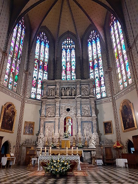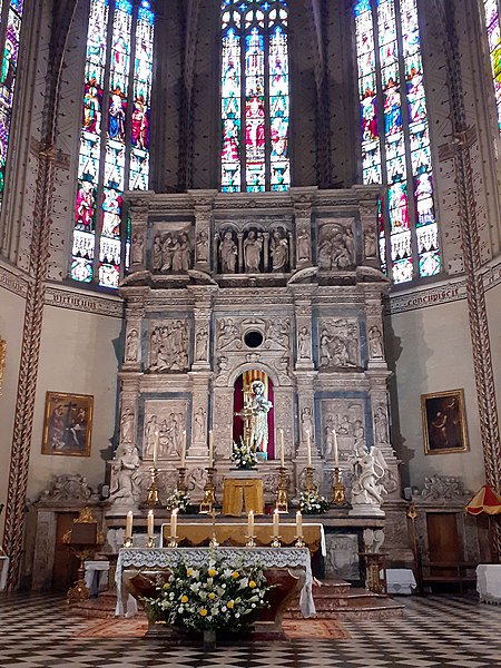 Le Campo Santo, adossé au côté sud, est le plus ancien cloître-cimetière urbain subsistant en France ; sa construction s'étend sans doute du tout début du XIVe siècle à la première moitié de ce siècle. Après la Révolution, l'espace accueillit le Grand Séminaire en 1825 et la galerie ouest fut détruite ; une opération menée à partir de 1984 permit de dégager et restaurer le cloître, avec achèvement des travaux en 1991, laissant aujourd'hui des enfeus et des éléments funéraires intégrés aux murs.