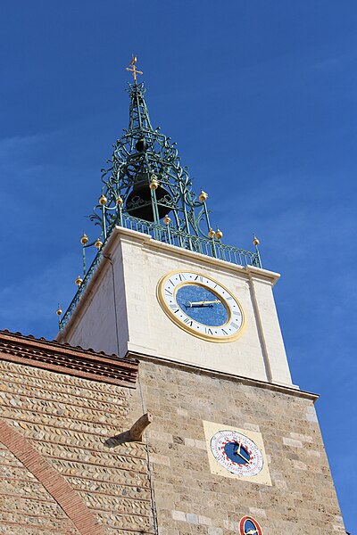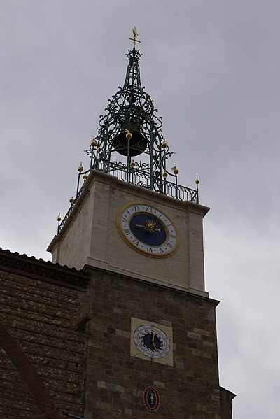 Le carillon de quarante-six cloches, fondu en 1878 par la fonderie Amédée Bollée et restauré en 1996, est installé dans le clocher de l'église Saint-Jean-le-Vieux mitoyenne et constitue le deuxième ensemble campanaire régional après Carcassonne ; il couvre quatre octaves, dispose d'un clavier de type « coup de poing », est classé Monument historique et comprend un bourdon de 1,63 tonne. La cathédrale conserve en outre un petit carillon d'horloge dans un campanile en fer forgé, et le bourdon principal du beffroi, fondu en 1418 et d'un diamètre de 202 cm, figure parmi les plus anciennes et imposantes cloches de la région.