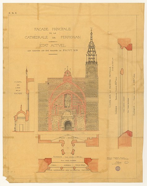 La cathédrale Saint-Jean-Baptiste de Perpignan est un édifice gothique méridional édifié entre 1324 et 1509, situé dans le centre de Perpignan et implanté au nord de l'ancienne église romane Saint-Jean-le-Vieux qui subsiste sur son flanc nord. À l'origine collégiale, elle devint cathédrale en 1602 lors du transfert du siège épiscopal d'Elne vers Perpignan. L'ensemble forme un ensemble religieux urbain comprenant le cloître-cimetière dit Campo Santo, l'église Saint-Jean-le-Vieux, la chapelle de la Funéraria, la chapelle du Dévot-Christ, l'ancien palais épiscopal et le bâtiment dit du Syndicat ; l'hôpital Saint-Jean et le presbytère ont été démolis. La construction, lancée par le roi Sanche en 1324, connut d'abord une activité soutenue durant moins de vingt ans, puis un long ralentissement après la chute du petit royaume et les ravages de la peste, avant de reprendre au début du XVe siècle sous l'impulsion de Jérôme d'Ocon et de l'administrateur Galceran Albert. Le maître d'œuvre cité pour cette période est le Majorquin Guillem Sagrera ; en 1436 le plan fut modifié par Galceran Albert pour réduire l'édifice à une nef unique large de 18 m et haute de 26 m, flanquée de chapelles entre contreforts en lieu et place des bas-côtés initialement prévus. La construction progresse d'ouest en est : le sanctuaire fut voûté pendant la première occupation française du Roussillon et la première messe fut célébrée en 1504 ; l'édifice a été solennellement consacré le 16 mai 1509. En 2024, la cathédrale a célébré le sept centième anniversaire de la pose de sa première pierre lors d'une cérémonie présidée par les évêques mentionnés dans les archives.