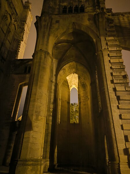 Le cloître, bâti entre 1349 et 1417 sur l'emprise de la cathédrale carolingienne, est adossé à l'enceinte du Ve siècle et relié au palais archiépiscopal ; ses quatre galeries homogènes, encadrées par de grandes arcades prévues pour recevoir remplages et meneaux, sont partiellement couronnées d'une balustrade quadrilobée et soutenues par des contre-forts ornés de gargouilles et de pinacles flamboyants. La cour Saint-Eutrope, qui prolonge le chœur et correspond à l'amorce du transept, est limitée à l'ouest par le début de la nef ; la réalisation prévue d'une nef de cinq chapelles pentagonales de chaque côté n'a été que partiellement menée, et l'ensemble achevé aurait atteint environ 120 mètres de longueur.