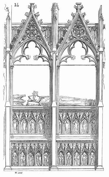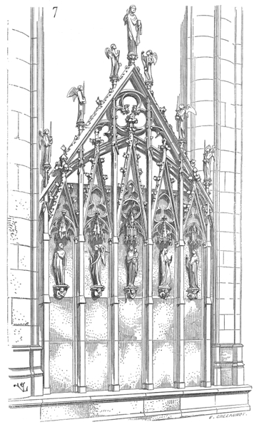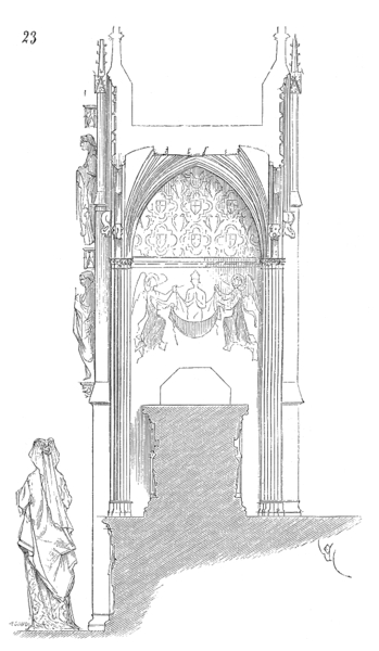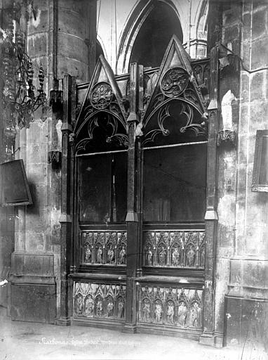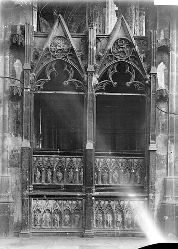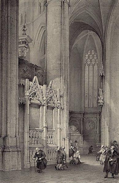 Le maître-autel du chœur, œuvre éclairée par des interventions successives (désigné vers 1694–1695, refait en 1752 et enrichi par Viollet-le-Duc en 1841), est classé au titre des monuments historiques ; un coffret contenant les chairs du roi Philippe III, autrefois inhumé dans l'allée centrale, a disparu à la Révolution.