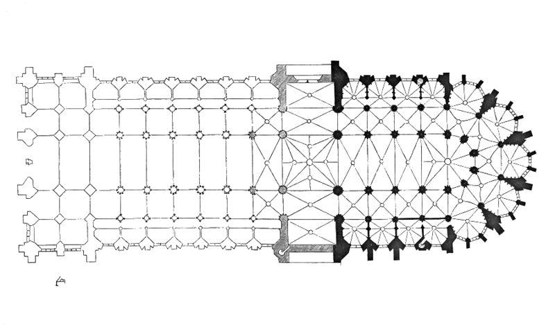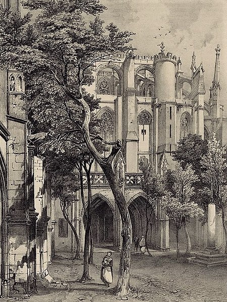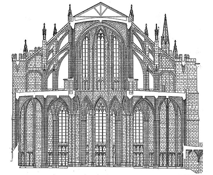 Le chœur, réalisation majeure du XIIIe-XIVe siècle, est imposant : environ 40 mètres de largeur, 60 mètres de longueur et 15,20 mètres pour le vaisseau central ; les voûtes culminent à 41 mètres. À l'extérieur se remarquent de vastes terrasses sur l'abside, une galerie fortifiée reliant les culées, des arcs-boutants à deux étages et à double volée, ainsi que l'appareil régulier des assises et la perfection des voûtes, qualités qui font de la cathédrale une œuvre savante du début du XIVe siècle.
