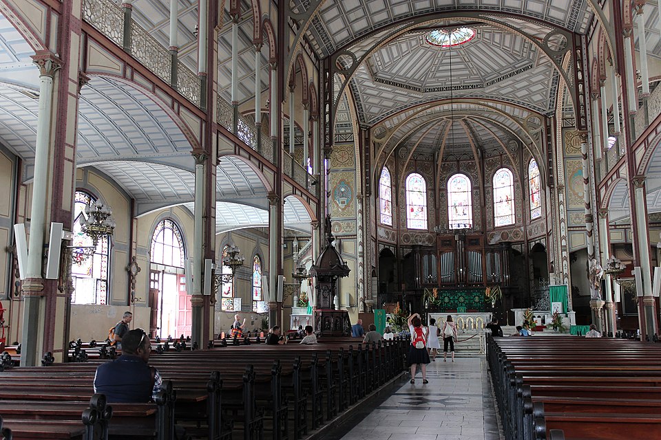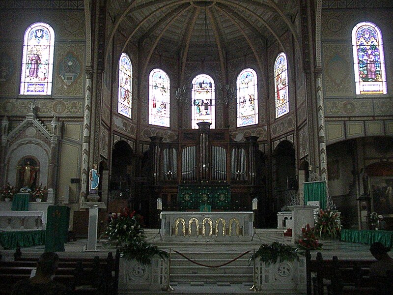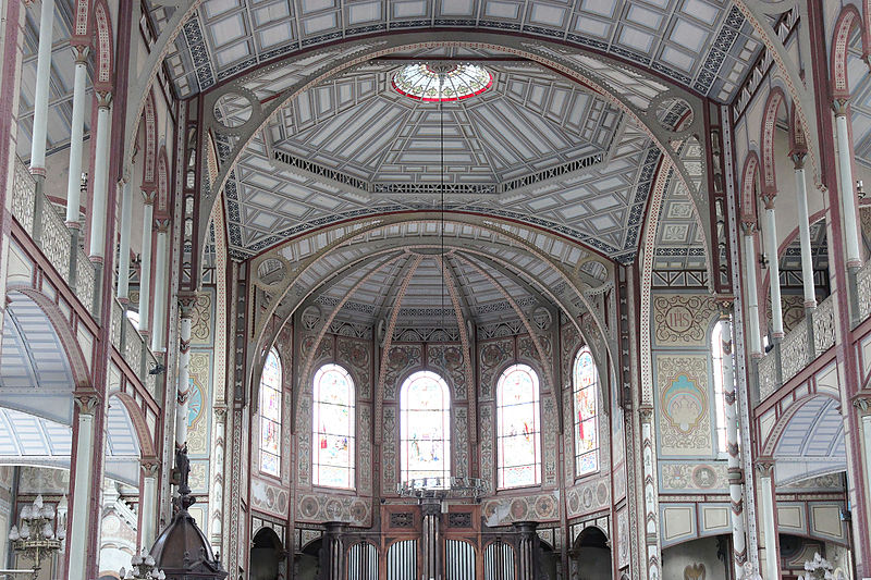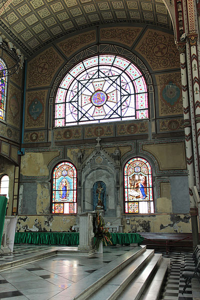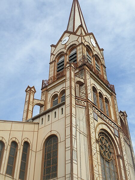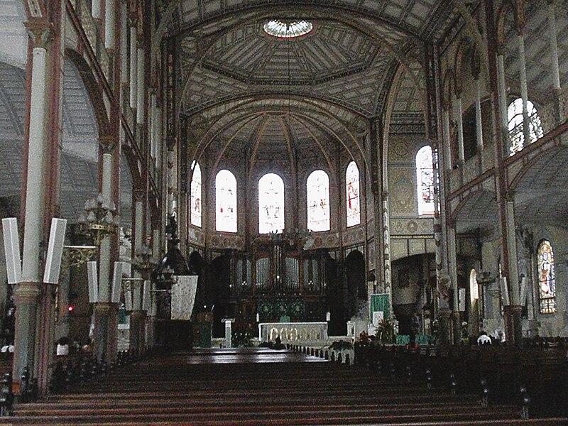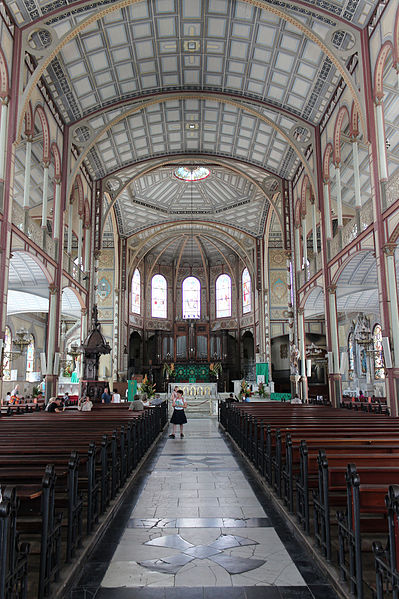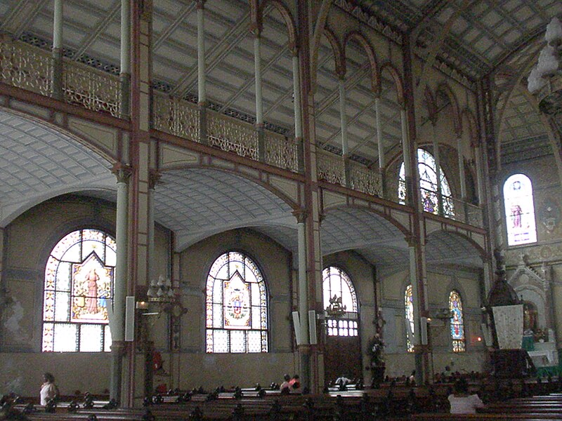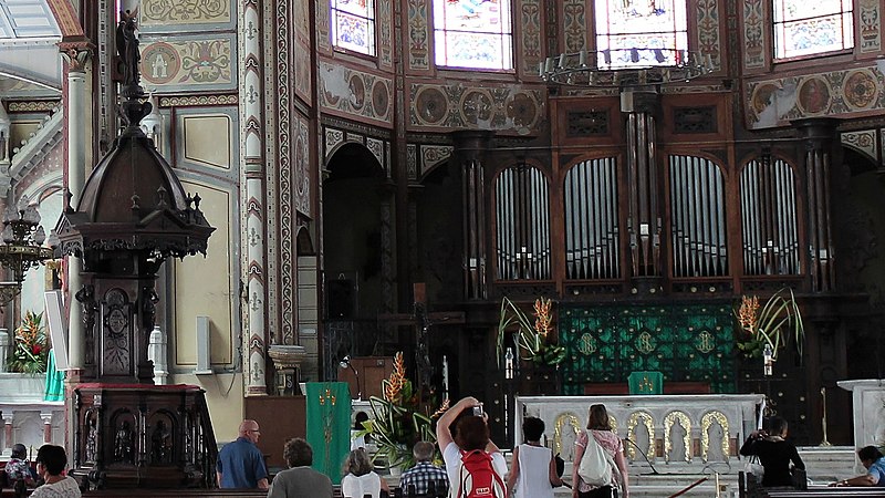 La cathédrale Saint-Louis de Fort-de-France, placée sous le patronage de saint Louis, est le siège de l'archidiocèse de Saint-Pierre et Fort-de-France et se situe à Fort-de-France, en Martinique. La présence d'un lieu de culte à Fort-Royal est mentionnée dès 1671, d'abord sous la forme d'un simple abri de paille. Après l'incendie causé par les Hollandais en 1674, le gouverneur Charles de Courbon-Blénac fit édifier une construction en dur entre 1678 et 1685, décrite par le Père Labat comme mesurant 130 pieds de long sur 30 de large et comportant deux chapelles. Ce bâtiment fut réparé en 1703, agrandi et doté de murs épais couverts de tuiles, puis légèrement endommagé par un raz-de-marée en 1766. En 1829 une tribune et de nouveaux bancs furent installés; des maisons proches du porche furent démolies en 1836 pour réduire les risques d'incendie, mais c'est le tremblement de terre de 1839 qui détériorera fortement l'édifice et entraînera sa fermeture au culte, les offices étant alors tenus dans la grande salle de l'hospice civil. Sur les bases de l'ancien édifice, un nouvel édifice conçu par l'architecte César Jolly vit sa première pierre posée en 1845 et fut inauguré comme cathédrale en 1854, devenant la plus vaste et la plus richement dotée de la colonie. Son toit en zinc fut remplacé par des tuiles en 1861; l'incendie du 22 juin 1890 détruisit la cathédrale et un toit provisoire permit un retour temporaire au culte avant que le cyclone de 1891 n'emporte à nouveau la couverture, obligeant les fidèles à se réunir dans un hangar sur la place de la Savane. L'édifice actuel a été élevé par l'architecte parisien Pierre-Henri Picq à partir de 1891 sur l'emplacement de la précédente cathédrale détruite par le cyclone. De style néogothique à l'extérieur et romano-byzantin à l'intérieur, il combine éléments gothiques et arcs en plein cintre avec une coupole octogonale; il mesure 66 mètres de long sur 24 mètres de large et repose sur une ossature entièrement métallique conçue pour résister aux séismes. Les pièces métalliques (poutrelles, chapiteaux, arcs) furent fabriquées par la société Moisant-Laurent-Savey en métropole, expédiées en Martinique et montées sur les fondations de l'ancienne cathédrale. La nouvelle cathédrale fut inaugurée le 2 juillet 1895 par Mgr Carméné. Le tremblement de terre de 1953 fragilisa la flèche, qui dut être démontée en 1971 avec une partie du clocher pour prévenir tout risque de chute. Propriétaire du bâtiment, la municipalité lança en 1976 une restauration confiée à l'ingénieur François Lubin; le clocher de 58,8 mètres fut alors renforcé et rehaussé pour recevoir une nouvelle flèche de 25 mètres recouverte de trois mille écailles d'aluminium de couleur bronze, et la cathédrale rénovée rouvrit ses portes le 15 décembre 1979 lors d'une messe célébrée par Mgr Maurice Marie‑Sainte. Classée au titre des monuments historiques le 9 octobre 1990, la cathédrale fait l'objet de travaux de restauration depuis cette date. Le bas-côté droit a été restauré à partir de 2002, le bas-côté gauche à partir de 2006, puis la restauration de la nef et du transept a débuté en octobre 2009. Après un arrêt des travaux, une nouvelle tranche de restauration a repris en 2015 pour le massif occidental, comprenant la dépose puis la repose de la flèche sous la direction d'Étienne Poncelet; la flèche a été déposée en octobre 2015 et la nouvelle posée en mars 2016. L'intérieur comprend une grande nef et deux berceaux collatéraux; la nef compte quatre travées soutenues par des piliers à colonnettes métalliques qui portent des arceaux métalliques, tandis que les bas-côtés, assez larges, sont surmontés de vastes tribunes aux garde-corps en fer forgé. La croisée du transept est couverte par une coupole octogonale aplatie laissant entrer la lumière à sa base. Le décor floral qui orne de nombreux espaces intérieurs est protégé par le classement aux monuments historiques du 9 octobre 1990. Parmi le mobilier ancien se trouvent une chaire à prêcher en bois sculptée de la fin du XIXe siècle, classée à l'inventaire des monuments historiques en 1995, des grilles en fer forgé aux armes de Saint-Louis entourant le chœur, des bancs en bois et une partie de l'autel de marbre. Dix-neuf vitraux, œuvre du peintre-verrier Néret et datant de la fin du XIXe siècle, représentent personnages et épisodes religieux; cinq d'entre eux, dans l'abside, sont consacrés à la vie de saint Louis, tandis que sept autres portent symboles religieux ou armoiries et devises d'évêques tels que Mgr Le Herpeur, Porchez, Fava et Carméné, et sont bordés d'éléments de flore tropicale ou d'attributs religieux.