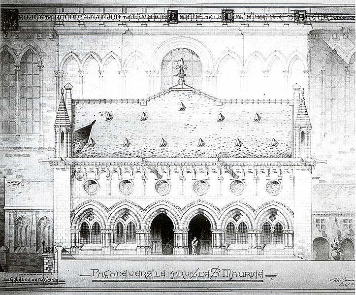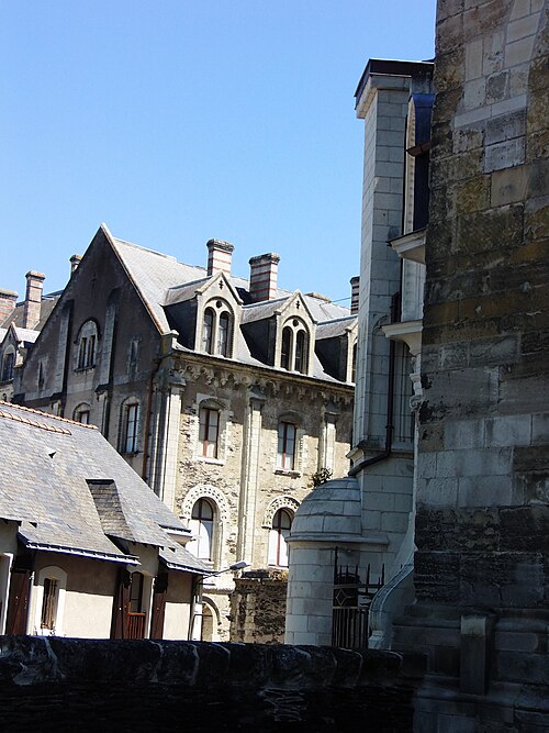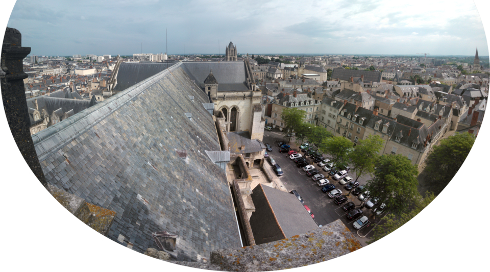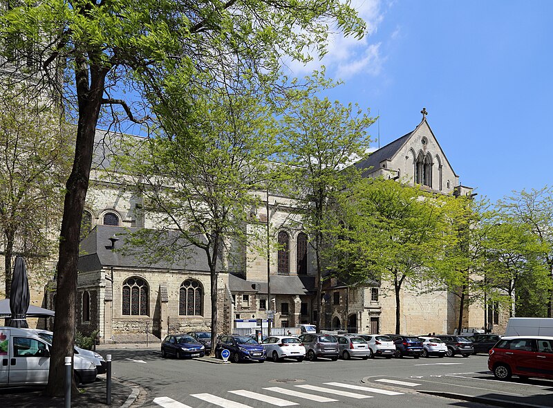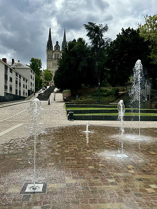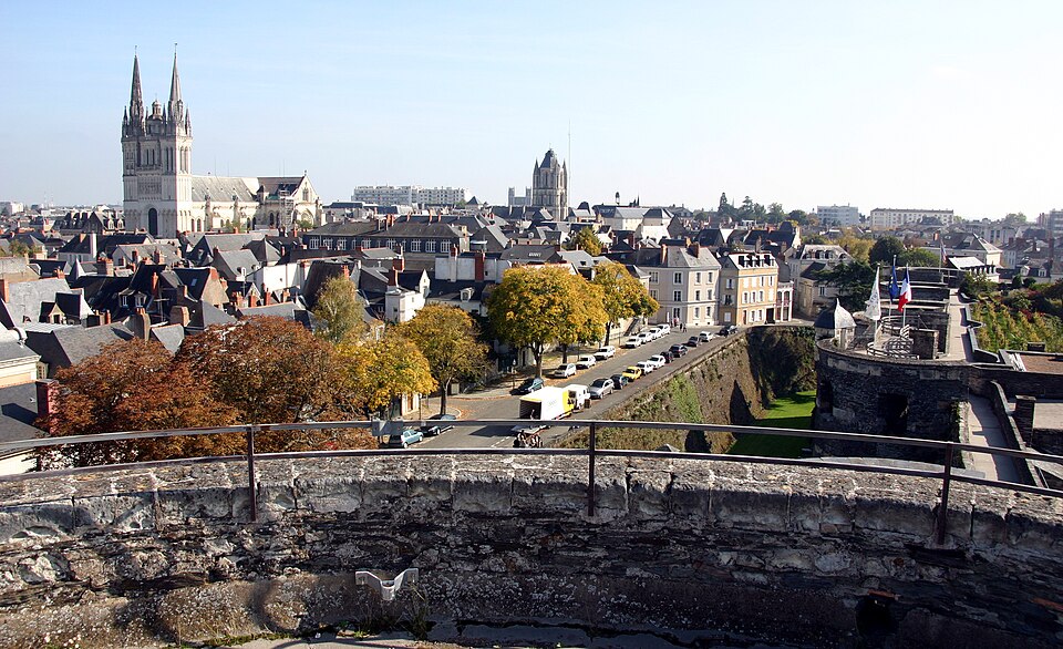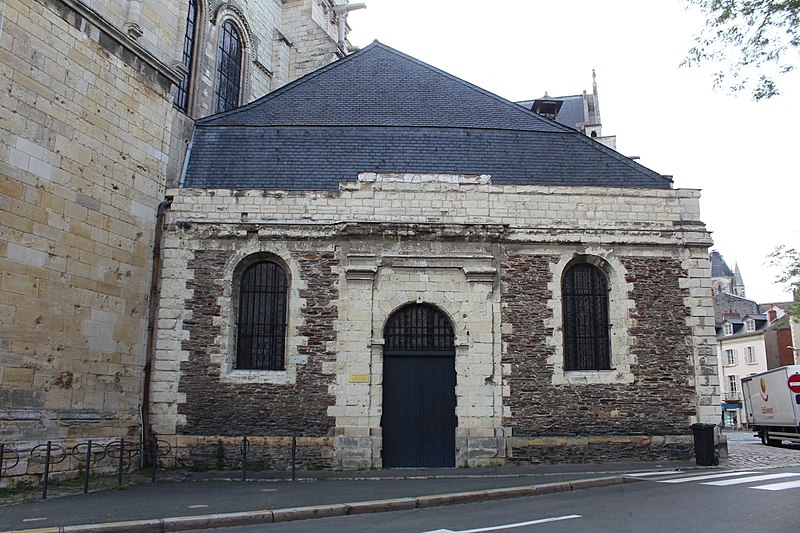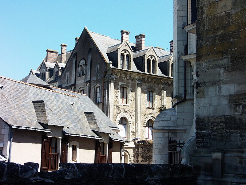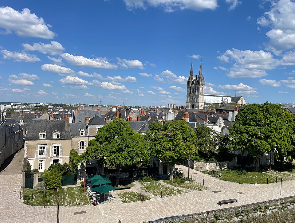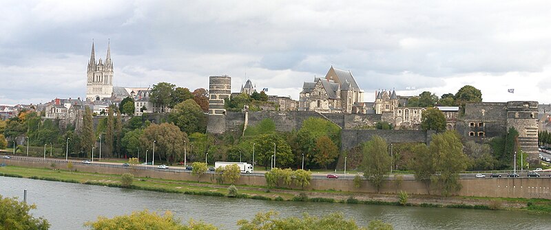La cathédrale Saint-Maurice d'Angers, siège du diocèse d'Angers, illustre la transition entre les styles roman et gothique et constitue un témoignage majeur du gothique angevin. Mentionnée pour la première fois en 470 lors d'un incendie attribué aux Francs, elle est primitivement dédiée à saint Maurice, avec des patronymes liés à la Vierge au IXe siècle et à saint Maurille au Xe siècle. Une église reconstruite et dédiée en 1025 par l'évêque Hubert de Vendôme a laissé la partie inférieure des murs de la nef. L'édifice actuel, principalement des XIIe et XIIIe siècles, résulte de plusieurs campagnes de construction : la nef a été édifiée entre 1140 et 1160 sous les évêques Ulger et Normand de Doué, la façade entre 1170 et 1180, précédée vers 1200 d'un porche d'entrée. La croisée, la travée droite du chœur et le bras sud du transept datent du premier tiers du XIIIe siècle sous Guillaume de Beaumont, tandis que le bras nord du transept est achevé à partir de 1236 ; les travées d'absides sont réalisées entre 1239 et 1255 sous Michel de Villoiseau et la sacristie au cours du deuxième quart du XIIIe siècle. La chapelle Saint-Jean est élevée entre 1386 et 1390 ; le cloître est construit entre 1437 et 1458 par le maître-maçon Bonju, l'étage de la bibliothèque sur l'aile orientale étant achevé en 1467, et la chapelle Sainte-Anne est élevée entre 1466 et 1469. Les flèches latérales sont reconstruites entre 1519 et 1525, la flèche nord par Mathurin Georges, et le clocher central réédifié entre 1534 et 1540 par l'architecte Jean Delespine. Un calvaire extérieur est érigé en 1751 et une crypte pour le caveau des chanoines est creusée en 1763 par Joseph Desnoyers. La paroisse Saint-Maurice est signalée en 1040 ; sa chapelle dite du Crucifix est bâtie entre 1190 et 1220, agrandie au XVIe siècle par l'adjonction d'un vaisseau sud par Nicolas Viriot puis partiellement amputée à l'ouest à la fin du XVIIIe siècle. De nombreuses mutilations et restaurations affectent l'édifice aux XVIIIe et XIXe siècles : la chapelle Saint-Jean transformée en logement en 1770, la destruction du porche en 1807, la quasi-destruction du cloître vers 1812 sauf trois arcades et les baies correspondantes de la bibliothèque, la reconstruction des flèches et du clocher central après l'incendie de 1831, une restauration générale surtout des parties hautes entre 1870 et 1914, et des interventions ponctuelles après les bombardements de 1944. La cathédrale est classée au titre des monuments historiques dès la liste de 1862. Les vitraux, du XIIe au XXe siècle, les tapisseries, le trésor et des peintures murales du XIVe et XVe siècle constituent une riche décoration intérieure. Parmi les œuvres remarquables figurent un décor peint du XIIIe siècle dédié à la vie de saint Maurille, une verrière de la vie de saint Julien dans le transept considérée comme un chef-d’œuvre du XIIIe siècle et des rosaces du transept réalisées par André Robin en 1451; certains vitraux ont par ailleurs été rénovés au XXe siècle par Jacques Le Chevallier. Le maître-autel à baldaquin en bois doré date de 1758, la chaire du milieu du XIXe siècle, de style néogothique, illustre des thèmes bibliques et apocalyptiques, et la cathédrale conserve des stalles, des monuments funéraires et des peintures notables dont un retable attribué au Maître du Retable Beaussant. Le grand orgue a fait l'objet de multiples reconstructions depuis le XVe siècle ; la tribune et le buffet actuels datent du XVIIIe siècle et sont classés depuis 1977 ; l'instrument, restitué et électrifié au milieu du XXe siècle, comprend aujourd'hui trois claviers, un pédalier et soixante-cinq jeux, et a été remis en service en 2025. L'édifice présente des dimensions importantes : longueur totale 90,47 mètres, largeur de la façade 23 mètres, hauteur de la voûte de la nef 24,7 mètres, largeur de la nef 16,4 mètres et tours culminant à 75 mètres. Le clocher abrite neuf cloches, dont la plus lourde, « Maurice » fondue par Besson (6 700 kg), est fissurée et ne sonne plus ; les autres portent des noms et notes variés. La cathédrale reste un ensemble architectural et artistique riche, fruit de plusieurs siècles d'extensions, de destructions et de restaurations.