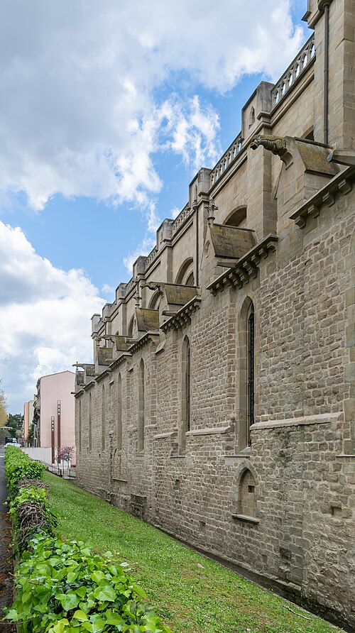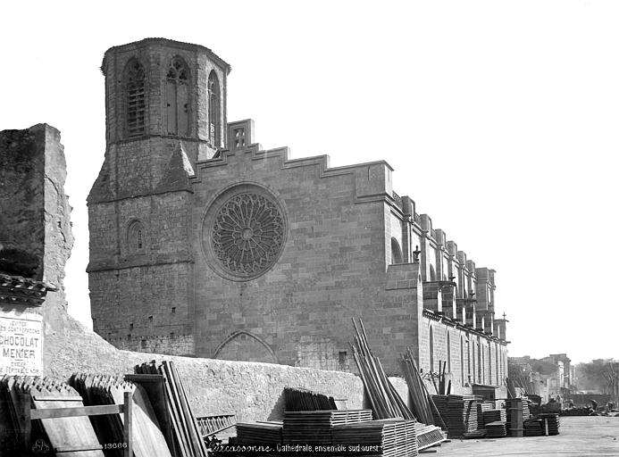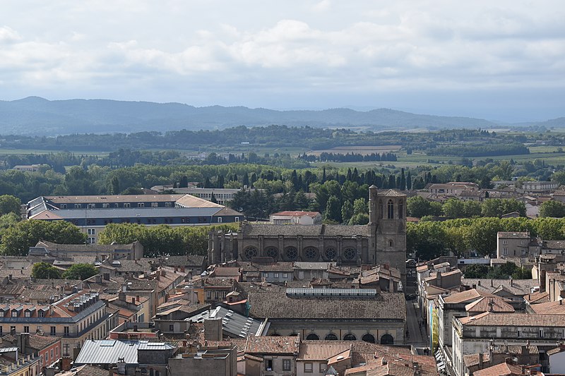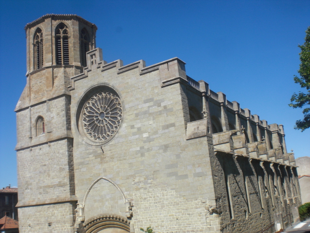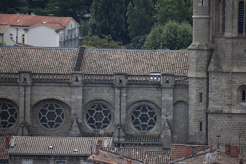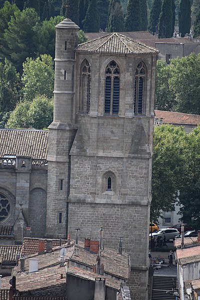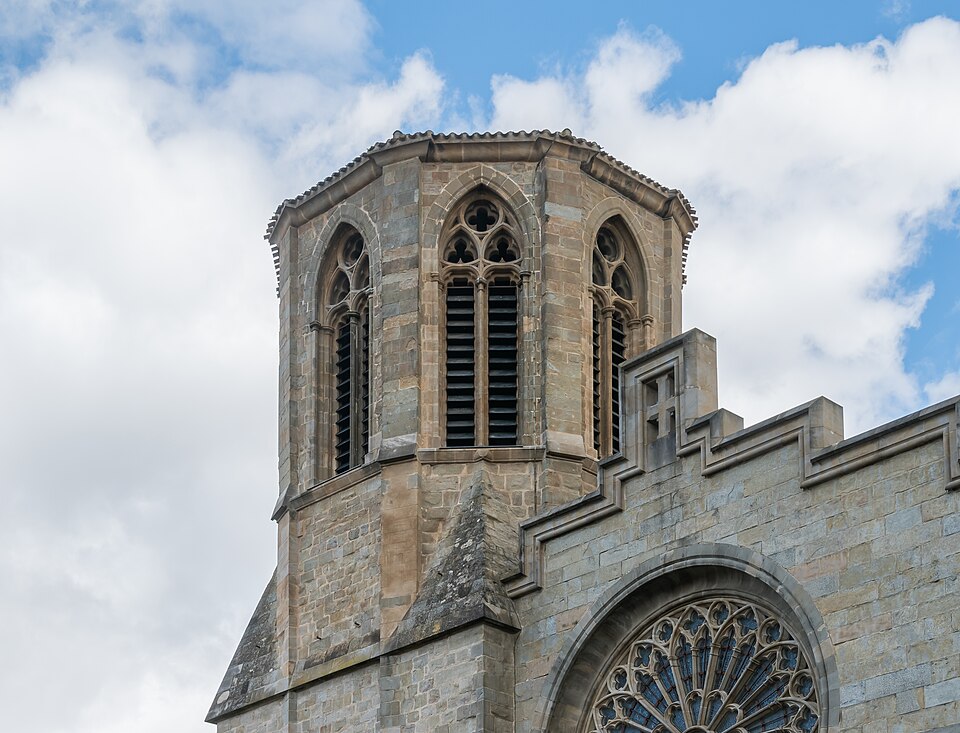La cathédrale Saint-Michel de Carcassonne, située dans la bastide Saint-Louis au pied de la Cité, remplace la cathédrale Saint-Nazaire-et-Saint-Celse comme siège épiscopal en 1803. Un premier édifice paroissial, implanté dans ce faubourg, fut détruit au début du XIIIe siècle et reconstruit au cours du siècle suivant lors de l'urbanisation de la Ville Basse. La reconstruction et les agrandissements se poursuivirent au XIIIe siècle, notamment après qu'en août 1283 le roi Philippe le Hardi autorisa le recteur à acquérir neuf maisons pour l'extension de l'église. Après l'incursion du Prince Noir, l'église fut endommagée puis intégrée aux nouvelles fortifications du bourg; des traces de ces aménagements subsistent près de l'abside, où se distingue une tour cylindrique d'aspect militaire. Des fossés larges d'environ dix mètres furent creusés autour de l'édifice avant d'être comblés et remplacés au XIXe siècle par une promenade publique. En 1657 on posa des voûtes d'ogives sur la nef, et lors de la nomination de Saint-Michel comme cathédrale en 1803 des aménagements intérieurs furent entrepris pour l'adapter à sa nouvelle fonction. Un incendie qui ravagea le chœur dans la nuit du 4 au 5 novembre 1849 interrompit ces travaux, puis une vaste campagne de restauration dirigée à partir de 1857 par Eugène Viollet-le-Duc transforma l'édifice et en fait un exemple notable de ses restaurations. Viollet-le-Duc remit notamment en place des ouvertures de la nef sous la forme de roses, restaura culots, verrières, clés de voûte et bases en s'inspirant du style de l'ancienne cathédrale de la Cité, releva la partie supérieure du clocher et de la tourelle d'escalier selon un modèle simplifié, et remania la façade occidentale en édifiant un nouveau portail. Le plan de l'édifice reste simple : une nef unique de huit travées, bordée de chapelles latérales et surmontée de roses ajoutées par Viollet-le-Duc, conduit à un chœur composé d'une abside à sept pans flanquée de deux absidioles. Le chœur et les grandes baies ogivales abritent des vitraux du XIVe siècle qui furent restaurés après l'incendie par le maître-verrier Alfred Gérente. Les voûtes ogivales de la nef, posées entre 1657 et 1752, remplacèrent une charpente apparente, tandis que les voûtes du chœur remontent au XIIIe siècle. La façade, sobre, est animée par une rosace de huit mètres de diamètre; le clocher, massif, présente une base rectangulaire sur trois niveaux avant de passer à un couronnement octogonal et renferme une sonnerie de huit cloches. Six des cloches principales furent fondues en 1969 par la fonderie Bollée d’Orléans et les deux plus petites, nommées André et Pierre, en 1995 par la fonderie Cornille-Havard; la cloche majeure porte le nom de Saint-Michel Archange et les autres noms et caractéristiques sont conservés dans l'inventaire. L'orgue de tribune, construit par Aristide Cavaillé-Coll en 1860 pour remplacer un instrument de 1687, fut inauguré par Louis James Alfred Lefébure-Wély ; son buffet en chêne, dessiné par Viollet-le-Duc, adopte un style néo-gothique et est orné de treize statues grandeur nature; l'instrument compte 44 jeux sur trois claviers et pédalier, avec transmissions mécaniques, et a fait l'objet de restaurations successives jusqu'à une remise en état complète en 1998. La cathédrale est classée monument historique depuis le 12 juillet 1886 et ses abords depuis le 2 août 1926, et de nombreux objets y sont répertoriés dans la base Palissy. Une campagne de rénovations d'envergure est en cours depuis 2009 dans le cadre du plan de relance de l'État. La cathédrale abrite les sépultures des évêques Arnaud-Ferdinand de La Porte, Joseph-Julien de Gualy de Saint-Rome, Félix-Arsène Billard, Jean-Joseph Pays et Pierre-Marie Puech. La liste des prêtres responsables de la cathédrale est documentée de 1803 à nos jours, le dernier recteur mentionné étant Georges Rieu (2023).