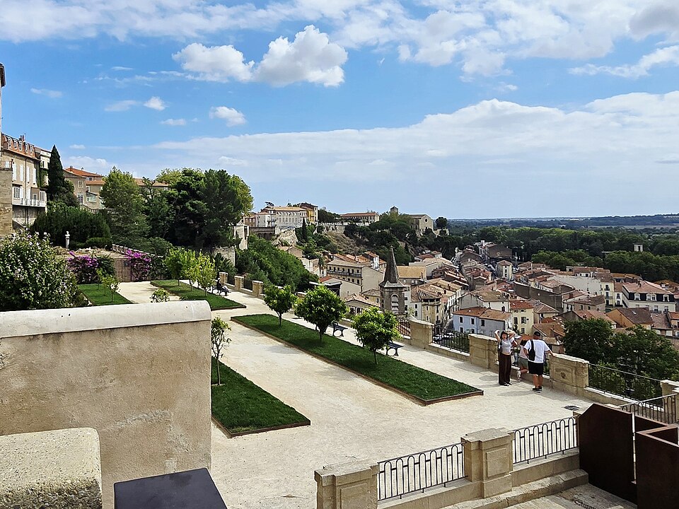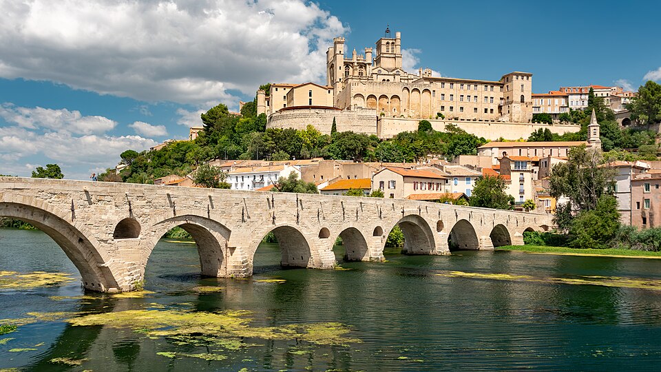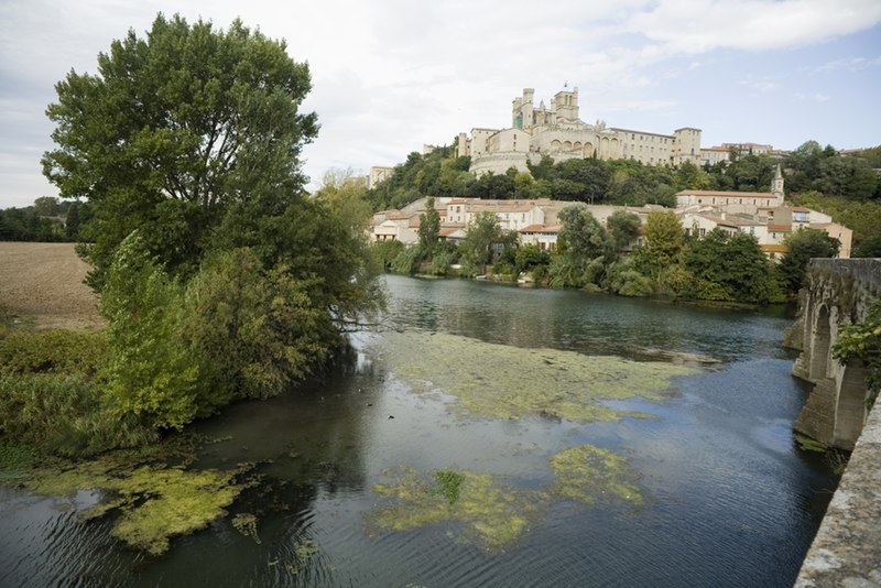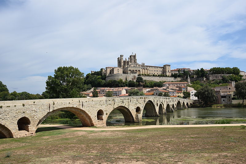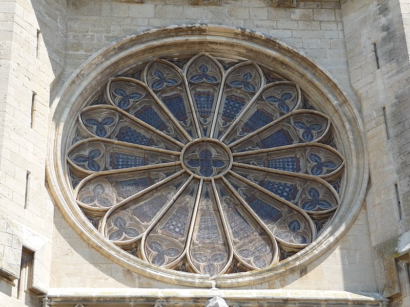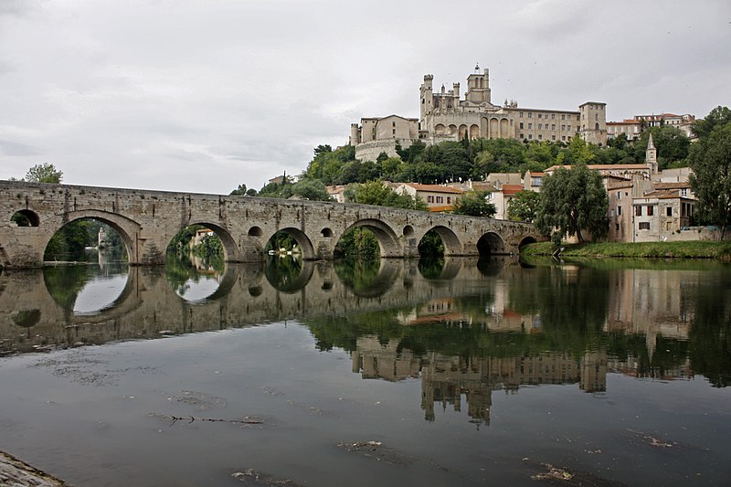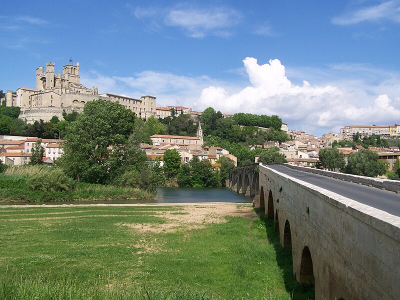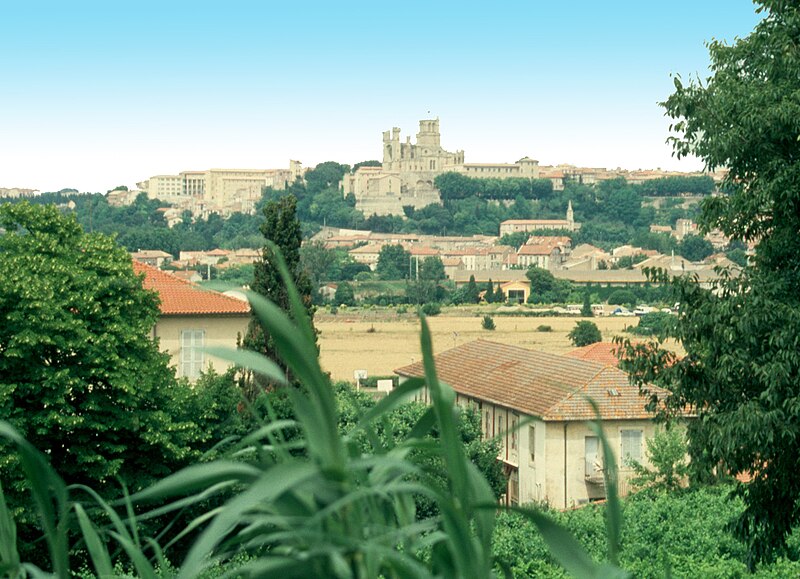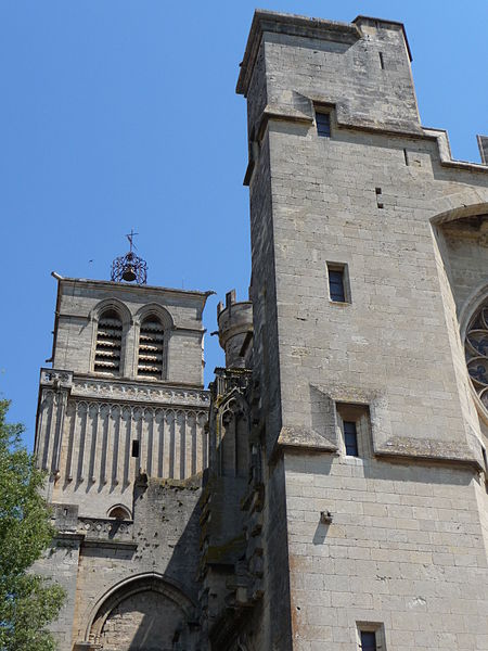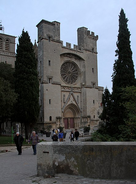 La cathédrale Saint-Nazaire-et-Saint-Celse, de style gothique, se dresse à Béziers, dans l'Hérault, sur un large promontoire dominant la plaine de l'Orb et les contreforts des anciens remparts de la cité médiévale ; son emplacement offre une vue qui va jusqu'aux massifs de la Montagne Noire, du Caroux et, à l'horizon, des Pyrénées. Classée au titre des monuments historiques dès la liste de 1840, elle est dédiée aux saints Nazaire et Celse et repose sur un site ecclésial ancien où s'élevaient une église romane, un cimetière et, auparavant, un temple romain consacré à Auguste et Livie. Un texte signale la présence d'un édifice dès le VIIIe siècle ; l'église romane, attribuée à Maître Gervais, fut entièrement détruite par un incendie lors du sac de Béziers le 22 juillet 1209, et la reconstruction gothique commence au milieu du XIIIe siècle, conservant toutefois quelques vestiges romans visibles à l'intérieur. L'édifice, implanté dans la partie ouest de la ville, associe abside, sacristie et tour-clocher ; la façade occidentale présente un portail à double porte aujourd'hui inutilisé, tandis que l'on distingue le mur nord de la nef, la façade sud donnant sur l'autre rive de l'Orb et le Pont Vieux. Une tour carrée de 48 mètres, surmontée d'une tourelle abritant un campanile en fer, domine la cathédrale ; la partie supérieure, du XVe siècle, est ornée de colonnes dont les bases représentent des visages humains. Le clocher renferme le bourdon Marie, fondu par François Granier et d'environ quatre tonnes, qui est, par son importance, le deuxième de la région après celui de la cathédrale de Montpellier ; de nombreuses gargouilles ornent les murs et des grilles de ferronnerie du XIVe siècle protègent les vitraux du chœur. La sacristie, attenante à l'abside, est plus basse et remonte au XVe siècle sous l'épiscopat de Guillaume de Montjoie ; elle possède une balustrade et des grilles en fer forgé attribuées au XIIIe siècle. La façade est se compose de deux tours et d'un ensemble crénelé, avec une tour ronde en retrait servant de tour de guet ; elle est percée d'une grande rosace de dix mètres de diamètre et son portail, aujourd'hui fermé, est surmonté d'un mâchicoulis ; la plupart des sculptures architecturales ont été détruites, à l'exception de deux statues représentant la Synagogue et l'Église. La porte du nord du transept, créée au XVIIe siècle, est surmontée d'un linteau de bois évoquant le martyre des saints Nazaire et Celse. L'intérieur, en forme de croix grecque, mesure environ cinquante mètres de longueur ; la nef fait quatorze mètres de large, le transept trente-trois mètres et la voûte de la nef s'élève jusqu'à trente-deux mètres. On y trouve des colonnes et chapiteaux romans, vestiges de l'ancienne cathédrale, la majorité des colonnes étant de style gothique et les arcs doubleaux datant du XIVe siècle ; les appuis des tribunes près du chœur portent des frises à triglyphes et métopes, imitations d'un style gallo-romain reprises à l'époque romane. Le chœur conserve d'anciens vitraux gothiques mais a été profondément remanié au XVIIIe siècle dans un style baroque avec une colonnade de marbre rouge encadrant les statues des quatre évangélistes, une gloire en staff et un autel en marbre polychrome ; au-dessus des stalles figurent six grands tableaux, trois signés Thierry sur la vie de Moïse et trois de Raoux représentant Constantin et sainte Hélène. Les murs portent des fresques anciennes, datées des XIVe et XVe siècles, restaurées en 1917 après des dégradations survenues pendant les guerres de Religion ; la cathédrale abrite également une crypte du début du XIIIe siècle accessible par un escalier dans le bas-côté gauche et plusieurs stations du chemin de croix. Le cloître jouxte la cathédrale au sud mais demeure inachevé, sans galerie supérieure ; ses sculptures de voûtes datent du XIVe siècle et sa fontaine occupe aujourd'hui la place de la Révolution ; il conserve une collection lapidaire partiellement transférée au Musée du Biterrois, ainsi qu'un buste romain posé au sol, des statues d'art sacré, des éléments d'épigraphie médiévale et moderne, des pierres tombales scellées et deux fragments de sarcophage tardo-antique d'ateliers aquitains. En contrebas du cloître, le jardin de l'Évêché offre un panorama sur la plaine de l'Orb, les ponts — dont le Pont-Vieux —, le pont-canal et les écluses de Fonserannes. Le cloître a servi de lieu d'inhumation, notamment le 11 juillet 1769 pour Barbe Marguerite d'Igny de Risaucourt. Le grand orgue, installé sur une tribune à l'extrémité de la nef, présente un buffet de style Louis XIII réalisé par Guillaume Martois au XVIIe siècle ; sa partie instrumentale provient de diverses campagnes des XVIIe et XVIIIe siècles (Guillaume Poncher, Jean de Joyeuse, Joseph Isnard), complétées au XIXe siècle par une reconstruction en 1868 par Théodore Puget qui a modifié l'harmonisation, et l'instrument a été restauré en 1993. Le clocher contient au total six cloches : une cloche de tintement fondue en 1788 par Claude Brenel, logée dans un campanile en fer sur le toit, et cinq cloches battantes installées dans un beffroi métallique à l'intérieur du clocher ; parmi elles, quatre sont en volée rétrograde et une, dite Bernadette, en lancé-franc. La cathédrale possède aussi une cloche des heures fondue par Claude Brenel en 1788 dans un campanile séparé ; sont encore nommées Marie, bourdon fondu en 1939 par Granier (masse 3 958 kg, note la#2), Alexandrine (Burdin-Aîné 1892, 1 885 kg, do#3), Gabrielle (Burdin-Aîné 1893, 752 kg, fa#3), Isabelle (Burdin-Aîné 1893, 411 kg, la#3), Bernadette (Granier 1939, 193 kg, do#4) et la cloche Marie-Espérance, fondue en 2025 et consacrée lors des célébrations du millésime, le 28 septembre 2025.