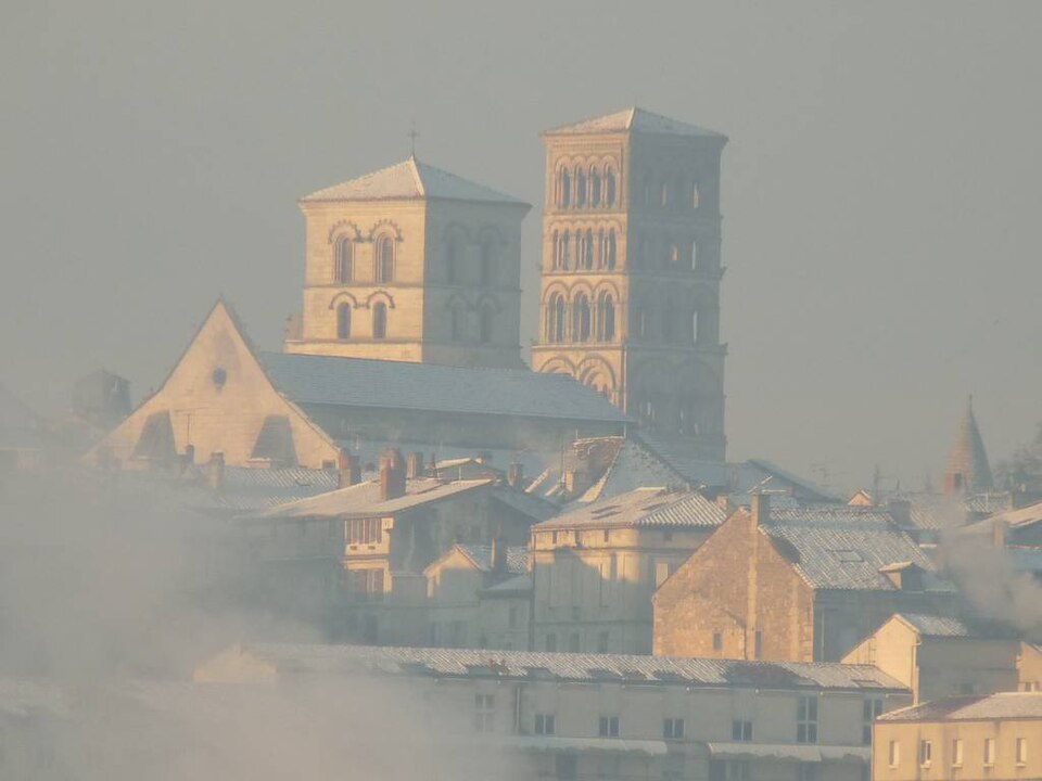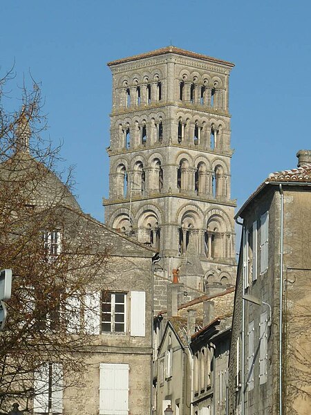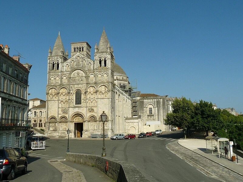 La cathédrale Saint-Pierre d'Angoulême, édifice roman situé à Angoulême en Charente, est l'église principale du diocèse et figure sur la liste des monuments historiques depuis 1840. Son emplacement, près des anciens remparts et d'une porte de la cité, pourrait correspondre à celui d'un sanctuaire primitif, peut‑être un temple dédié à Jupiter. Une première cathédrale, consacrée à saint Saturnin au IVe siècle, disparut lors de la prise d'Angoulême par Clovis en 508, après les événements de Vouillé. Clovis puis le roi Charibert firent reconstruire l'église en l'honneur de saint Pierre ; cette deuxième cathédrale, consacrée en 566 par les évêques saint Germain de Paris et saint Euphrône de Tours et mentionnée par Grégoire de Tours, fut ensuite incendiée, sans doute par les Normands. La troisième cathédrale, œuvre de Grimoard de Mussidan, évêque d'Angoulême, fut commencée vers 991 et consacrée en 1015 ; ses dimensions trop modestes réduisirent sa durée d'usage et il n'en subsiste que le mur nord dans les deuxième et troisième travées de la nef. Au début du XIIe siècle, la prospérité de l'Angoumois permit l'édification d'une vaste cathédrale sous l'impulsion de l'évêque Girard II (1101-1136), qui dirigea les travaux commencés vers 1110 et placés sous la surveillance du chanoine Itier Archambaud ; la dédicace de 1128 montre que le chevet et sans doute la nef étaient alors largement réalisés, mais Girard laissa la partie haute de la façade inachevée à sa mort en 1136. Le chantier commença par la nef puis, vers 1118, par les parties basses et médianes de la façade ; la venue possible de sculpteurs toulousains à cette époque expliquerait certains reliefs de la partie basse. Vers la fin du XIIIe siècle, le chevet et le transept reçurent six chapelles rayonnantes et la cathédrale servit de lieu de sépulture pour les comtes d'Angoulême, dont Jean d'Orléans. La cathédrale subit des dommages pendant les guerres de Religion (1562-1568) et fut canonnée en 1568 par l'armée protestante conduite par l'amiral de Coligny, qui détruisit le clocher sud. Des restaurations menées entre 1625 et 1634 ajoutèrent deux tours de guet sur la façade orientale, visibles sur les photographies de 1851, et la Révolution transforma l'édifice en temple de la Raison. D'importantes interventions menées par Paul Abadie de 1852 à 1879, sous l'égide de l'évêque Antoine‑Charles Cousseau, ont profondément modifié l'intérieur et l'extérieur de la cathédrale.