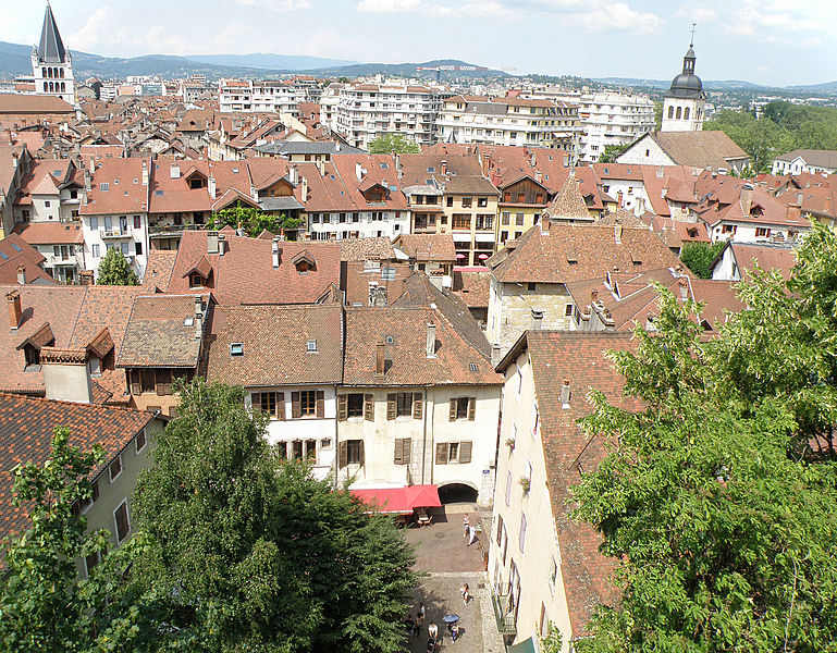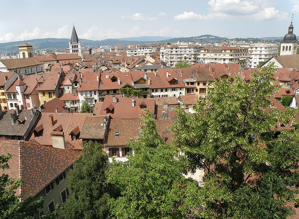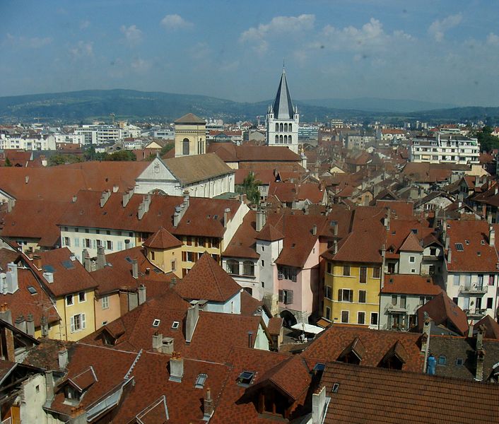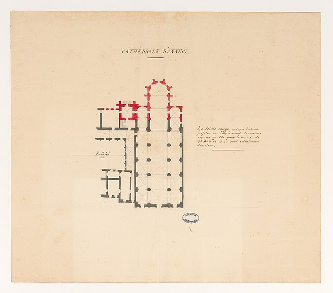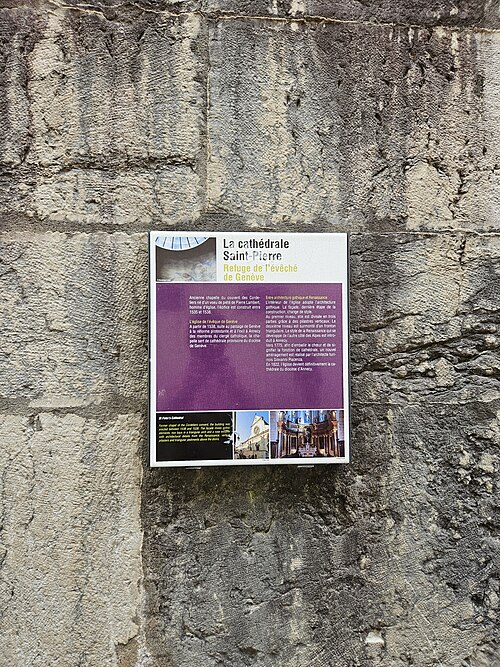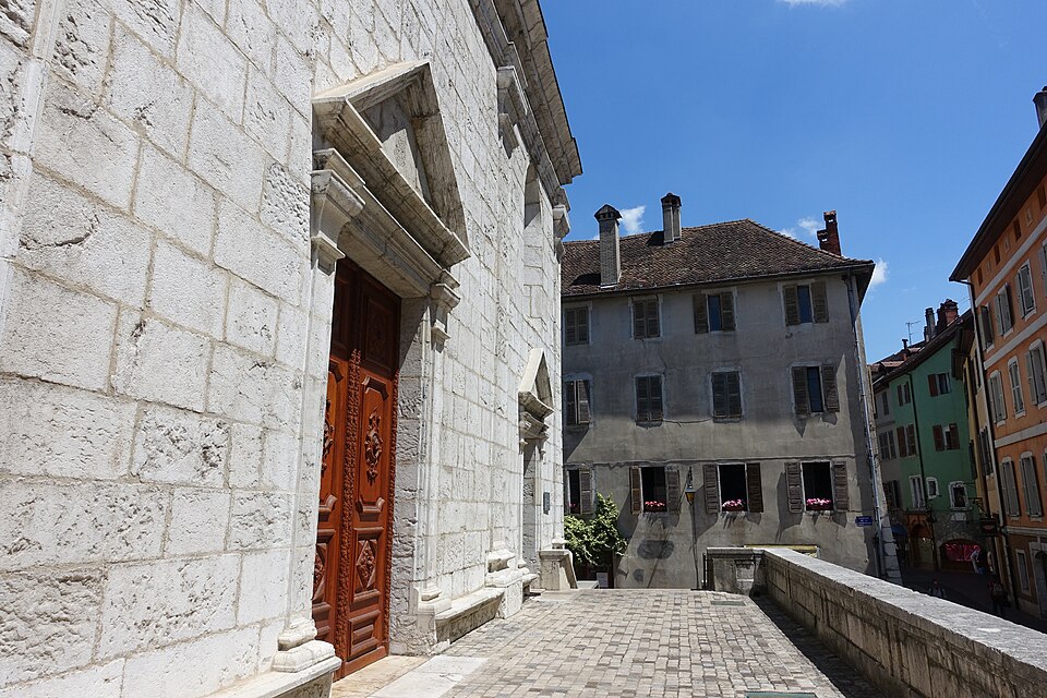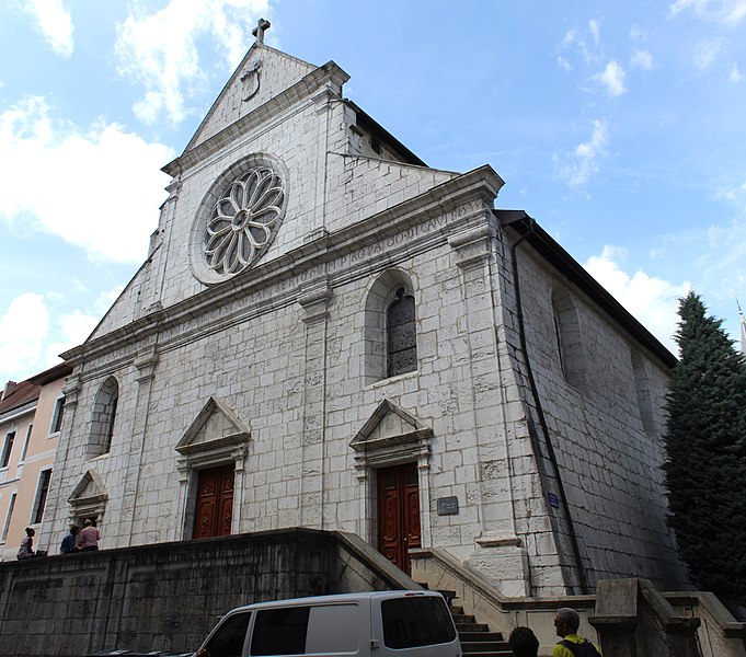 L'édifice est illustré par diverses vues : la nef depuis le portail, la nef et l'orgue depuis le maître-autel, la chaire, le maître-autel, l'orgue de Lété et plusieurs chapelles ; une photographie du clocher réalisée en 1883 et un vitrail montrant François de Sales rencontrant Jeanne de Chantal sont également signalés. Parmi les références figurent notamment les travaux de Georges Grandchamp et Raymond Oursel sur la cathédrale et l'ouvrage de Raymond Oursel sur l'art sacré en Savoie, qui traitent de l'édifice. Des ressources complémentaires et des notices sont disponibles sur des bases et sites spécialisés consacrés au patrimoine, à l'architecture et à la religion.