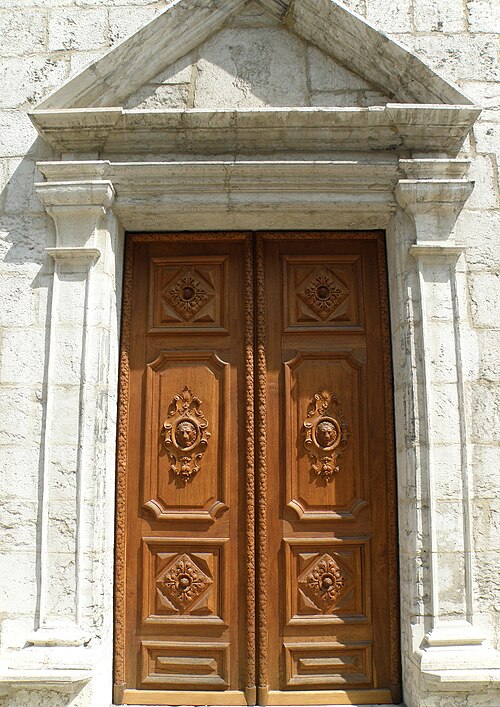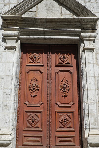 La façade, datée de 1535, est une composition de style strictement Renaissance qui masque la structure basilicale de l'édifice ; selon Marcel Grandjean, elle s'inspire d'un modèle romain, l'église Sainte-Marie-du-Peuple. Cette façade est rythmée de pilastres toscans, couronnée d'un fronton et ajourée d'une rose qui reste, par sa forme, héritière de la tradition gothique, imitant la rose supérieure de la tour sud de la cathédrale Saint-Pierre de Genève, due au même architecte.