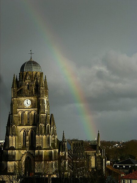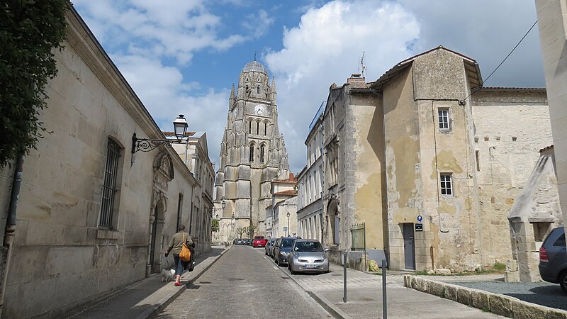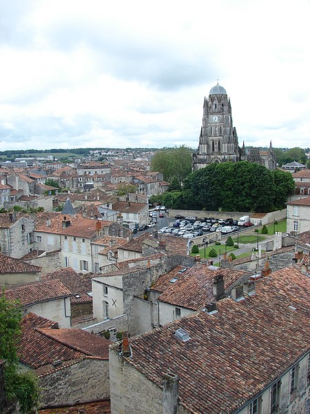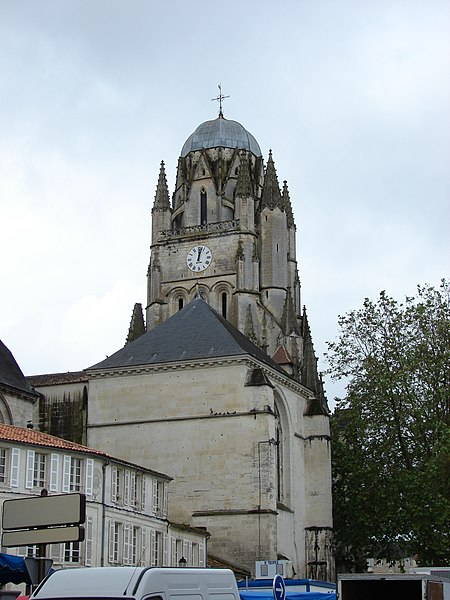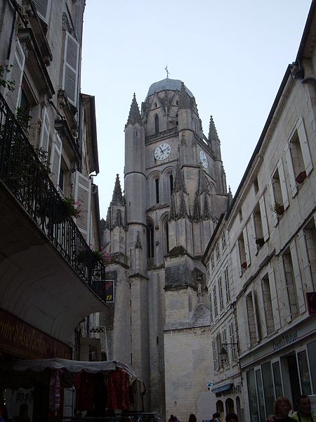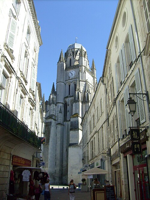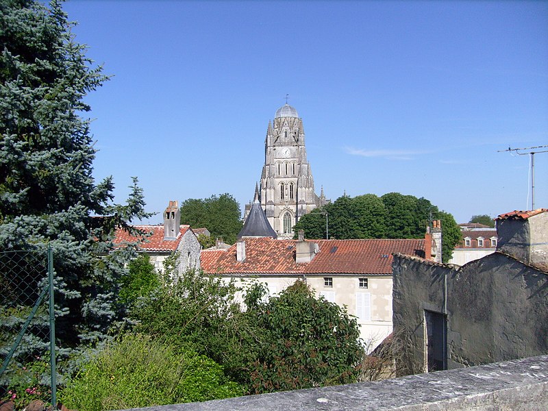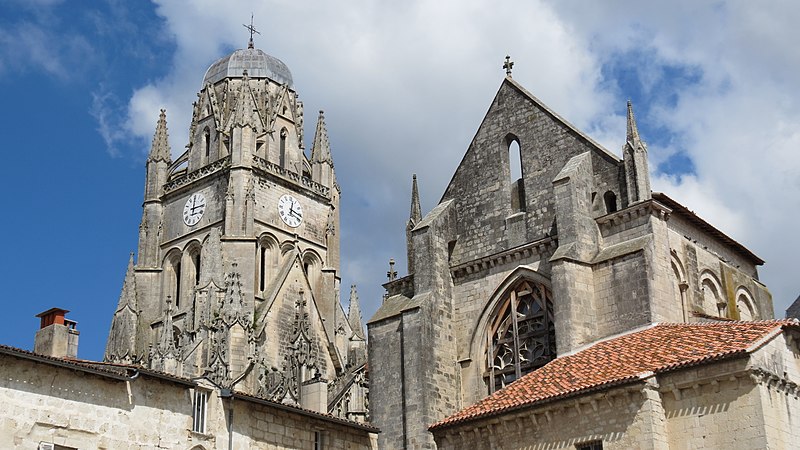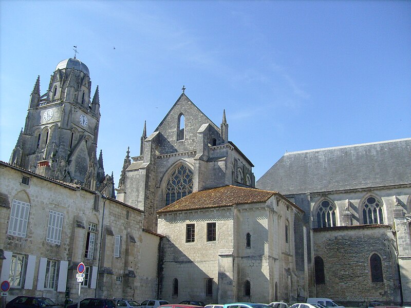 L'église Saint-Pierre de Saintes, ancienne cathédrale et aujourd'hui cocathédrale, est l'un des principaux édifices religieux de la ville. Classée monument historique depuis 1862, elle est accompagnée d'un cloître canonial dont les galeries sud et ouest subsistent et qui a été classé en 1937. La cathédrale actuelle succède à un sanctuaire paléochrétien élevé sous l'épiscopat de Palladius, incendié au XIe siècle. Au début du XIIe siècle, l'évêque Pierre de Confolens entreprit une reconstruction dont le croisillon sud, avec coupole sur pendentifs et arcades en plein cintre extérieures, reste le principal témoignage. Au XIIIe siècle, on adjoignit le cloître canonial et le logis des chanoines. À la fin du Moyen Âge, la cathédrale romane, très délabrée, fut remplacée par un édifice de style gothique flamboyant, dont la construction se poursuivait lors de la visite royale de 1472. La nouvelle église s'élevait sur trois niveaux avec un triforium séparant arcades et fenêtres hautes ; la trace d'une toiture haute est encore visible à l'arrière de la tour. Presque achevée, hormis le clocher, elle fut gravement endommagée pendant les guerres de Religion : en 1568 le portail et plusieurs chapelles rayonnantes furent mutilés, le mobilier pillé et la nef s'effondra après que l'on eut sapé ses piliers. La nef fut reconstruite à partir de 1585 mais, par manque de moyens, ne retrouva qu'environ les deux tiers de sa hauteur initiale ; les voûtes ogivales n'y furent pas remontées et des arcs-boutants donnent aujourd'hui sur le vide. Une campagne de reconstruction au XVIIe siècle permit de rebâtir le chœur, couvert d'une voûte lambrissée en forme de coque de navire renversée, dégagée lors de restaurations dans les années 1970. Son dernier évêque avant la suppression du diocèse en 1802, Pierre-Louis de la Rochefoucauld, fut arrêté en 1791 et figura parmi les victimes des massacres de Septembre en 1792. En 1852 un bref pontifical rendit à l'édifice le titre de cathédrale au sein du diocèse rebaptisé La Rochelle et Saintes, et elle obtint le titre de basilique mineure en 1871. Le dôme du clocher fut endommagé par un incendie lors de travaux en 1965. Après une fermeture pour travaux en 2012, la cathédrale rouvrit au public en octobre 2013.