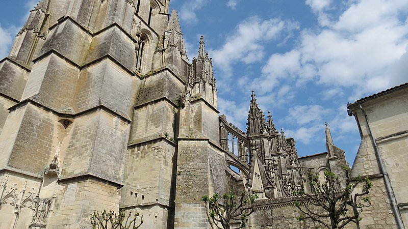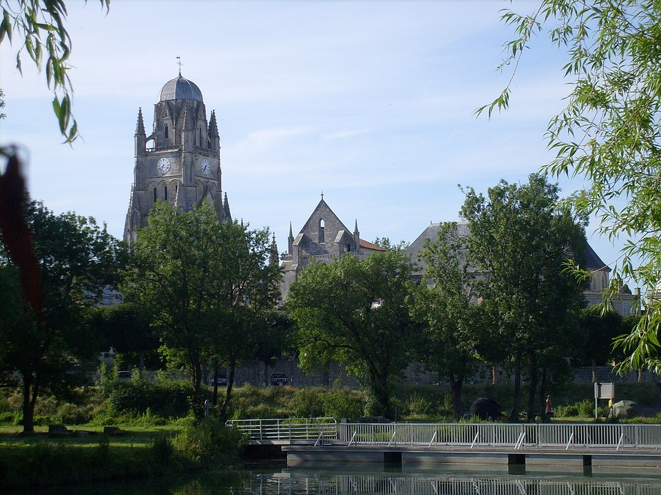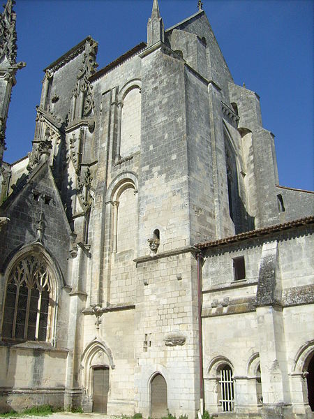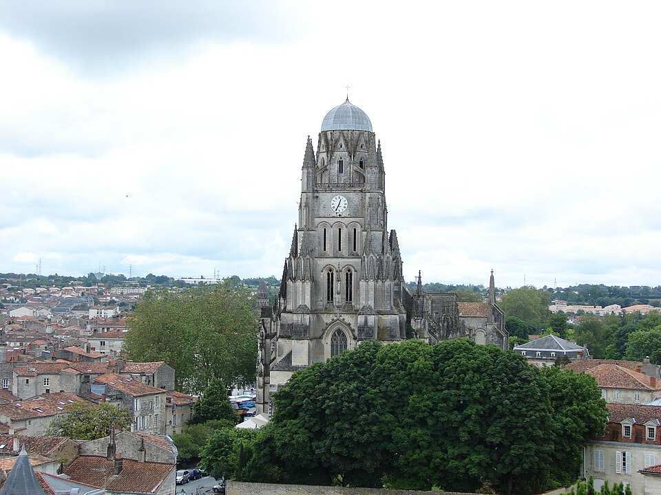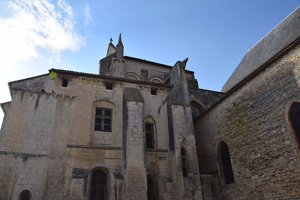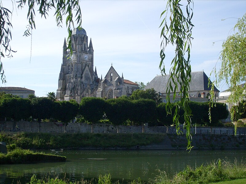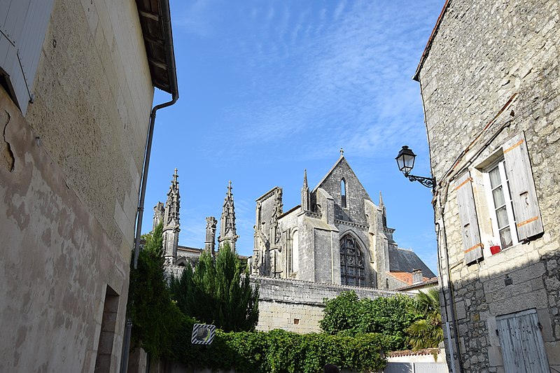 L'église Saint-Pierre de Saintes, ancienne cathédrale et aujourd'hui cocathédrale, est l'un des principaux édifices religieux de la ville. Classée monument historique depuis 1862, elle est accompagnée d'un cloître canonial dont les galeries sud et ouest subsistent et qui a été classé en 1937. La cathédrale actuelle succède à un sanctuaire paléochrétien élevé sous l'épiscopat de Palladius, incendié au XIe siècle. Au début du XIIe siècle, l'évêque Pierre de Confolens entreprit une reconstruction dont le croisillon sud, avec coupole sur pendentifs et arcades en plein cintre extérieures, reste le principal témoignage. Au XIIIe siècle, on adjoignit le cloître canonial et le logis des chanoines. À la fin du Moyen Âge, la cathédrale romane, très délabrée, fut remplacée par un édifice de style gothique flamboyant, dont la construction se poursuivait lors de la visite royale de 1472. La nouvelle église s'élevait sur trois niveaux avec un triforium séparant arcades et fenêtres hautes ; la trace d'une toiture haute est encore visible à l'arrière de la tour. Presque achevée, hormis le clocher, elle fut gravement endommagée pendant les guerres de Religion : en 1568 le portail et plusieurs chapelles rayonnantes furent mutilés, le mobilier pillé et la nef s'effondra après que l'on eut sapé ses piliers. La nef fut reconstruite à partir de 1585 mais, par manque de moyens, ne retrouva qu'environ les deux tiers de sa hauteur initiale ; les voûtes ogivales n'y furent pas remontées et des arcs-boutants donnent aujourd'hui sur le vide. Une campagne de reconstruction au XVIIe siècle permit de rebâtir le chœur, couvert d'une voûte lambrissée en forme de coque de navire renversée, dégagée lors de restaurations dans les années 1970. Son dernier évêque avant la suppression du diocèse en 1802, Pierre-Louis de la Rochefoucauld, fut arrêté en 1791 et figura parmi les victimes des massacres de Septembre en 1792. En 1852 un bref pontifical rendit à l'édifice le titre de cathédrale au sein du diocèse rebaptisé La Rochelle et Saintes, et elle obtint le titre de basilique mineure en 1871. Le dôme du clocher fut endommagé par un incendie lors de travaux en 1965. Après une fermeture pour travaux en 2012, la cathédrale rouvrit au public en octobre 2013.