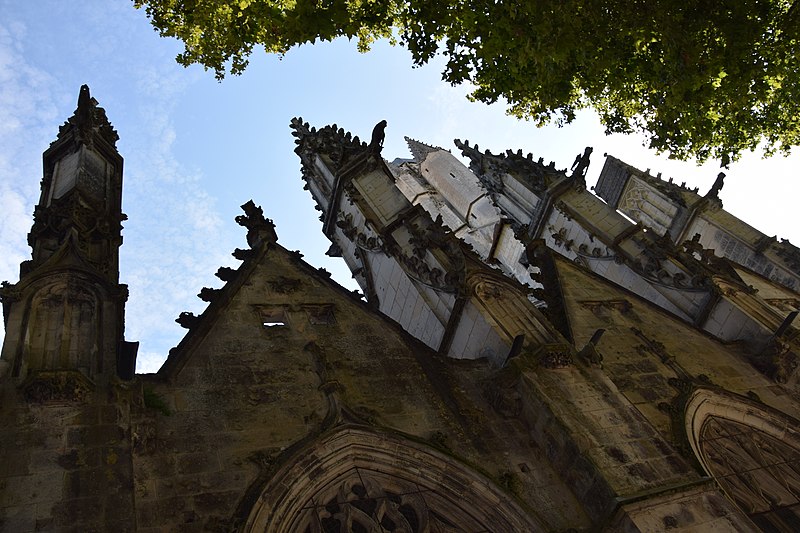 La nef, composée de quatre travées et bordée de bas-côtés cantonnés de chapelles latérales voûtées en six compartiments, a été reconstruite aux deux tiers de sa hauteur et présente depuis 1926 une charpente apparente ; de larges baies à remplage flamboyant rappellent l'architecture du XVe siècle. Les grandes orgues, installées sur une tribune en 1626 par Jehan Ourry et remaniées au XVIIIe siècle, possèdent un buffet décoré de motifs rocaille et d'une statue du roi David ; le buffet et l'instrument sont classés monuments historiques. Le transept présente deux bras couverts de coupoles sur pendentifs : le croisillon sud conserve essentiellement des éléments du XIIe siècle et constitue le principal vestige de la cathédrale romane, tandis que le croisillon nord fut largement reconstruit aux XIVe et XVIe siècles. Le transept nord est actuellement dédié au Sacré-Cœur ; le transept sud, fermé au public depuis 2012 pour raisons structurelles, donne accès au cloître et comprend la chapelle Saint-Joseph.