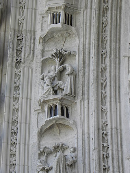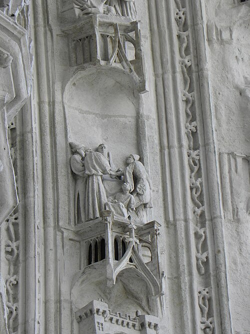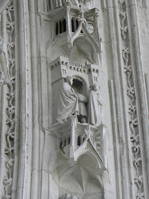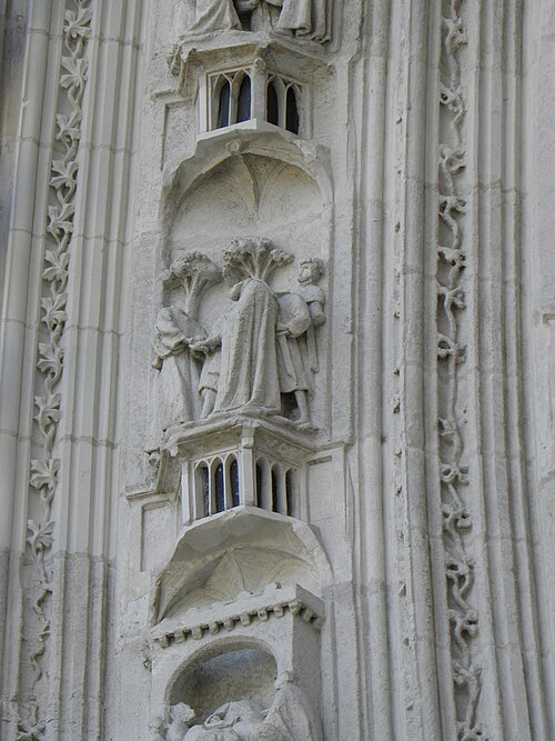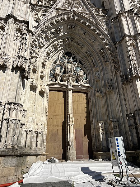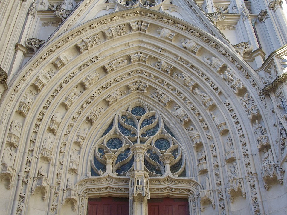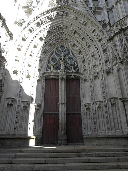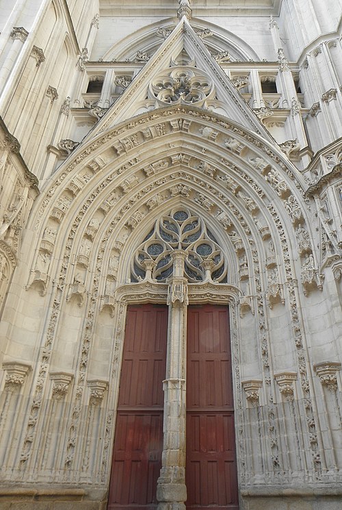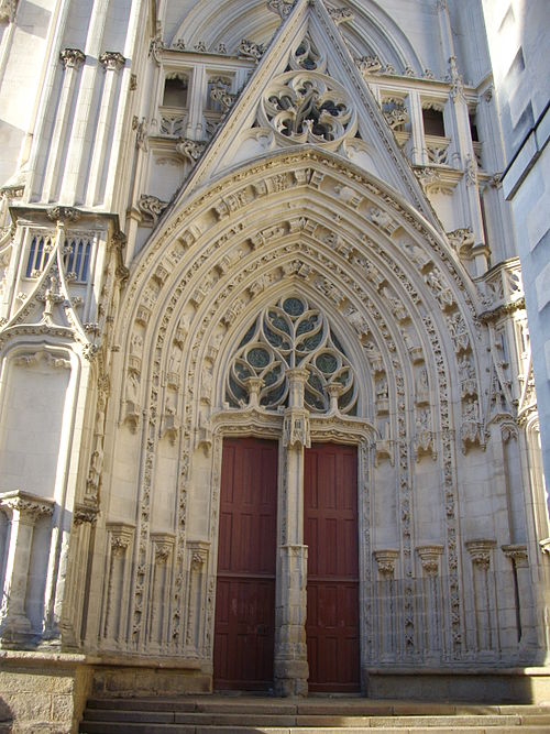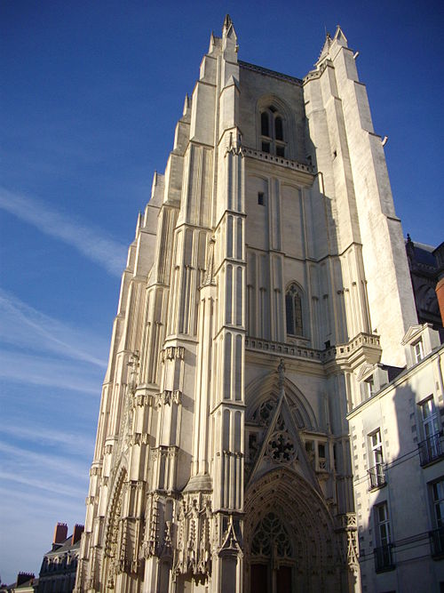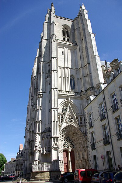 La cathédrale Saint-Pierre-et-Saint-Paul de Nantes, siège du diocèse et située place Saint-Pierre, est classée monument historique depuis 1862 et sa construction s'étend de 1434 à 1891. Le site a accueilli successivement, selon les sources, un temple druidique supposé, une basilique du IVe siècle, une première cathédrale au VIe siècle et une cathédrale romane au XIe siècle, dont l'actuel édifice a progressivement absorbé l'emplacement. La première cathédrale, consacrée par l'évêque Félix, fut richement dotée et plusieurs fois détruite ou pillée lors des raids normands, notamment en 889 puis en 919 ; elle fut reconstruite à la fin du Xe siècle par le duc Guérech, dont la crypte subsiste. Un projet roman ambitieux au XIe siècle ne fut que partiellement réalisé, tandis que le chevet roman fut modifié au XIIe siècle ; de cette période ne subsistent aujourd'hui que la crypte et quelques chapiteaux conservés au musée Dobrée. Le chantier de l'édifice actuel débute au XVe siècle sous l'impulsion du duc Jean V et de l'évêque, avec Guillaume de Dammartin puis Mathurin Rodier comme maîtres d'œuvre, et la première pierre est posée en avril 1434. Le massif occidental, financé par les ducs et soutenu par des indulgences pontificales, progresse au cours du XVe siècle : le portail central est utilisé pour les grands offices à la fin du siècle et le grand vitrail de façade, commandé par la duchesse Anne, est posé en 1498. Les tours sont achevées en 1508, la nef et les collatéraux le sont au début du XVIe siècle, puis le bras sud du transept et les voûtes gothiques sont poursuivis aux XVIIe et XIXe siècles, l'achèvement complet du chœur étant célébré en 1891 après la démolition du vieux chœur roman. Pendant la Révolution la cathédrale sert d'observatoire militaire, d'arsenal et d'écurie ; elle échappe finalement à la destruction grâce à l'intervention d'experts, puis subit en 1800 des dommages causés par l'explosion d'une poudrière. Au XVIIe siècle les aménagements intérieurs se développent avec la construction de l'orgue et de sa tribune, l'élévation du jubé et la décoration du chœur et de la coupole de la croisée. Des travaux d'entretien et des campagnes de voûtement interviennent aux XVIIe et XIXe siècles, tandis que la démolition des murailles à l'est de la ville permet l'achèvement des parties tardives de l'édifice. La cathédrale a été touchée par des bombardements en 1944 qui endommagèrent l'abside et trois chapelles ; les réparations étaient presque achevées lorsqu'un incendie accidentel ravagea la charpente le 28 janvier 1972. Après 1972 une importante restauration remplaça la charpente en bois par une structure en béton et permit la réouverture du chœur en 1975 ; le nouveau chœur, entièrement rénové par les architectes Jean‑Marie Duthilleul et Benoît Ferré, a été inauguré en 2013. Le 18 juillet 2020 un incendie d'origine criminelle détruisit le grand orgue du XVIIe siècle, le grand vitrail ouest de 1498 et divers éléments mobiliers ; les dégâts furent estimés à plus de 40 millions d'euros et l'enquête aboutit à la condamnation de l'auteur en 2023. Après plusieurs années de travaux la cathédrale a été rouverte en septembre 2025 ; les restaurations se poursuivent avec une fin de chantier prévue en 2028. L'édifice présente une façade encadrée de deux tours massives et un ensemble décoratif riche, comportant cinq portails sculptés dédiés aux martyrs Donatien et Rogatien, à saint Pierre, au Jugement dernier, à saint Paul et à saint Yves. Parmi les œuvres majeures figurent le tombeau de François II de Bretagne et de Marguerite de Foix, réalisé au début du XVIe siècle par Michel Colombe et Jean Perréal et installé en 1817, considéré comme un chef-d'œuvre de la sculpture française. La cathédrale abrite également le cénotaphe du général de Lamoricière, de nombreux tableaux anciens et modernes, des vitraux contemporains dessinés notamment par Brigitte Simon, Anne Le Chevallier et Jean Le Moal, ainsi que deux cryptes, l'une romane et l'autre du XIXe siècle qui présente des salles retraçant l'histoire du monument. La crypte romane comporte un martyrium entouré d'un déambulatoire et conserve des objets de culte ainsi que la crosse de l'évêque Fournier, classée au titre des objets des monuments historiques. La tour sud renferme une sonnerie de huit cloches et un carillon d'horloge de douze cloches fondues au XIXe siècle, et la cathédrale possède en outre une cloche déposée nommée Donatienne. Les grandes orgues, documentées dès le XVe siècle, furent remaniées aux XVIIe et XVIIIe siècles, restaurées après les dommages de 1944 et inaugurées en 1971 avant d'être à nouveau détruites par l'incendie de 2020 ; l'orgue de chœur, achevé en 1897, a été restauré et sa partie instrumentale classée en 1987. La cathédrale demeure le lieu de grandes cérémonies et d'événements historiques locaux, centre du patrimoine religieux et artistique de Nantes, et depuis le 11 août 2020 le siège épiscopal est occupé par Laurent Percerou.
