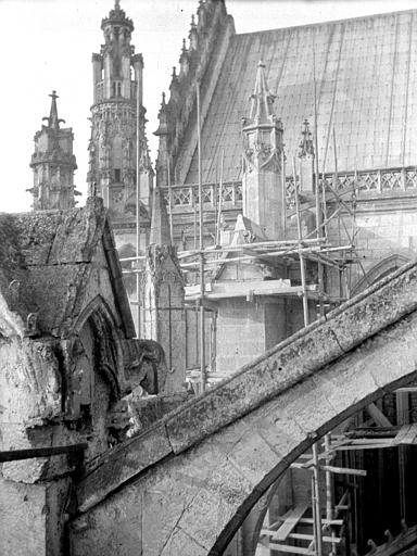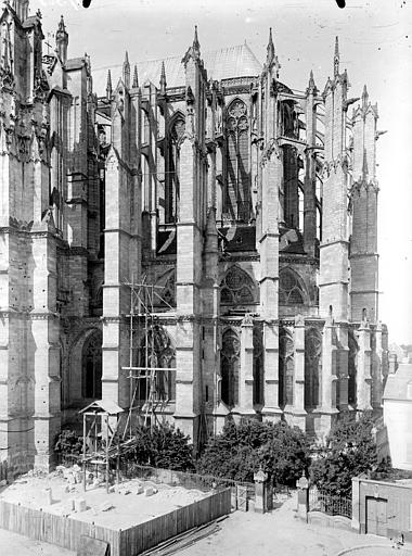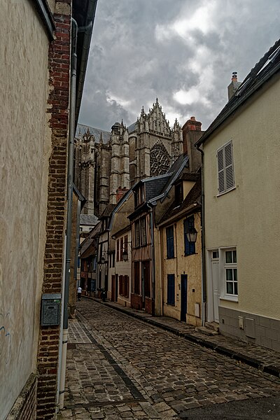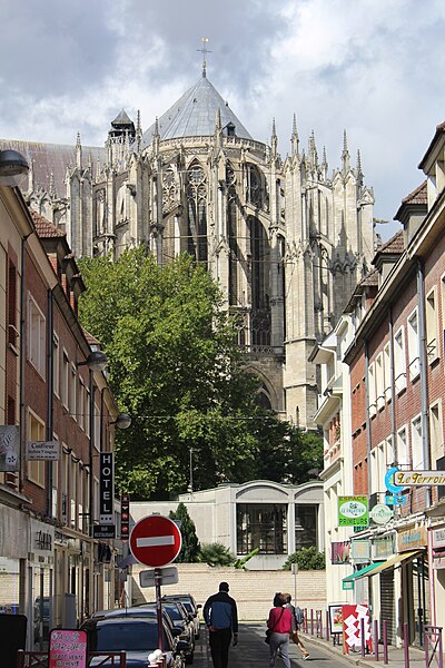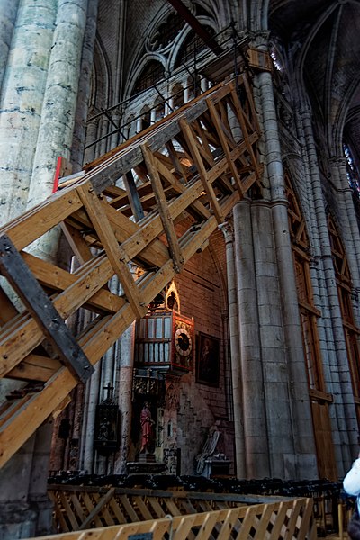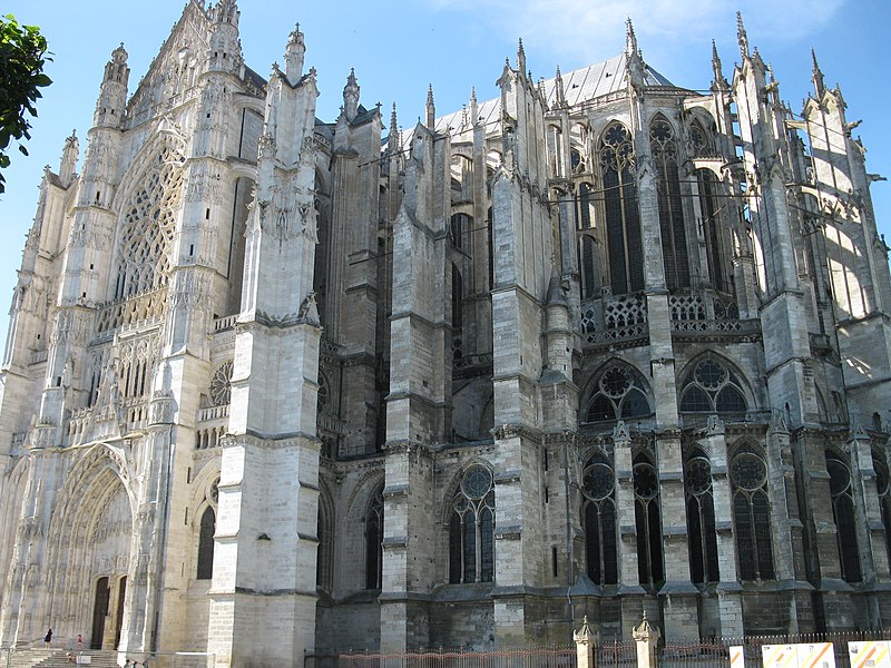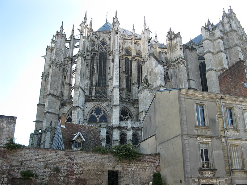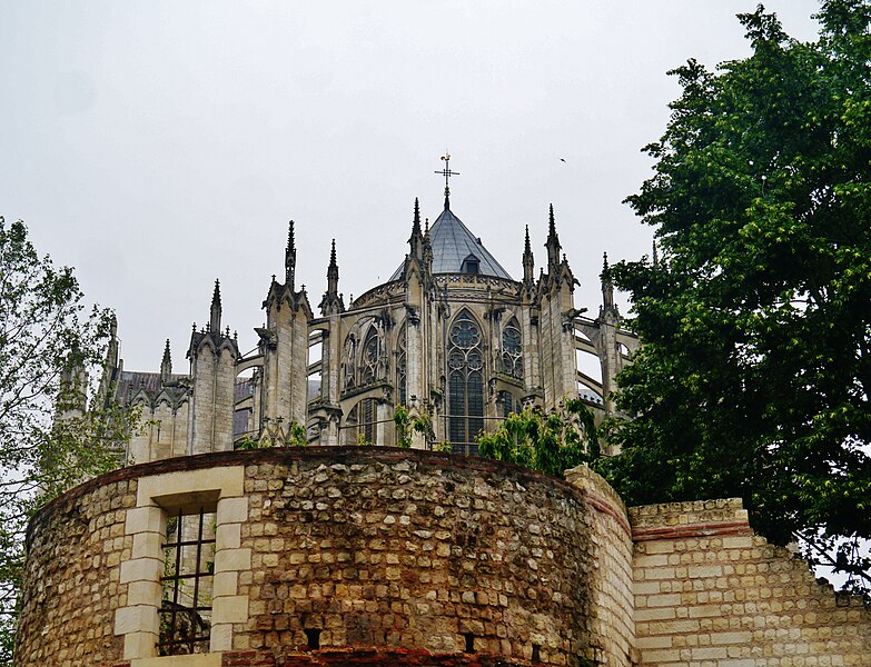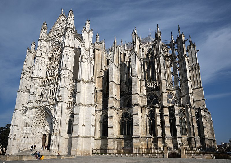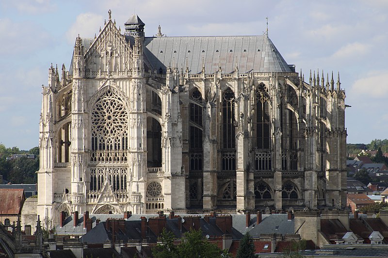La cathédrale Saint‑Pierre de Beauvais, située à Beauvais (Oise, Hauts‑de‑France), est l’église cathédrale du diocèse de Beauvais. Selon la tradition, la communauté chrétienne du Beauvaisis remonte à la fin du IIIe siècle avec l’arrivée de Lucien et de compagnons évangélisateurs ; une chapelle fut ensuite édifiée au début du IVe siècle. De la cathédrale carolingienne qui a précédé l’édifice gothique subsistent quelques travées de la nef dite « Basse‑Œuvre », plus longue autrefois et remaniée au cours des XIe et Xe siècles. En 1225, l’évêque Milon de Nanteuil décida la reconstruction de la cathédrale : les travaux commencèrent par la partie orientale du transept, puis, après une interruption liée à des conflits politiques, on éleva la couronne de chapelles et le collatéral intérieur, puis les parties hautes du vaisseau central. La première messe dans le chœur gothique eut lieu en 1272. En novembre 1284 une tempête provoqua l’effondrement partiel des voûtes du chœur ; les réparations et les transformations des travées durèrent et furent poursuivies jusqu’au XIVe siècle, avec l’intervention d’Enguerrand Le Riche en 1338. Après un long arrêt, la reprise des travaux au début du XVIe siècle porta sur le transept, selon les plans de Martin Chambiges, poursuivis par son fils Pierre puis par Michel Lalic après la mort de Martin. Des inscriptions datées sur le transept témoignent de l’avancement des travaux en 1537 et 1550. La tour‑lanterne édifiée à la croisée sous la direction de Jean Vast fut achevée en 1567 et, surmontée d’une flèche en bois, porta la hauteur totale à 153 mètres ; entre 1569 et 1573 la cathédrale fut ainsi la plus haute construction humaine. Le 30 avril 1573 la flèche et plusieurs étages de la tour s’effondrèrent ; les voûtes entourant la croisée furent reconstruites en 1575, 1577 et 1578. En 1600 Martin Candelot entreprit la nef, mais seul le premier élément fut réalisé, laissant la cathédrale inachevée : aujourd’hui seuls le chœur et le transept sont achevés. Le chœur détient la hauteur sous voûte la plus élevée au monde pour un édifice gothique, atteignant 48,50 mètres. La Révolution entraîna la mutilation de sculptures, la perte d’une partie du mobilier et la dispersion du trésor ; l’édifice fut un temps transformé en temple de la Raison. Au XIXe siècle la cathédrale fut classée parmi les monuments historiques et fit l’objet de campagnes de restauration, parfois contestées, conduites notamment par Daniel Ramée, Aymar Verdier et plus tard par Joseph‑Auguste Émile Vaudremer, avec des avis et interventions de personnages comme Prosper Mérimée et Eugène Viollet‑le‑Duc. Pendant la Seconde Guerre mondiale, la sacristie fut détruite et des vitraux et éléments de l’horloge furent endommagés malgré le démontage préalable de nombreuses verrières. Des interventions au XXe siècle, notamment le retrait de tirants métalliques dans les années 1960, provoquèrent des désordres structurels ; dans les années 1990 l’intérieur des bras du transept fut consolidé par l’installation de poutres et d’une armature en bois. Au XXIe siècle les tirants métalliques médiévaux ont peu à peu été remis en place, des échafaudages protègent l’édifice et de nombreux travaux de restauration sont menés en continu. Des chutes de pierre en 2006 ont nécessité des purges urgentes, la couverture en plomb a été restaurée à partir de 2010, un grand échafaudage a été dressé au chevet en 2016 pour restaurer un pinacle, et, après la pose de capteurs en 2014 pour contrôler la stabilité, une nouvelle phase de travaux portant sur la toiture et la dépose des étais a commencé en 2022 et doit se poursuivre jusqu’en 2026. Malgré sa fragilité face aux vents et aux tempêtes, la cathédrale repose sur des fondations parfois profondes de plus de dix mètres établies sur un substrat rocheux, ce qui assure son ancrage.