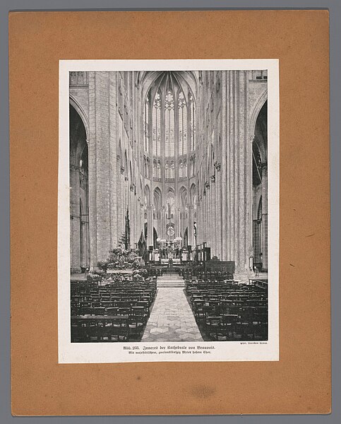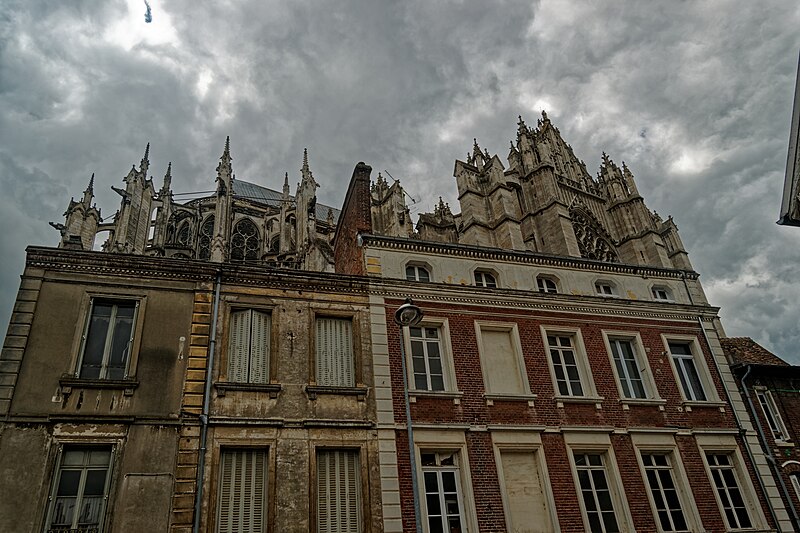 La cathédrale Saint‑Pierre de Beauvais, située à Beauvais (Oise, Hauts‑de‑France), est l’église cathédrale du diocèse de Beauvais. Selon la tradition, la communauté chrétienne du Beauvaisis remonte à la fin du IIIe siècle avec l’arrivée de Lucien et de compagnons évangélisateurs ; une chapelle fut ensuite édifiée au début du IVe siècle. De la cathédrale carolingienne qui a précédé l’édifice gothique subsistent quelques travées de la nef dite « Basse‑Œuvre », plus longue autrefois et remaniée au cours des XIe et Xe siècles. En 1225, l’évêque Milon de Nanteuil décida la reconstruction de la cathédrale : les travaux commencèrent par la partie orientale du transept, puis, après une interruption liée à des conflits politiques, on éleva la couronne de chapelles et le collatéral intérieur, puis les parties hautes du vaisseau central. La première messe dans le chœur gothique eut lieu en 1272. En novembre 1284 une tempête provoqua l’effondrement partiel des voûtes du chœur ; les réparations et les transformations des travées durèrent et furent poursuivies jusqu’au XIVe siècle, avec l’intervention d’Enguerrand Le Riche en 1338. Après un long arrêt, la reprise des travaux au début du XVIe siècle porta sur le transept, selon les plans de Martin Chambiges, poursuivis par son fils Pierre puis par Michel Lalic après la mort de Martin. Des inscriptions datées sur le transept témoignent de l’avancement des travaux en 1537 et 1550. La tour‑lanterne édifiée à la croisée sous la direction de Jean Vast fut achevée en 1567 et, surmontée d’une flèche en bois, porta la hauteur totale à 153 mètres ; entre 1569 et 1573 la cathédrale fut ainsi la plus haute construction humaine. Le 30 avril 1573 la flèche et plusieurs étages de la tour s’effondrèrent ; les voûtes entourant la croisée furent reconstruites en 1575, 1577 et 1578. En 1600 Martin Candelot entreprit la nef, mais seul le premier élément fut réalisé, laissant la cathédrale inachevée : aujourd’hui seuls le chœur et le transept sont achevés. Le chœur détient la hauteur sous voûte la plus élevée au monde pour un édifice gothique, atteignant 48,50 mètres. La Révolution entraîna la mutilation de sculptures, la perte d’une partie du mobilier et la dispersion du trésor ; l’édifice fut un temps transformé en temple de la Raison. Au XIXe siècle la cathédrale fut classée parmi les monuments historiques et fit l’objet de campagnes de restauration, parfois contestées, conduites notamment par Daniel Ramée, Aymar Verdier et plus tard par Joseph‑Auguste Émile Vaudremer, avec des avis et interventions de personnages comme Prosper Mérimée et Eugène Viollet‑le‑Duc. Pendant la Seconde Guerre mondiale, la sacristie fut détruite et des vitraux et éléments de l’horloge furent endommagés malgré le démontage préalable de nombreuses verrières. Des interventions au XXe siècle, notamment le retrait de tirants métalliques dans les années 1960, provoquèrent des désordres structurels ; dans les années 1990 l’intérieur des bras du transept fut consolidé par l’installation de poutres et d’une armature en bois. Au XXIe siècle les tirants métalliques médiévaux ont peu à peu été remis en place, des échafaudages protègent l’édifice et de nombreux travaux de restauration sont menés en continu. Des chutes de pierre en 2006 ont nécessité des purges urgentes, la couverture en plomb a été restaurée à partir de 2010, un grand échafaudage a été dressé au chevet en 2016 pour restaurer un pinacle, et, après la pose de capteurs en 2014 pour contrôler la stabilité, une nouvelle phase de travaux portant sur la toiture et la dépose des étais a commencé en 2022 et doit se poursuivre jusqu’en 2026. Malgré sa fragilité face aux vents et aux tempêtes, la cathédrale repose sur des fondations parfois profondes de plus de dix mètres établies sur un substrat rocheux, ce qui assure son ancrage.