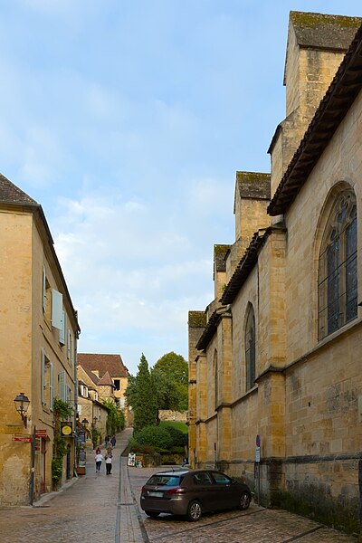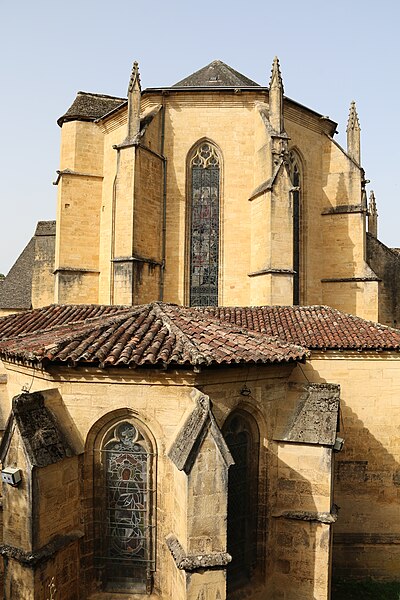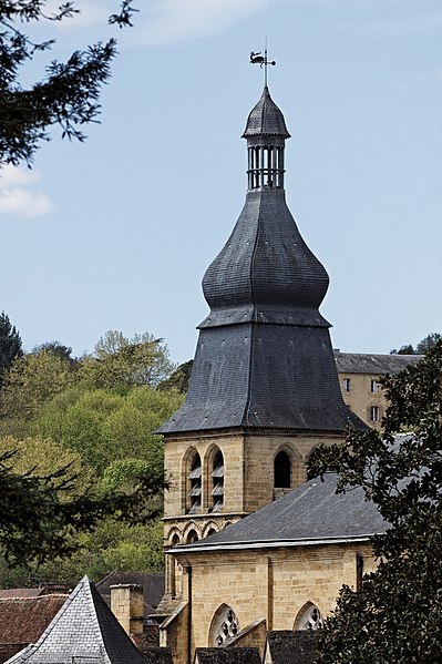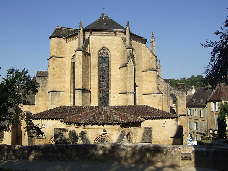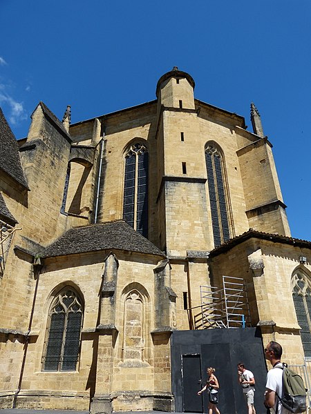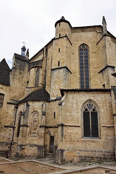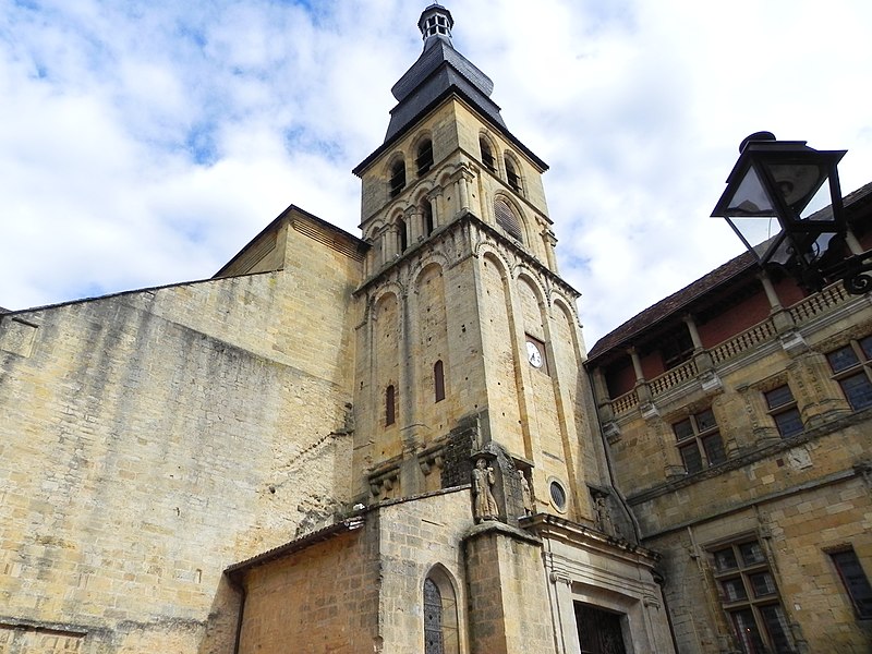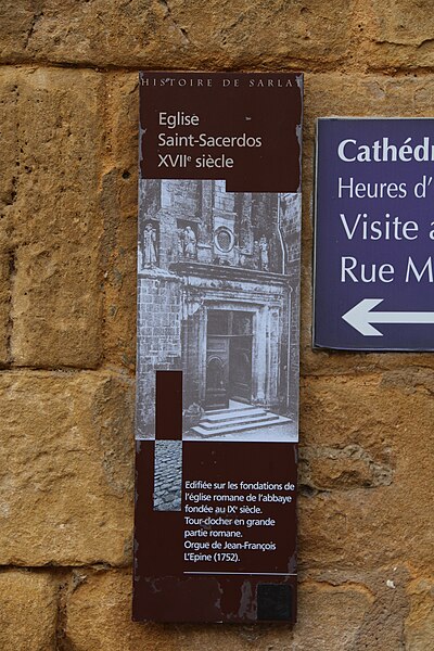 L'ancienne cathédrale Saint-Sacerdos, située à Sarlat-la-Canéda en Dordogne, est co-cathédrale du diocèse de Périgueux et Sarlat et a été classée monument historique en 1840. Le sanctuaire est dédié à saint Sacerdos de Limoges; les reliques qui y furent autrefois déposées ont disparu lors des guerres de Religion. Selon la tradition, des religieux fuyant la tyrannie du duc Waïfre d'Aquitaine se seraient retirés dans la vallée où se trouve la ville actuelle et Pépin le Bref leur fit bâtir un monastère et doter celui-ci de terres, jetant alors les fondations de l'église abbatiale. À l'est se situaient des cloîtres aujourd'hui disparus. Le clocher, la partie la plus ancienne de l'édifice, présente un soubassement carré et s'élève en s'amoindrissant ; ses fenêtres en plein cintre sont accompagnées de colonnes aux chapiteaux d'inspiration corinthienne et des niches destinées à recevoir des statues encadrent l'entrée principale. La porte a été reconstruite au XVIIe siècle et l'abside est postérieure au clocher. Au fil des siècles l'église abbatiale fut agrandie : à partir du XIVe siècle on entreprit un nouvel édifice en commençant par l'abside, la nef fut engagée au XVe siècle et vint absorber les anciens cloîtres, mais les travaux furent interrompus pendant une longue période. L'abbaye de Sarlat, dont l'origine remonte selon Jean Maubourguet à la première moitié du IXe siècle sous l'impulsion de Pépin, fit partie des grandes abbayes du Périgord et, située à l'écart des grands cours d'eau, échappa aux raids vikings. Une charte attribuée à Charles le Gros en 886 fait état de réparations et d'une protection accordée à l'église abbatiale, tandis qu'une autre charte donnant l'abbaye à Odon de Cluny est aujourd'hui considérée comme apocryphe ; les premiers actes authentifiés datent de 954 et 1094. Le pape Léon VII aurait, selon les sources, accordé un bref de privilège défendant toute usurpation de l'abbaye sans élection légitime des moines. La date précise de la translation des reliques de saint Sacerdos à Sarlat reste incertaine, certains historiens la plaçant entre le milieu du Xe et le milieu du Xe siècle, et la translation de saint Pardoux intervint ensuite avant d'être emportée hors de la ville. Placée dès le milieu du XIIe siècle sous protection pontificale, l'abbaye fut reconstruite entre 1125 et 1160 ; du bâtiment roman subsistent le clocher-porche, la chapelle Saint-Benoît, la façade de la salle capitulaire et la lanterne des morts, témoins de son apogée à la fin du XIIe siècle. Le diocèse de Sarlat fut créé en 1317 et l'ancienne abbatiale devint cathédrale ; la communauté monastique fut transformée en chapitre réduit à cinquante chanoines, puis sécularisée en 1561, ce qui, ajouté aux épidémies et aux guerres, fragilisa durablement les finances de la cathédrale jusqu'au XVIIe siècle. Le temporel du chapitre fut ensuite consolidé et le diocèse fut supprimé au moment du concordat de 1801, son territoire étant intégré au diocèse de Périgueux. Sur le plan architectural, l'édifice, tout en réutilisant des éléments romans, affiche un style gothique d'inspiration septentrionale avec la présence de deux vaisseaux collatéraux ; quelques éléments sculptés d'origine subsistent à l'intérieur. Une reconstruction engagée en 1504 sous l'impulsion de l'évêque Armand de Gontaud-Biron et confiée au maître d'œuvre Pierre Esclache, assisté du maître-maçon Blaise Bernard, permit d'élever un nouveau chœur, qui fut reconstruit jusqu'en 1519, mais l'insuffisance des financements laissa pendant près d'un siècle et demi un vide entre le chœur et le reste de l'édifice. Les travaux reprirent en 1682 et la voûte du chœur fut reprise au cours de la décennie suivante grâce au soutien de François III de Salignac de la Mothe-Fénelon ; les voûtes gothiques actuelles datent de cette reprise au XVIIe siècle. Après la destruction de la flèche par la foudre, la toiture du clocher fut transformée après 1721 pour prendre l'aspect en bulbe qu'on lui connaît, et une nouvelle façade ainsi que l'installation de l'orgue achevèrent la restauration au milieu du XVIIIe siècle. L'orgue, placé sur une tribune en nid d'hirondelle au-dessus du portail principal, est l'œuvre de Jean-François L'Épine (1752) ; la partie instrumentale est classée au titre d'objet depuis 1952 et le buffet depuis 1976.