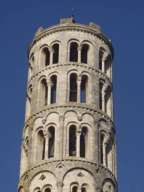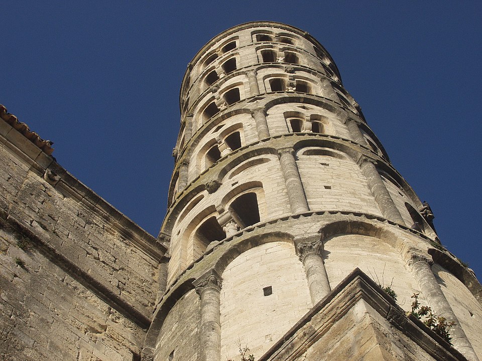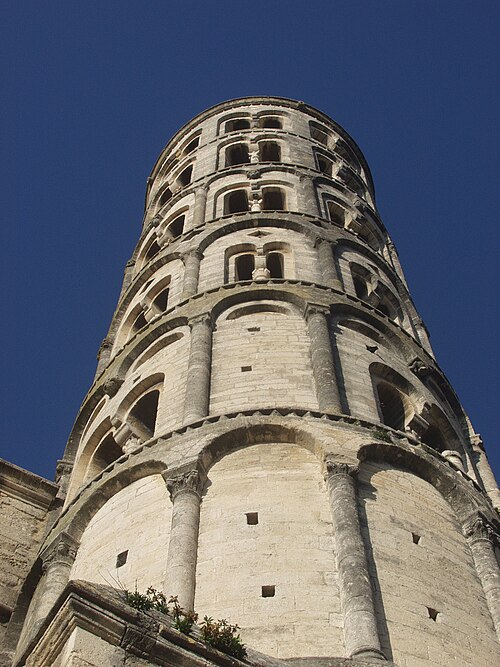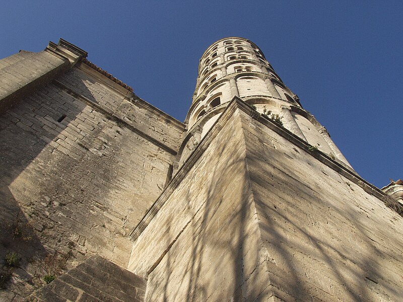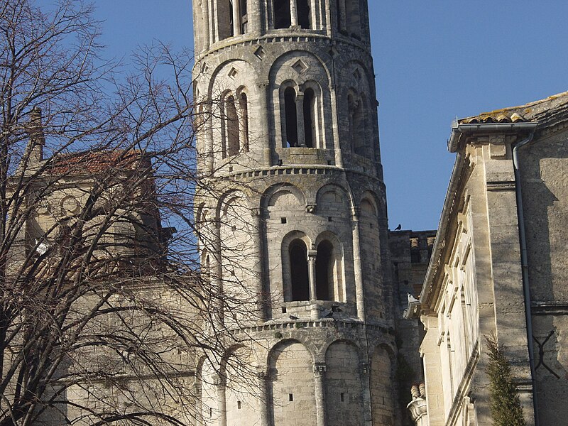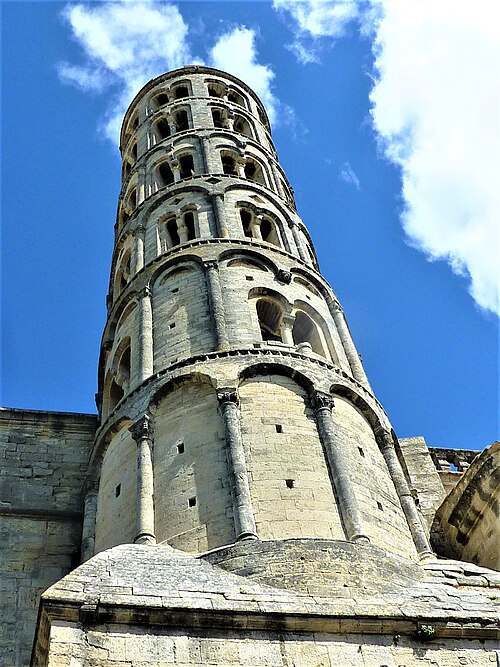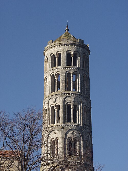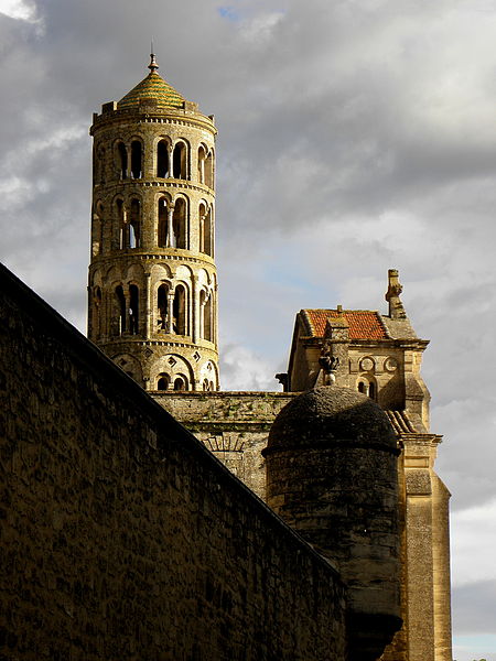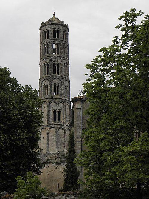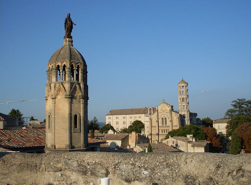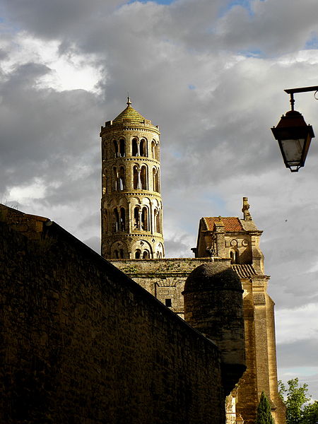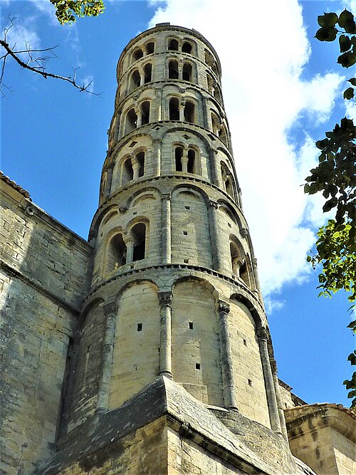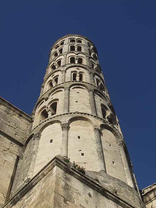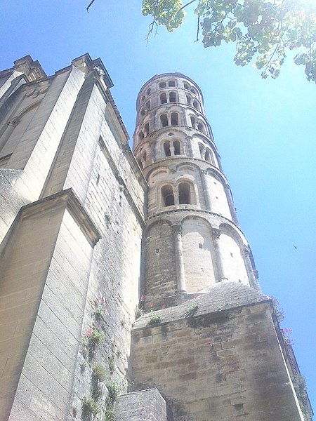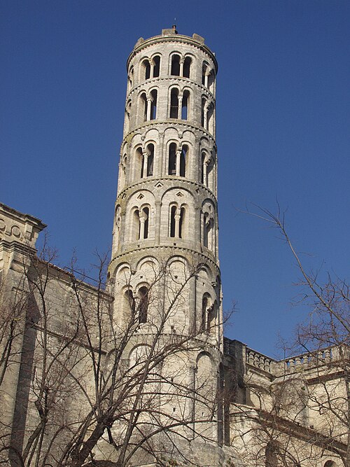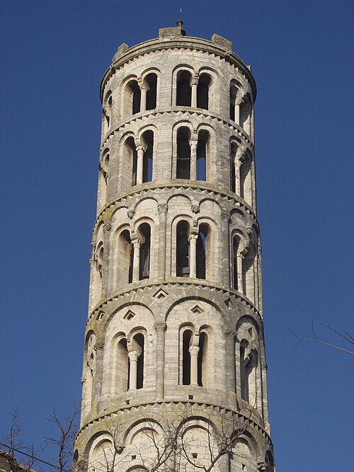 La cathédrale Saint-Théodorit d'Uzès, ancienne cathédrale située dans le Gard, a été édifiée à partir de 1090 sur l'emplacement d'un temple romain et fut le siège de l'ancien diocèse d'Uzès jusqu'à la Révolution. Le premier bâtiment roman portait l'influence de l'ordre de Cluny ; il fut partiellement démoli lors de la croisade des Albigeois en 1177, puis reconstruit. Le chapitre, appartenant à l'ordre des chanoines réguliers de saint Augustin, adopta la religion protestante en 1546 puis, en 1633, revint au catholicisme et se soumit à la règle des chanoines réguliers de la Congrégation de France. Au cours des guerres de religion la cathédrale médiévale fut gravement atteinte : elle subit des dommages dès le 13 mai 1563 et fut finalement détruite en 1621, seul le campanile, la tour Fenestrelle, subsistant mais amputé de deux étages. La reconstruction eut lieu principalement au XVIIe siècle, avec des campagnes menées de 1642 à 1663 ; le gros œuvre du chevet fut achevé en 1649 et l'édifice fut rouvert au culte en 1660. Les travaux d'ameublement et de décoration intérieure furent réglés par des contrats passés entre 1678 et 1680. À l'ouest, l'ancienne maçonnerie a été incorporée lors de la construction du nouveau clocher nord en 1649, et la partie du XVIIe siècle s'articule à l'ouest avec des bâtiments antérieurs, dont la tour Fenestrelle qui flanque l'angle sud‑ouest. La façade néo‑romane, plaquée contre l'ancien mur‑pignon, a été posée à la fin du XIXe siècle en 1873. L'édifice présente une large nef centrale bordée de chapelles latérales aménagées entre les contreforts et surmontées de tribunes qui sont interrompues à la seconde travée en regard du sanctuaire pour former un transept ; la partie semi‑circulaire du sanctuaire est inscrite dans le plan rectangulaire de l'édifice et s'accompagne d'une travée correspondant aux chapelles latérales de part et d'autre. L'intérieur, sobre, relève d'un style classique lié à la Contre‑Réforme et est voûté sur croisées d'ogives culminant à 18 mètres ; il se signale par de hautes tribunes pourvues de balcons en fer forgé et par des galeries aménagées après la révocation de l'édit de Nantes en 1685 pour y loger, durant les offices, les « nouveaux convertis », avec des grilles en fer peint en gris et doré. Dans les chapelles entourant le chœur subsistent des traces de peintures aux plafonds et sur les murs ; une grande partie du mobilier a disparu pendant la Révolution, à l'exception de l'orgue dont le double buffet peint et doré du XVIIe siècle conserve ses volets originaux datés de 1685. La façade porte des statues de saint Pierre, à gauche avec les clefs, et de saint Paul, à droite ; le tympan représente la Vierge à l'Enfant entourée des saints Firmin et Ferréol. Le chœur réunit une table de communion en marbre datée de 1891, portant les armes du pape, de l'évêque, du chapitre et de la cathédrale, don de Paul Foussat, un maître‑autel en marbre de 1827 inspiré de celui de Saint‑Pierre d'Avignon, un sol refait en 1936 et un tableau monumental, la Descente de Croix de Lair (1827), offert par le gouvernement et surmonté du triangle trinitaire et du nom de Dieu en hébreu, dont la décoration de la Restauration masque la fenêtre centrale. Les grandes orgues sont remarquables par leur double buffet du XVIIe siècle peint et doré et par une partie instrumentale restaurée, considérée comme une réussite des Monuments historiques. La tour Fenestrelle, clocher roman de 37 mètres datant du XIIe siècle et fortement restaurée au XVIIe siècle, est un vestige de l'ancienne cathédrale assimilable aux campaniles lombards ; unique clocher rond en France, elle doit son nom aux nombreuses baies géminées qui rythment ses étages et sa toiture est couverte de tuiles vernissées jaunes et vertes, faisant d'elle, avec le palais ducal, un des symboles d'Uzès. La cathédrale possède une sonnerie de quatre cloches de volée : la plus lourde (Sol3) pèse 789 kg et a été fondue en 1810 ; deux cloches fondues par Paccard en 1932 pèsent 427 kg (Si b3) et 192 kg (Do4) ; une cloche de 110 kg (Mi4), fondue en 1600, se trouve dans un clocheton au‑dessus de la façade ouest.