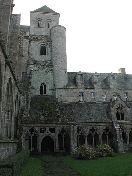 Fondé, selon la tradition, au VIe siècle par le moine gallois Tugdual, le monastère de Landreguer devint rapidement siège épiscopal et connut plusieurs reconstructions après des destructions, notamment causées par les Normands. De l'édifice roman remontant au XIIe siècle subsiste aujourd'hui la tour du bras nord du transept, dite tour Hasting, vestige illustrant l'ampleur de la cathédrale romane antérieure. La reconstruction gothique s'étend sur plusieurs campagnes du XIIIe au XVe siècle. Les travaux commencèrent depuis la façade occidentale : le porche ouest, achevé vers 1356, marque l'une des premières grandes étapes, suivie de la construction de la nef aux XVe–XIVe siècles et du chœur à la fin du XIVe et au début du XVe siècle. Sous l'épiscopat de Richard Du Perrier les travaux reprirent en 1339 pour achever notamment les parties hautes de la nef et le porche sud dit « du peuple ». Le chantier fut interrompu vers 1345 puis relancé dans la seconde moitié du XIVe siècle. Le transept et le chœur furent principalement réalisés dans le dernier quart du XIVe siècle et autour de 1400, comme l'attestent les armes de l'évêque Pierre Morel sur une clé de voûte. La tour des cloches, élevée vers 1430 à l'extrémité du bras sud et pourvue de son propre porche, renforce l'importance de la façade méridionale ; à la même époque fut édifiée la chapelle funéraire du duc Jean V, au croisement du collatéral nord et du transept. La construction du cloître, commencée sous Jean de Ploeuc et achevée sous Christophe du Chastel, date de la seconde moitié du XVe siècle et marque l'achèvement des campagnes gothiques. La flèche de la tour des cloches, non réalisée au Moyen Âge, fut ajoutée en 1785 et s'inspire du répertoire local trégorrois. Sous la Révolution, le mobilier et plusieurs tombeaux, dont ceux de saint Yves et du duc Jean V, furent détruits ; les reliques avaient toutefois été mises en sûreté l'année précédente. Une campagne de restauration de l'édifice débuta en 1841 et se poursuivit jusqu'à la fin du XIXe siècle, visant notamment le couronnement de la nef et du chœur laissés inachevés depuis le Moyen Âge. Le lambris de couvrement du cloître fut restitué lors de travaux en 1910. L'édifice figura dès 1840 parmi les monuments historiques protégés et fut élevé au rang de basilique mineure en 1947. Les siècles suivants ont vu des interventions ponctuelles de conservation et de restauration, ainsi que des reprises après dégâts, tout en préservant la juxtaposition des vestiges romans et des phases gothiques successives qui font la singularité du site.
