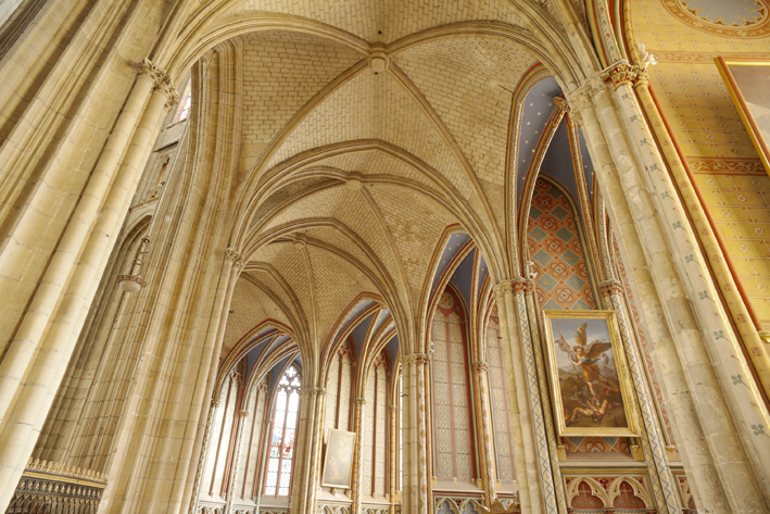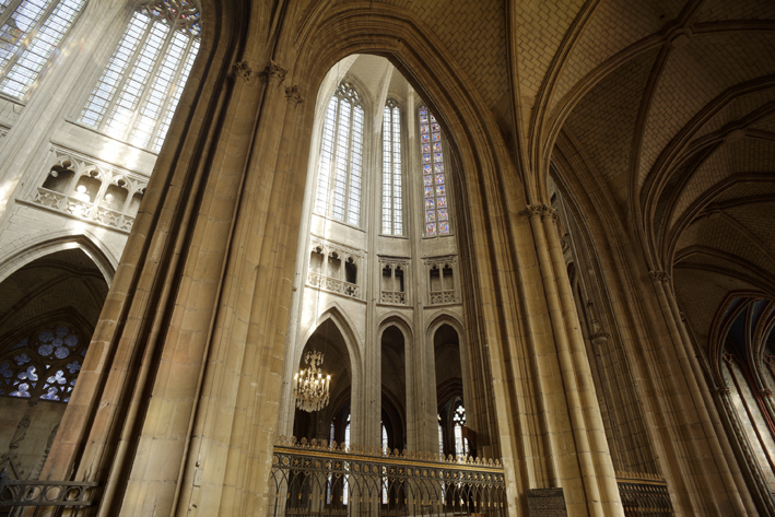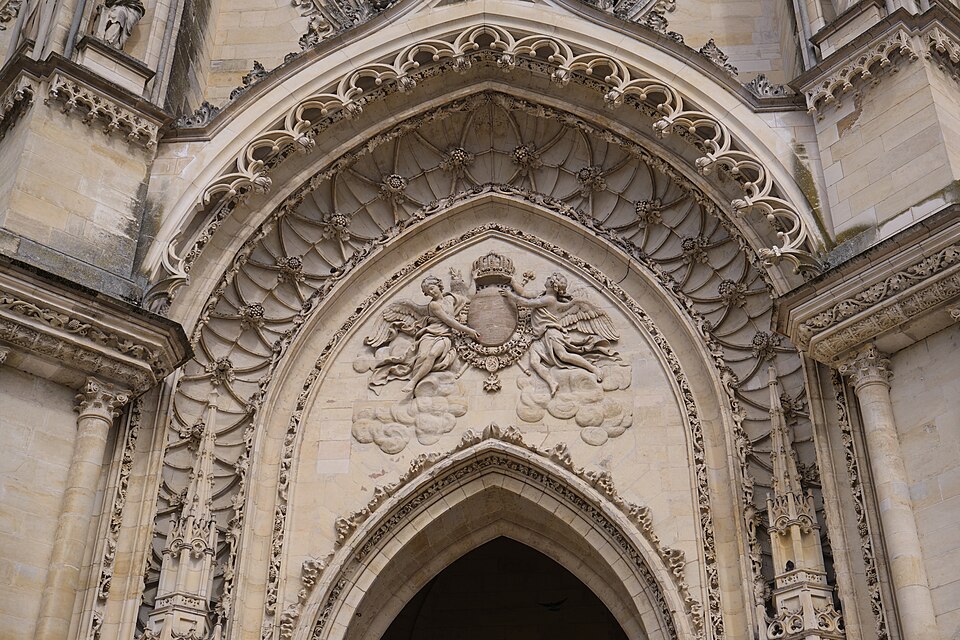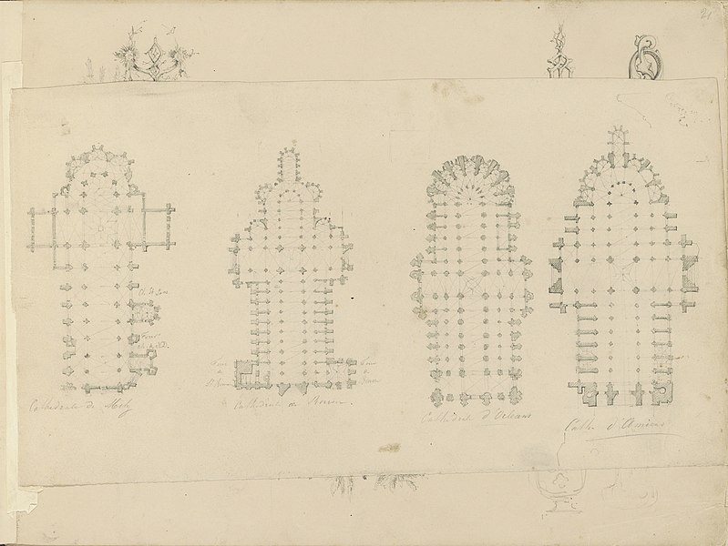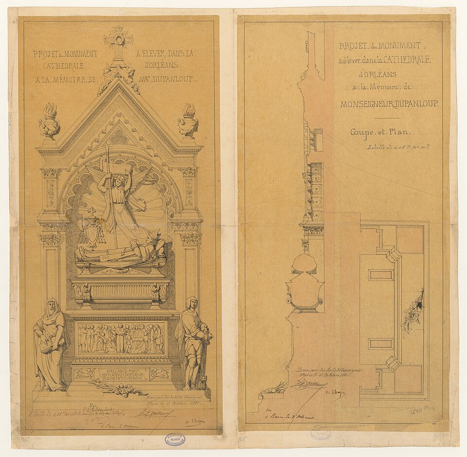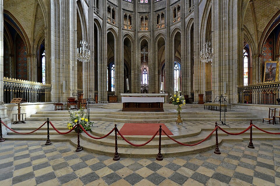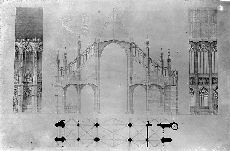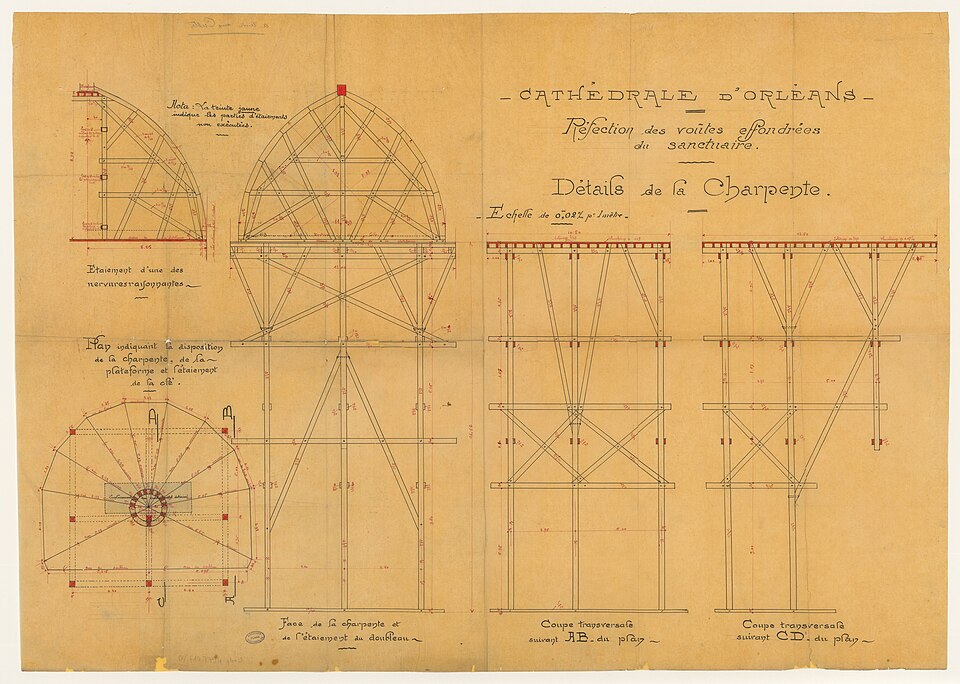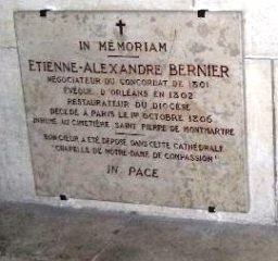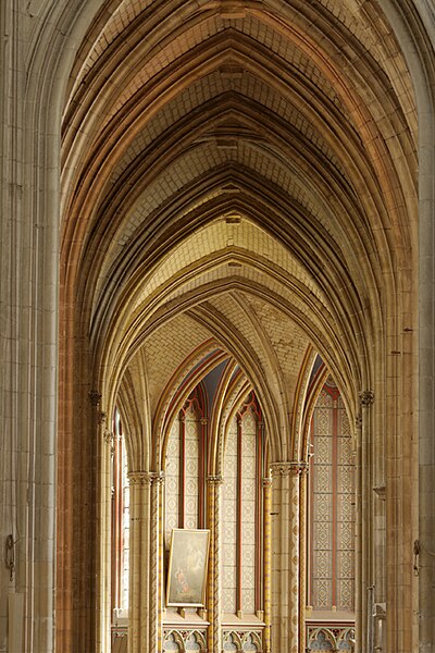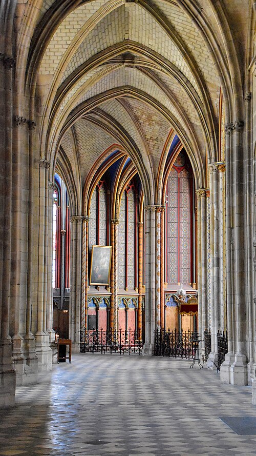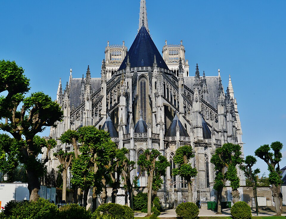 La cathédrale Sainte‑Croix d’Orléans, siège du diocèse et dédiée à la Sainte‑Croix, est un édifice gothique situé dans le Loiret, en région Centre‑Val de Loire ; elle est classée au titre des monuments historiques depuis la liste de 1862 et a été élevée au rang de basilique par le pape Pie IX le 26 janvier 1855. Deux traditions hagiographiques expliquent sa fondation : la Vie de saint Euverte (IXe siècle) fait d’Euverte un sous‑diacre romain choisi miraculeusement pour l’épiscopat à Orléans, qui aurait retrouvé un trésor, reçu des subsides et un fragment de la Vraie Croix et fait édifier une cathédrale consacrée par un prodige divin ; la Grande Passion d’Auxerre (XIe siècle) prétend, plus tardivement, une origine apostolique en attribuant à des missionnaires envoyés par saint Pierre la création de l’Église locale, récit qui relève d’une visée anachronique et de propagande pour le siège métropolitain de Sens. Jusqu’au VIIe siècle, les données sur les constructions et leur emplacement restent incertaines ; le nom du premier évêque connu, Diclopetus, témoigne toutefois de l’existence précoce d’une ecclesia à l’intérieur de l’enceinte urbaine. Des textes médiévaux attribuent à Euverte des travaux sur l’édifice primitif et Grégoire de Tours rapporte la présence du roi Gontran à la messe dans la cathédrale en 585 ; les premières mentions du vocable Sainte‑Croix figurent sur des monnaies du VIIIe siècle. La cathédrale fut le théâtre d’événements historiques : le sacre de Charles le Chauve y est relaté, la ville supporta des incursions vikings et l’édifice aurait été incendié entre 877 et 879, tandis que d’autres cérémonies royales et princières y sont également documentées. Les vestiges archéologiques les plus anciens comprennent des fragments de mosaïque parfois datés du VIIIe siècle, voire attribués au IVe siècle, dont l’inscription partielle renvoie à un texte biblique. Après un incendie signalé en 989, une cathédrale romane reconstruite par l’évêque Arnoul comportait une nef de sept travées, un transept, un chœur avec déambulatoire et chapelles rayonnantes et une croisée marquée par quatre piliers carrés supportant probablement une tour centrale ; une façade harmonique à deux tours fut ajoutée à l’ouest, connue par une abondante iconographie avant sa démolition au XVIIIe siècle. La cathédrale romane a conservé des aménagements tels que le massif du maître‑autel et des restes de mosaïque, mais sa restitution suscite encore des débats sur la configuration des bas‑côtés, du chevet et des tribunes. Au cours du bas Moyen Âge, un vaste chantier gothique débuta à la fin du XIIIe siècle — avec un plan inspiré de Notre‑Dame d’Amiens mais doté de neuf chapelles absidiales — et se poursuivit, entre interruptions et reprises, jusqu’au XVIe siècle ; les travaux furent ralentis par la guerre de Cent Ans et le siège d’Orléans en 1428–1429. Lors des guerres de Religion la cathédrale fut pillée en 1562 et fortement endommagée en mars 1568 lorsque l’explosion des piliers de la croisée entraîna l’effondrement d’une grande partie de l’édifice ; subsistèrent alors, à l’est, la couronne de chapelles rayonnantes et les murs du chœur gothique, au transept des parties muraires et des façades romanes, et à l’ouest quelques travées gothiques et les tours romanes. La reconstruction dite « cathédrale des Bourbons » s’organisa à partir du XVIIe siècle : le chœur et le transept furent relevaillés sous la direction d’architectes comme Étienne Martellange, Jacques‑V. Gabriel et Louis‑François Trouard, et la façade occidentale fut reprise aux XVIIIe–XIXe siècles ; la façade jusqu’à la base des tours fut achevée en 1773, les travaux interrompus par la Révolution, puis repris au XIXe siècle avec une inauguration en 1829 à l’occasion du quatre‑centième anniversaire de la levée du siège. Depuis son achèvement moderne, la cathédrale a subi de nouveaux aléas : le clocher détruit en 1854 fut reconstruit en 1858, les vitraux du chœur dus à Lobin furent posés en 1859, les voûtes du sanctuaire s’effondrèrent dans la nuit du 8 au 9 septembre 1904, et l’édifice subit des dégâts limités lors des bombardements de 1940 et de 1944 ; certaines réparations restent inachevées, l’accès aux tours ayant été interdit depuis 1940, et le bourdon fissuré en 1971 a été refondu et réinstallé en 2012. Les fouilles archéologiques ont confirmé et précisé plusieurs phases : des sondages de la fin du XIXe siècle et des campagnes menées entre 1937 et 1942 par Georges Chenesseau ont mis au jour le chœur roman, le déambulatoire, des tombes, des substructions carolingiennes et des vestiges gallo‑romains, tandis que des sondages de 1903 ont établi l’absence de crypte et ceux de 1940–1942 ont démontré que la nef romane n’avait qu’un seul bas‑côté et que le chevet roman comptait trois chapelles rayonnantes. Jeanne d’Arc est liée indirectement à l’édifice : elle assista à un office vespéral le 2 mai 1429 durant le siège, et la ville commémore chaque année, le 7 mai, une cérémonie johannique sur le parvis, tandis que la rue Jeanne d’Arc, percée au XIXe siècle, débouche sur la façade principale. La cathédrale présente d’importantes dimensions : 143,85 mètres de longueur hors‑œuvre, cinq nefs pour une largeur hors‑œuvre de 50,86 mètres, une hauteur du vaisseau principal de 31,75 mètres, des tours culminant aux alentours de 78 à 82 mètres selon les points mesurés et une flèche centrale qui s’élève à 114 mètres. Le grand orgue, issu d’un échange avec l’abbaye de Saint‑Benoît‑sur‑Loire en 1822, a été remodelé par Louis Callinet, transformé par Cavaillé‑Coll en 1880 puis restauré au début du XXIe siècle ; il compte quatre cl