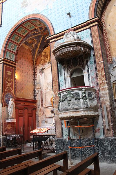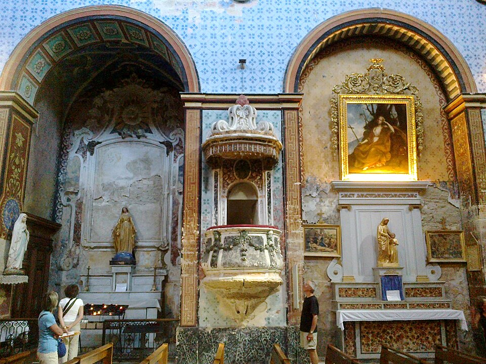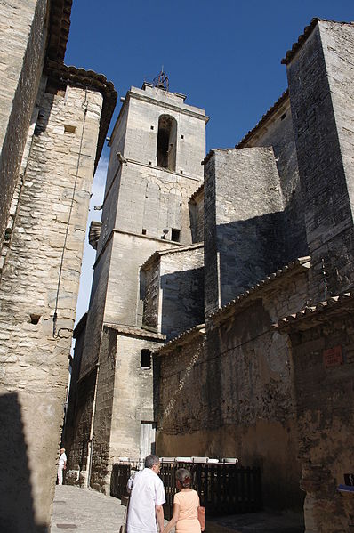 Les caves du Palais Saint‑Firmin constituent un vaste réseau troglodyte situé sous le village, posé sur un piton calcaire culminant à environ 300 mètres d'altitude. Aménagées principalement sous la grande maison dite « Palais Saint‑Firmin », elles comprennent salles troglodytes, escaliers souterrains, citernes et un ancien moulin à huile seigneurial répartis sur sept niveaux et 18 mètres de dénivelé. Ces carrières ont ensuite été revoûtées et aménagées ; l'ensemble a évolué du XIIe au XVIIIe siècle, avec de nombreuses pièces redécouvertes à la fin du XXe siècle. Les caves, redécouvertes fortuitement en 1961 et ouvertes au public depuis 1999, ont fait l'objet de travaux de dégagement poursuivis par le même propriétaire. Selon lui, ce réseau constitue « un condensé de vie Gordienne », témoignage des conditions de vie difficiles et du travail exigeant, avec peu de lumière et peu d'air. Parmi les salles dégagées, une chapelle du XIIe‑XIIIe siècle, extension d'un prieuré roman de l'abbaye bénédictine de Saint‑Chaffrey, atteste que ces lieux n'étaient pas uniquement destinés au stockage. La plus vaste pièce servait au pressurage de l'huile d'olive à l'aide de scourtins ; des bacs, citernes et cuves taillés dans la pierre montrent l'importance de cette activité et constituent un système dit « pressoir à chapelle ». Cet ensemble semble remonter à la fin du XVIe siècle, date de la construction de l'Hôtel Saint‑Firmin. Environ deux cinquièmes des pièces excavées sont actuellement accessibles au public ; d'autres restent inaccessibles pour des raisons de sécurité et d'accès, parmi lesquelles figurent des salles de communication et de stockage ainsi qu'un moulin de type romain daté vers 1450. L'entrée des caves se situe entre l'église du village et le belvédère ; la ruelle descendante, exemple typique d'une calade de village perché provençal, permet d'observer le mur extérieur des jardins du palais et conduit, après quelques marches, à l'accueil. L'hôtel Saint‑Firmin et son ensemble — constructions, terrasses, niveaux souterrains, aménagements troglodytes, substructions et vestiges archéologiques — sont inscrits à l'inventaire des monuments historiques par arrêté du 4 mars 1998. Outre les caves, les jardins et terrasses, la cour à façade Renaissance et l'escalier monumental ont fortement contribué à ce classement.