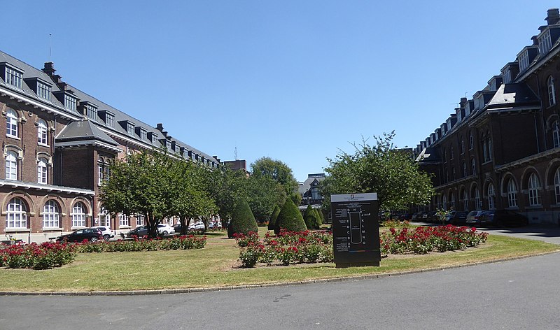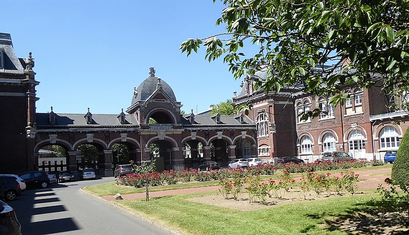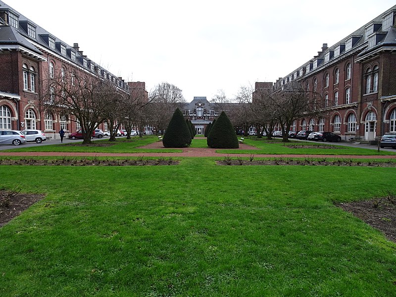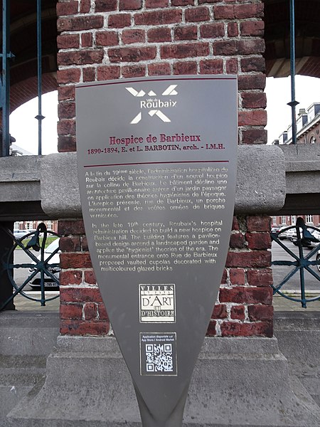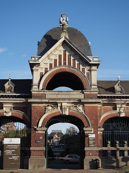 L’hospice Barbieux, aujourd’hui Centre médical Barbieux, est un ensemble de style pavillonnaire conçu par les Barbotin (Emile et Louis, père et fils), lauréats du concours publié en 1880. Édifié entre la pose de la première pierre en 1890 et l’achèvement des travaux en 1894, il s’inscrit sur un terrain de 32 000 m² acquis par les hospices civils de Roubaix en 1868. De plan rectangulaire, le bâtiment s’organise autour d’un vaste jardin central aménagé par le paysagiste Georges Aumont. L’organisation interne repose sur des pavillons reliés par de longs couloirs couverts ; l’entrée monumentale s’inspire de la disposition des coupoles successives du château de Chantilly. Le projet initial prévoyait quatre cours en enfilade avec une chapelle axiale ; il fut finalement réalisé autour d’une seule cour d’honneur close par l’aile des cuisines et flanquée, de chaque côté, d’une succession de trois pavillons reliés au rez-de-chaussée par une galerie. Ces pavillons accueillaient les hommes indigents, l’infirmerie et les orphelins à droite, et les femmes indigentes, l’infirmerie et les orphelines à gauche ; les dortoirs renfermaient 34 lits et la capacité prévue de l’hospice était de 600 lits. Une chapelle provisoire installée au rez-de-chaussée de l’aile gauche fut agrandie en 1906 par Jules Derégnaucourt, qui aménagea également les combles pour y créer des dortoirs entre 1905 et 1907. Les orphelins quittèrent l’établissement en 1906. Au début des années 1950, l’architecte Pierre Neveux mena la principale transformation : il suréleva de deux niveaux le corps de bâtiment bas qui reliait les pavillons des ailes, adoptant pour la construction neuve un parti d’élévation proche de l’original, unifiant ainsi l’ensemble et faisant disparaître l’aspect pavillonnaire. Il rendit le comble continu habitable, augmenta la capacité d’accueil de 600 à 800 lits et divisa les grands dortoirs en chambres pour améliorer le confort des pensionnaires. Les cuisines furent rénovées et transférées en 1962. En 1980 fut construit, à l’arrière de la parcelle sur l’emplacement de l’ancien jardin potager, l’hôpital Victor-Provo, de type Fontenoy dans sa variante de plan en X. Des religieuses de la congrégation de l’Enfant-Jésus logeaient au-dessus de la chapelle : elles étaient quinze en 1911, trente-deux en 1970 et quittèrent l’établissement en 1983. Le pavillon des Vieux Ménages, rebaptisé Clos-Fleuri, fut édifié par Albert Bouvy entre 1907 et 1908 dans le prolongement de l’aile des cuisines pour accueillir cinquante couples retraités. La fondation Lagache, issue du legs de Julien Lagache du 20 juin 1879 et destinée initialement à l’hospitalisation des incurables, donna lieu, après approbation en février 1924 du projet de Paul Destombes-Prévost, à des bâtiments financés en partie par le Pari Mutuel pour loger des petits épargnants retraités en couple ; ces constructions furent implantées le long de la rue de Barbieux en prolongement de la façade de l’hospice. L’ensemble est inscrit au titre des monuments historiques depuis le 12 août 1998. En 2023, le Groupe François 1er a entrepris la restauration de l’aile Lacordaire pour y aménager des appartements adaptés aux seniors. L’hospice est situé 30-35, rue de Barbieux à Roubaix.