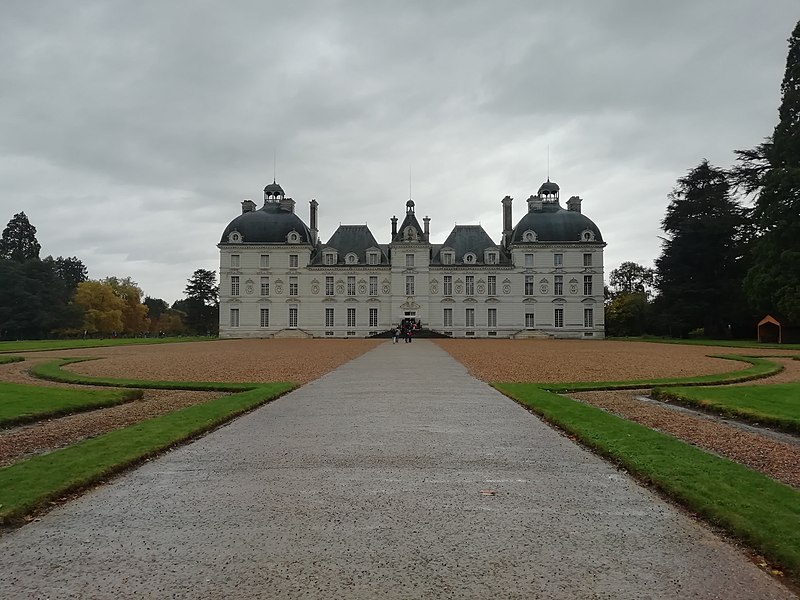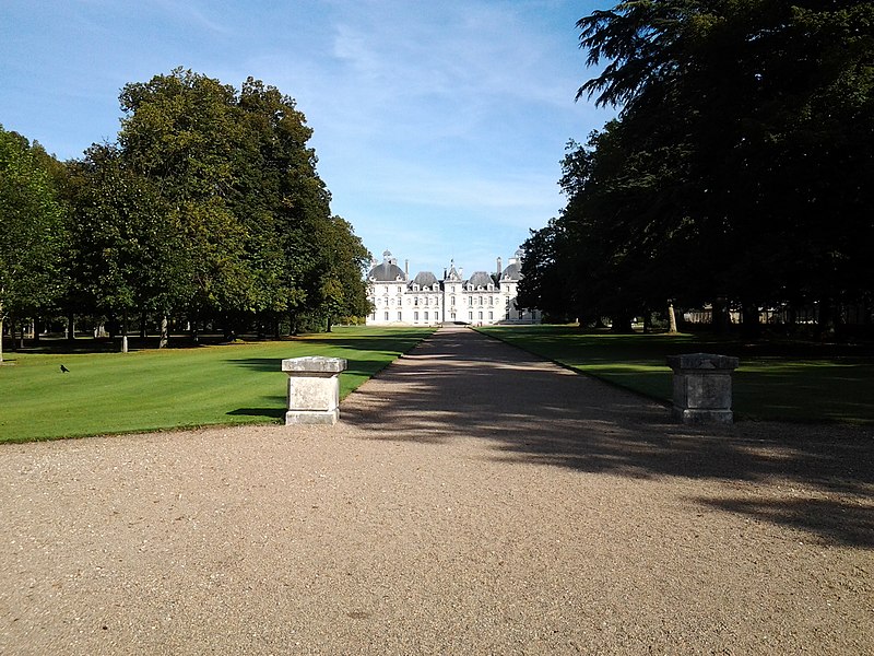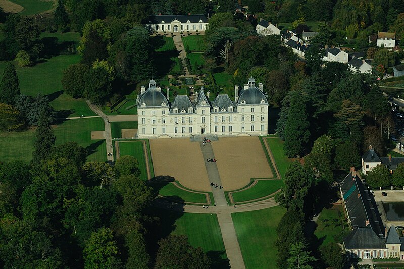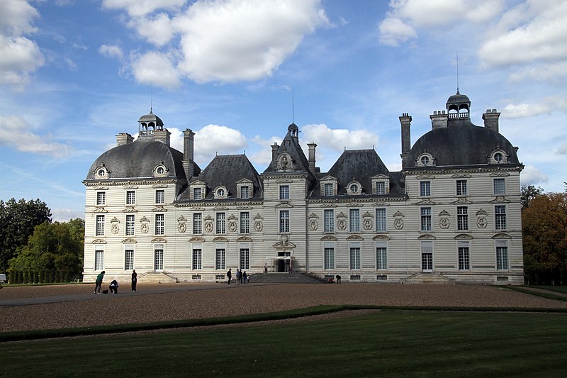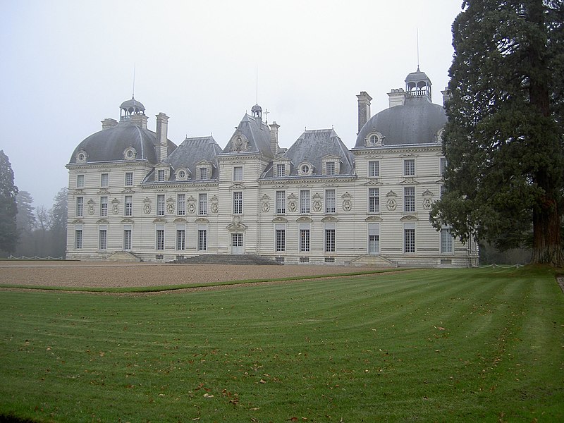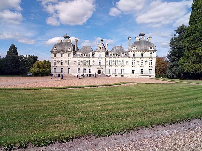 Le château de Cheverny, situé en Sologne sur la commune de Cheverny (Loir‑et‑Cher, Centre‑Val de Loire), est élevé sur l'emplacement d'un manoir du XVIe siècle dont ne subsistent que les communs. Édifié entre 1625 et 1629 par l'architecte Jacques Bougier dit Boyer de Blois, il conjugue des influences de la Renaissance et du style du début du XVIIe siècle. L'ensemble se compose d'un corps central rectangulaire flanqué de deux ailes terminées par de grands pavillons carrés, et présente une façade en pierre de Bourré décorée, côté sud, de bustes d'empereurs romains. La décoration intérieure conserve des décors peints par Jean Mosnier, des lambris, des plafonds à caissons et des boiseries caractéristiques de l'époque. Les travaux mobilisèrent, outre Bougier et Mosnier, des artistes tels que le menuisier Hevras Hammerber, le sculpteur Gilles Guérin et un auteur de sculpture signé « F.L. ». Les bâtiments furent achevés dans les années 1630, mais leurs premiers propriétaires, Henri Hurault et Marguerite Gaillard, n'en profitèrent guère. Le domaine a connu de nombreuses transmissions et ventes, puis fut racheté au XIXe siècle par la branche des Hurault, marquis de Vibraye, qui en est toujours propriétaire. Ouvert au public dès 1922, le château conserve une importante collection d'objets d'art, de tapisseries et de meubles et figure parmi les plus fréquentés des châteaux de la Loire. Classé et inscrit au titre des monuments historiques pour ses façades, ses toitures et des éléments du parc, il s'accompagne d'un domaine d'environ cent hectares où le jardin à la française a été reconstitué. L'allée principale, longue de près de six kilomètres, structure la perspective nord‑sud ; le parc comprend aussi un jardin anglais planté de tilleuls, de séquoias et de cèdres, un potager et des cours d'eau. Parmi les communs, on distingue des vestiges de la demeure Renaissance de Raoul Hurault, une fuye remaniée et un chenil qui abrite une meute destinée à la vénerie. Le château est connu pour ses intérieurs remarquables : la salle à manger présente 34 panneaux peints par Jean Mosnier illustrant Don Quichotte, un mobilier aux armes des Hurault et une cheminée monumentale néo‑Renaissance. L'escalier d'honneur, en pierre, s'élève sous une voûte en berceau et porte des sculptures de guirlandes, fruits et motifs symboliques qui conduisent aux appartements. Le grand salon, restauré au XIXe siècle, expose portraits anciens attribués à des ateliers renommés et un mobilier des XVIIe et XVIIIe siècles recouvert de tapisseries d'Aubusson. La salle d'armes, décorée par Jean Mosnier, abrite une importante collection d'armes et d'armures des XVe au XVIIe siècles, une tapisserie des Gobelins et une cheminée de style Renaissance. La chambre dite « du Roi » présente huit tapisseries d'après Simon Vouet, un plafond à caissons peint par Mosnier et un lit à baldaquin ancien, tandis que la bibliothèque lambrissée conserve plus de deux mille volumes. Les communs comprennent aussi une orangerie du XVIIIe siècle, qui accueillit une partie du mobilier national pendant la Seconde Guerre mondiale et sert aujourd'hui à des réceptions. Le domaine entretient une meute d'une centaine de chiens de chasse et une salle des trophées où sont réunis plus de 2 000 bois de cerfs, une cheminée monumentale et un vitrail contemporain de l'atelier Jacques Loire. Le château a par ailleurs inspiré Hergé pour le château de Moulinsart ; une exposition permanente, installée près du chenil, présente des reconstitutions et des maquettes en lien avec l'œuvre de Tintin, et depuis 2001 des éléments consacrés à Tintin sont également présentés dans les greniers à fourrage, tandis que le domaine accueille périodiquement des événements thématiques.