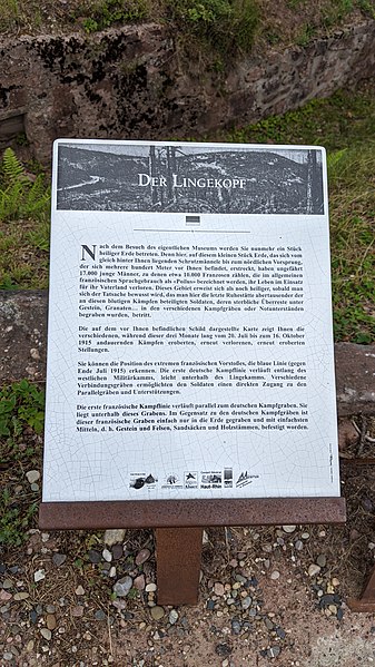 Le champ de bataille du Linge a été le théâtre d'une bataille de la Première Guerre mondiale opposant l'armée française à l'armée allemande du 20 juillet au 16 octobre 1915. Le massif du Linge se situe sur le ban des communes de Hohrod, Soultzeren, Labaroche et Orbey, dans le Haut‑Rhin. Ces combats s'inscrivent dans une série d'opérations menées par l'armée française dans les Vosges afin d'obtenir des positions dominantes en vue d'une attaque future dans la plaine d'Alsace. L'objectif recherché était une manœuvre dite de « débordement par les hauts », fondée sur l'effet de surprise mais vulnérable si l'opération devenait lente et prévisible face à des positions retranchées. Avant l'attaque sur le Linge, les 47e et 66e divisions d'infanterie avaient lancé une offensive dans la vallée le 15 juin 1915 et avancé de cinq kilomètres en une semaine. Malgré ces gains, le général Joffre ordonna, contre l'avis de ses subordonnés, de stopper l'offensive dans la vallée pour lancer l'attaque par les hauteurs. Le Linge est une montagne partiellement boisée, ponctuée de bosquets et de parois rocheuses escarpées. Les Allemands y occupaient le terrain depuis plusieurs mois et l'avaient renforcé par des blockhaus, des lignes de tranchées et des réseaux de fils de fer barbelés souvent dissimulés dans la végétation et les couloirs rocheux. Ces aménagements en faisaient une position défensive très solide. La bataille débuta le 20 juillet 1915 ; les assauts français, notamment menés par la 3e brigade de chasseurs et la 129e division d'infanterie, ne permirent pas de conserver durablement la crête malgré des gains locaux. Dès le mois d'août, de violentes contre‑attaques allemandes repoussèrent les Français sur les contre‑pentes. En septembre, des attaques allemandes conduites avec l'emploi de lance‑flammes et de gaz lacrymogènes conduisirent à un calme relatif du secteur. En octobre 1915, les dernières tentatives aboutirent à la stabilisation de la ligne sur le massif, qui resta en l'état jusqu'à la fin de la guerre ; les deux camps procédèrent ensuite à de larges travaux de fortification. Certains vestiges visibles aujourd'hui n'existaient pas encore au moment de la bataille, d'autres témoignent des aménagements réalisés ensuite. Les affrontements furent particulièrement meurtriers : ils causèrent plus de 18 000 pertes au total, dont 8 867 pour les forces françaises. Le site est classé au titre des monuments historiques depuis 1921 ; le périmètre protégé a été modifié en 1932 pour permettre la remise en état du lieu. À proximité d'Orbey et de Labaroche, le Musée‑Mémorial du Linge conserve les objets français et allemands retrouvés sur le site — armes, munitions, effets personnels — ainsi que des maquettes, des photographies et des cartes du champ de bataille. Parmi les soldats tombés au Linge figure le poète Jules Dupin (1890‑1915), sous‑lieutenant au 30e bataillon de chasseurs à pied, tué lors de l'assaut du Lingekopf le 26 juillet 1915 ; son nom est inscrit au Panthéon parmi les 560 écrivains morts au combat pendant la Première Guerre mondiale.