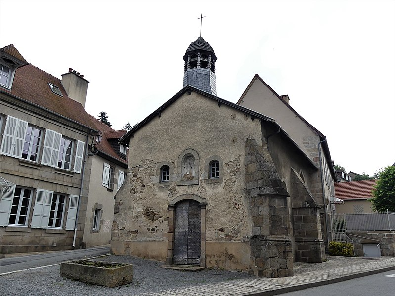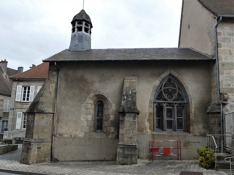 Construite pour la confrérie des Pénitents Bleus, la chapelle se compose de deux travées voûtées en croisée d'ogives et est soutenue à l'extérieur par de grands contreforts. Sa décoration comprend des culs-de-lampe, des clés de voûte armoriées et une fenêtre à nervures. Accolée au deuxième hôtel-Dieu, elle dépendait de cet établissement hospitalier. Elle a été édifiée au XVe siècle à l'initiative des consuls chargés de l'hôpital. En 1674, Léonard Lamoureux, l'un des recteurs de la confrérie fondée à Felletin en 1617, acquit la chapelle au profit de la communauté ; à sa mort, en 1696, il la légua par testament à MM. Bombrut et Choupineaux. Pendant la Révolution, elle fut vendue comme bien national et passa ensuite entre les mains de Me Tissier du Breuil. Le 12 germinal an II, un état des ornements conservés dans la chapelle fut dressé. Des remaniements, notamment une modification de l'élévation ouest, ont probablement eu lieu au XIXe siècle. La niche de cette élévation abritait une statue de la Vierge à l'Enfant, visible sur une carte postale (notice IM23001514).