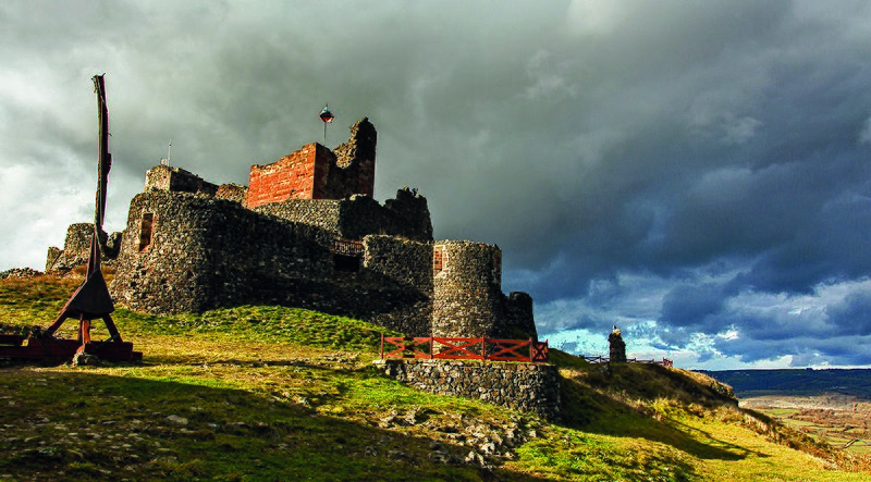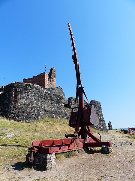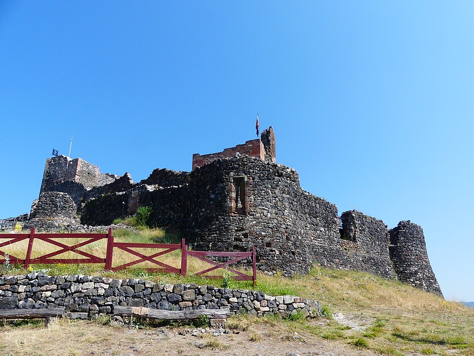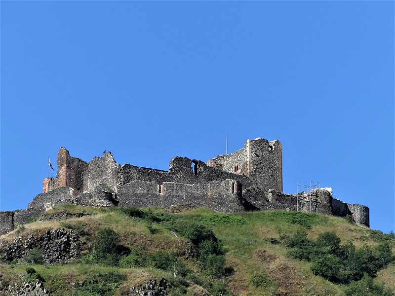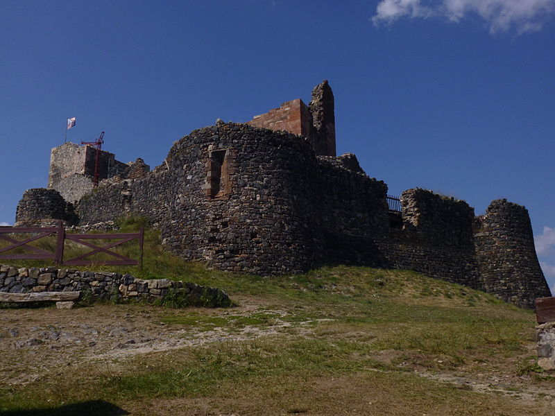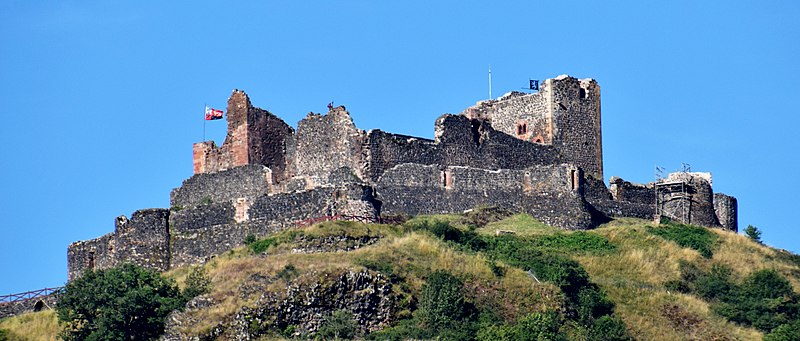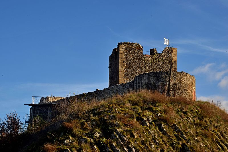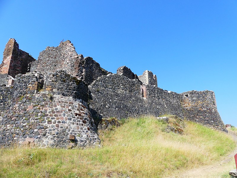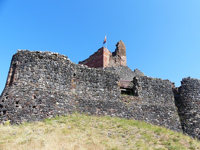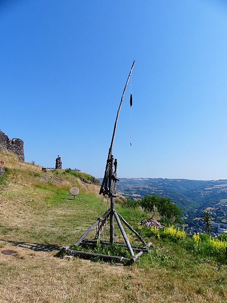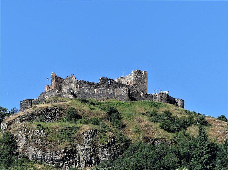 Perché sur un dyke basaltique à 535 mètres d'altitude, le château de Calmont-d'Olt domine la ville d'Espalion et la vallée du Lot d'environ 200 mètres. Un premier château féodal est attesté vers le IXe siècle ; il est ensuite transformé et développé entre le XIe et le XIVe siècle. Le noyau primitif, de plan trapézoïdal, comportait au XIe-XIIe siècle un donjon placé au point le plus élevé, une grande salle et un mur d'enceinte. Au XVe siècle, le site fait l'objet d'aménagements défensifs importants : une enceinte basse est bâtie et flanquée de huit tours « ouvertes à la gorge », tandis que l'enceinte haute conserve le donjon, le corps de logis et deux tours. Une porte orientale donnait accès à la chapelle castrale, située hors de l'enceinte ; de cette chapelle du XIIe siècle subsiste un pan de mur. Le château occupe une position stratégique et symbolique sur la vallée du Lot ; il commandait la route de Rodez vers l'Aubrac et le franchissement du Lot sur l'axe commercial Toulouse–Rodez–Lyon. La seigneurie de Calmont d'Olt, d'origine probablement carolingienne et mentionnée pour la première fois en 883, a donné son nom à la viguerie locale. La famille de Calmont d'Olt, qui domine le site pendant le haut Moyen Âge, s'éteint avec Raimond de Calmont d'Olt, évêque de Rodez ; la baronnie passe ensuite aux Pelet, aux Castelnau, aux Caylus, aux Clermont-Lodève puis aux d'Albert de Luynes. Le château illustre la mutation architecturale des sites castraux du Rouergue entre le XIe et le XVe siècle, liée aux progrès techniques de la guerre médiévale. Après son renforcement au XVe siècle, l'édifice connaît peu de transformations majeures puis, au XVIIe siècle, il est abandonné au profit de demeures plus confortables dans la vallée et sombre peu à peu en ruine. Les sources signalent ensuite plusieurs états des lieux et événements jusqu'aux XVIIIe et XIXe siècles, périodes où l'on relève notamment des occupations temporaires et des représentations du château en ruine. Le site est inscrit au titre des monuments historiques le 24 décembre 1943 ; le château est inscrit le 28 mai 1990 et, le 10 février 1992, le château, les vestiges de la chapelle et la deuxième enceinte sont classés au titre des monuments historiques. Racheté en 1987 par Thierry Plume, le château fait l'objet d'une restauration progressive, conduite avec le concours des Bâtiments de France, du Service régional de l'archéologie et de bénévoles. Des travaux de dégagement réalisés en 2006 ont mis au jour une clé de voûte et une triple arcature romane faisant jour, éléments qui permettent de situer une phase de construction au XIe ou au XIIe siècle. Aujourd'hui, les vestiges du donjon en basalte, des enceintes et de la chapelle témoignent de l'évolution du site du haut Moyen Âge au bas Moyen Âge et de son rôle militaire dans la région.