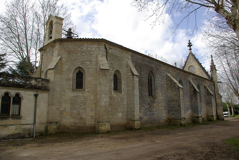 À l’extérieur, deux contreforts aux angles de la façade occidentale, surmontés de pinacles et de chimères, ainsi que le pignon orné d’une rosace et la sacristie accolée à l’abside, sont probablement du XIXe siècle ; l’édifice semble par ailleurs avoir été surélevé. Le portail est surmonté d’une Vierge à l’Enfant et le campanile abrite une cloche du XVe siècle, issue de la chapelle de l’hôpital de Libourne et classée comme objet aux Monuments historiques. Le dallage du chœur conserve des fleurs de lys attribuées au XVe siècle.
