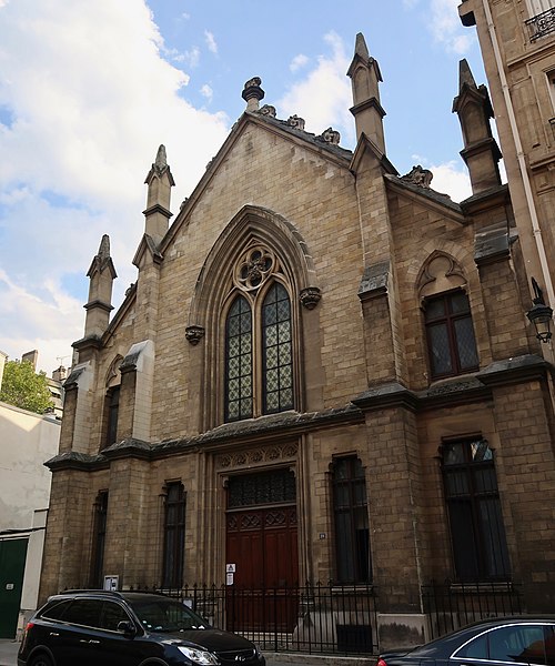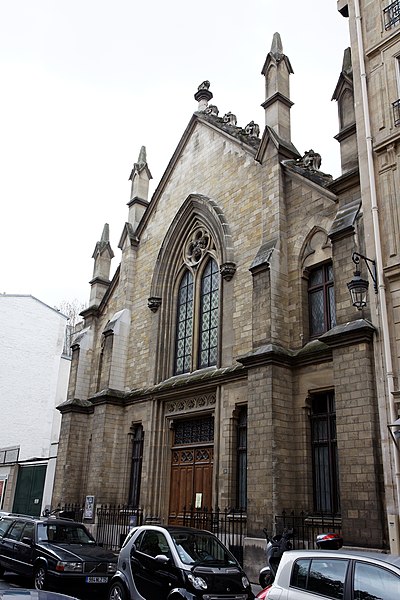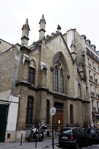 La chapelle de Jésus‑Enfant, dite chapelle des Catéchismes, est située au 29 rue Las‑Cases dans le 7e arrondissement de Paris et dépend de la paroisse Sainte‑Clotilde. Elle est inscrite au titre des monuments historiques depuis le 2 avril 1979. Construite entre 1878 et 1881 par l’architecte Hippolyte Destailleur à l’initiative de l’abbé Hamelin, premier recteur de la basilique Sainte‑Clotilde, elle était destinée à accueillir les enfants du catéchisme. Le 16 mars 1956, Jacques Chirac y épouse Bernadette Chodron de Courcel. En 1988, un orgue Cavaillé‑Coll daté de 1830 et provenant du couvent des Carmes‑Billettes est installé dans la tribune. De style néogothique anglais, l’édifice se distingue par une voûte en bois polychrome en berceau brisé, lambrissée de caissons et inspirée de Westminster Hall. Dans l’abside, au‑dessus de l’autel en bronze doré réalisé par l’orfèvre Jean‑Alexandre Chertier, une grande composition en céramique de Gaston Virebent, inspirée d’un tableau de Fra Angelico, représente le Couronnement de la Vierge.