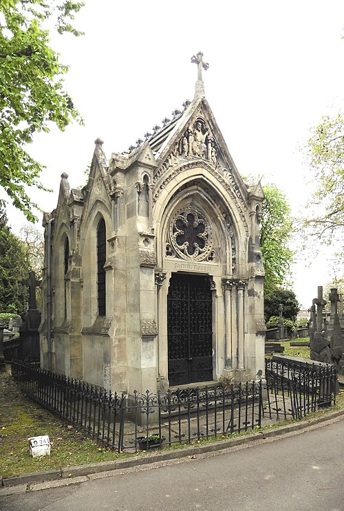 La chapelle en totalité, ainsi que sa grille de clôture, section 024, face à 023, tombe n° 2 (cad. AH 74) : inscription par arrêté du 19 avril 2006