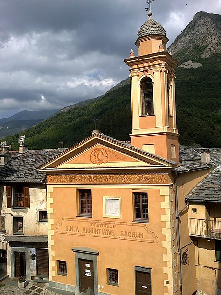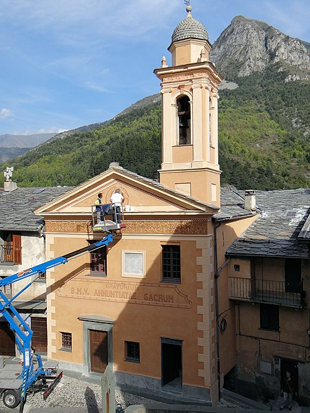 La chapelle de l'Annonciation, ancienne chapelle des Pénitents blancs, est une chapelle catholique située à Tende (Alpes‑Maritimes), rue Cotta, à côté de la collégiale Notre‑Dame‑de‑l'Assomption. La confrérie des Pénitents blancs a été fondée vers le milieu du XVe siècle et, dès sa création, a géré un « Mont Frumentaire » qui permettait de distribuer au printemps des semences aux paysans dans le besoin, avec remboursement sans intérêts. La confrérie est administrée par un prieur assisté d'une prieuresse ; ses statuts ont été remaniés en juillet 1948. La chapelle, consacrée en 1621 selon une inscription sur la porte de la sacristie, remplace un ancien oratoire devenu la sacristie actuelle. Elle est dédiée à l'Annonciation et à l'Ascension du Seigneur et a été embellie au XVIIIe siècle. L'intérieur présente un maître-autel et un retable polychrome de style baroque, ornés de colonnes torses et de cariatides ; au centre se trouve un tableau de l'Annonciation et, de part et d'autre, des tableaux représentant le Massacre des Innocents et l'Ascension. L'autel en bois polychrome occupe toute la paroi du chevet et porte la date de 1672 ; une autre date, 1704, y figure également. Un clocher baroque à bulbe, couvert de tuiles vernissées, surmonte l'édifice. Dans l'ancien oratoire voisin, des peintures du XVe siècle ont été partiellement dégagées. La chapelle conserve un orgue classé en 1971 au titre des objets par les monuments historiques : le buffet provient de l'ancien instrument de 1672 et la partie instrumentale date de 1807, réalisée par les frères Serassi. L'édifice est classé au titre des monuments historiques depuis le 24 mars 1950.
