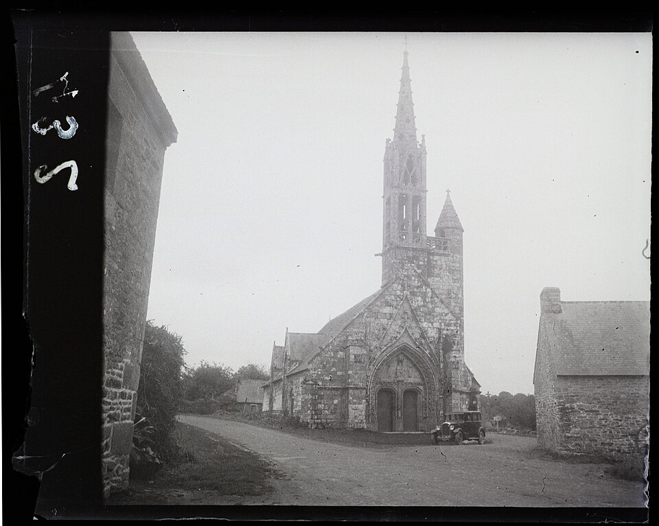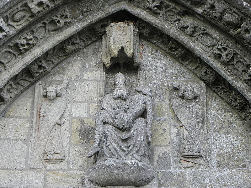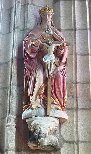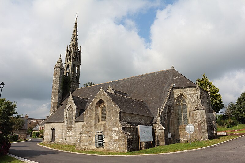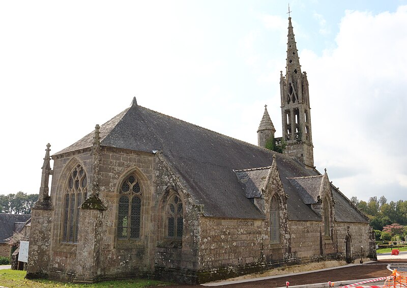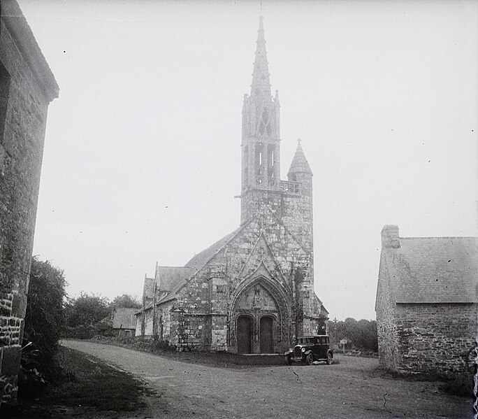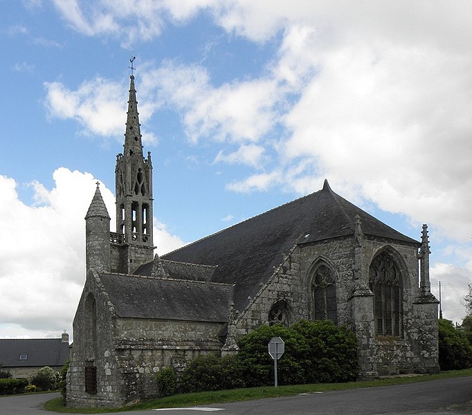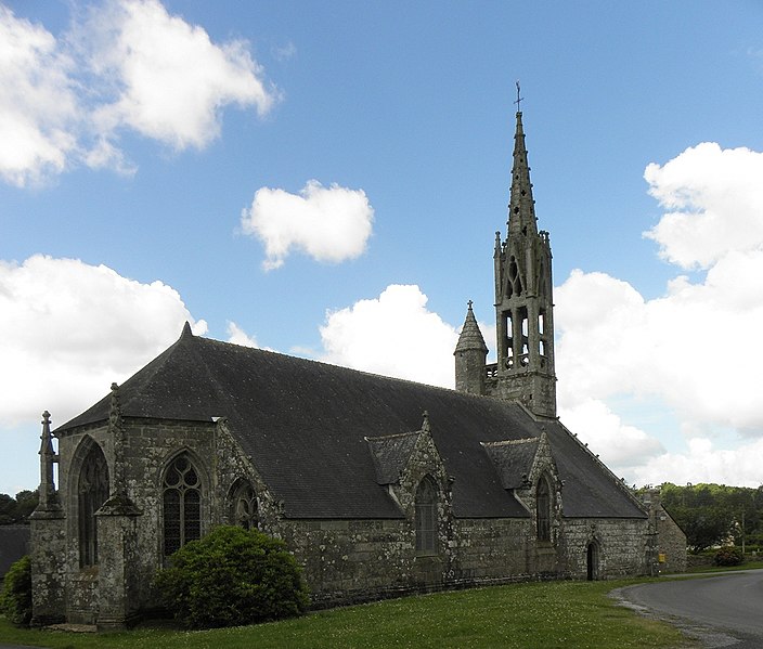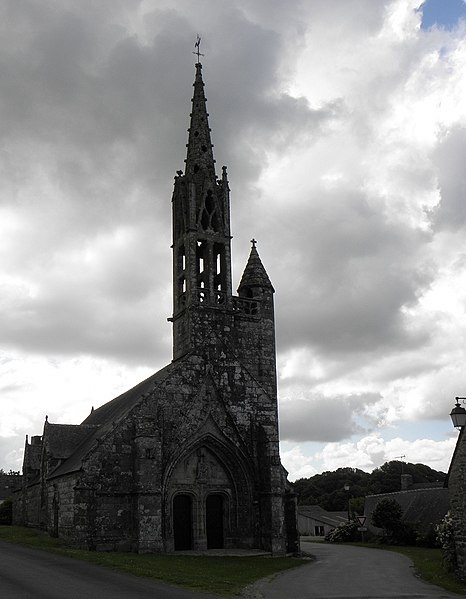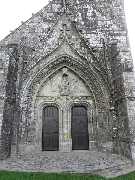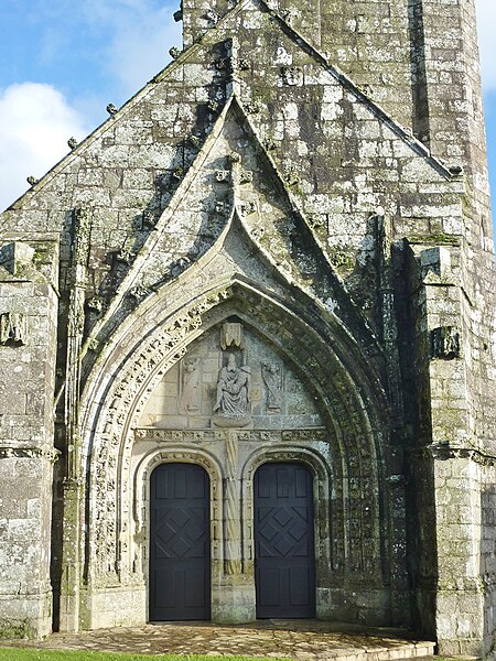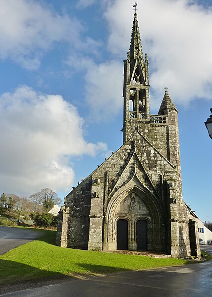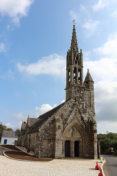 La chapelle de la Trinité est située sur la commune de Melgven, dans le Finistère (Bretagne). L'entrée s'ouvre par une grande porte percée dans le pignon qui supporte le clocher ; le tympan est sculpté d'un groupe de la Trinité accompagné d'anges tenant des banderoles. L'escalier du clocher, isolé, donne accès par une passerelle à la chambre des cloches. La chapelle est classée au titre des monuments historiques par arrêté du 21 décembre 1914. Des photographies présentent l'ensemble de la façade, le portail occidental avec la statue de la Trinité au tympan, ainsi que le clocher, la sacristie et le chevet.
