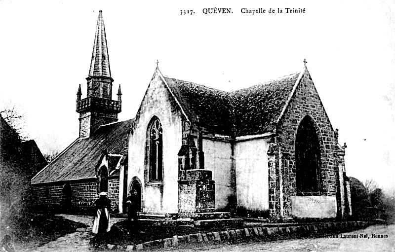 La chapelle de la Trinité, située au lieu-dit La Trinité à Quéven (Morbihan), a été édifiée au début du XVIe siècle dans le style flamboyant. Petite chapelle voûtée en bois, elle présente un plan en croix avec chevet plat, une nef de trois travées flanquée de deux bas-côtés percés d'arcades ogivales trapues reposant sur des piliers sans chapiteaux, et un transept à croisillons légèrement débordants. Le chœur et les transepts furent restaurés en 1898 et la chapelle connut des remaniements en 1771, notamment la réfection du portail occidental, de la tour et du clocher en pierre, daté de 1771. Sous le clocher se trouve une tribune dotée d'une balustrade de style Renaissance bretonne. La nef, le transept et le chœur ont été inscrits au titre des monuments historiques entre 1933 et 2014. L'édifice primitif fut entièrement détruit à la suite des bombardements alliés de la poche de Lorient entre le 7 et le 18 août 1944. Le mobilier avait cependant été déplacé en septembre 1942 par Pierre Thomas-Lacroix et René Guillaume; les statues furent évacuées par train vers le Maine-et-Loire, retrouvées cinquante ans plus tard, conservées à Vannes puis restaurées, et certaines ont été replacées en 2000 dans l'église paroissiale ou dans diverses chapelles de Quéven, notamment la paroisse Saint-Pierre-et-Saint-Paul. La chapelle a été reconstruite entre 1959 et 1961 par l'architecte vannois Caubert de Cléry-Kervigant, avec remplois de quelques éléments sculptés issus de l'ancien édifice. Sur le site subsistent plusieurs vestiges de l'ancienne chapelle : un bénitier du XVIe siècle, une croix monumentale datée de 1657 dont le croisillon a été refait à la fin du XIXe siècle, un personnage et une inscription de 1771 scellés dans les colonnes de la façade, ainsi qu'une fontaine de dévotion et un lavoir du début du XIXe siècle situés au nord de la chapelle. Plusieurs œuvres d'art d'origine ont été préservées, parmi lesquelles une Pietà et une Vierge à l'Enfant couronnée en bois polychrome du XVIIe siècle, des fragments d'une mise au tombeau et une statue d'un saint évêque, désormais conservés dans l'église paroissiale ou d'autres lieux de culte de la commune.